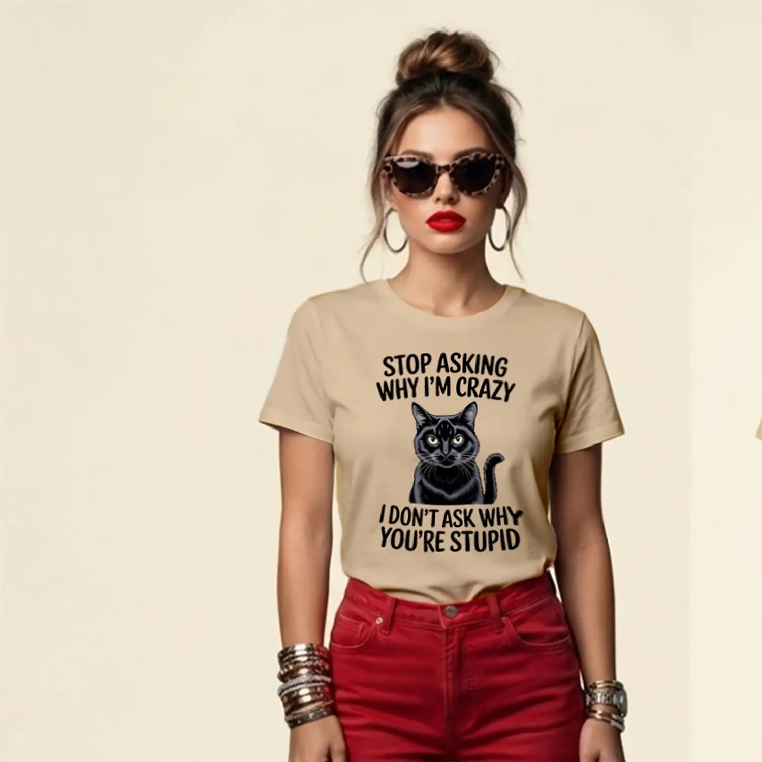 Tarzını sıradanlıktan çıkar, farkını ortaya koy. %100 pamuk kumaşı ve yüksek kaliteli baskı teknolojisiyle üretilen bu kadın tişört, hem günlük kullanımda konfor hem de uzun ömürlü şıklık sunar.