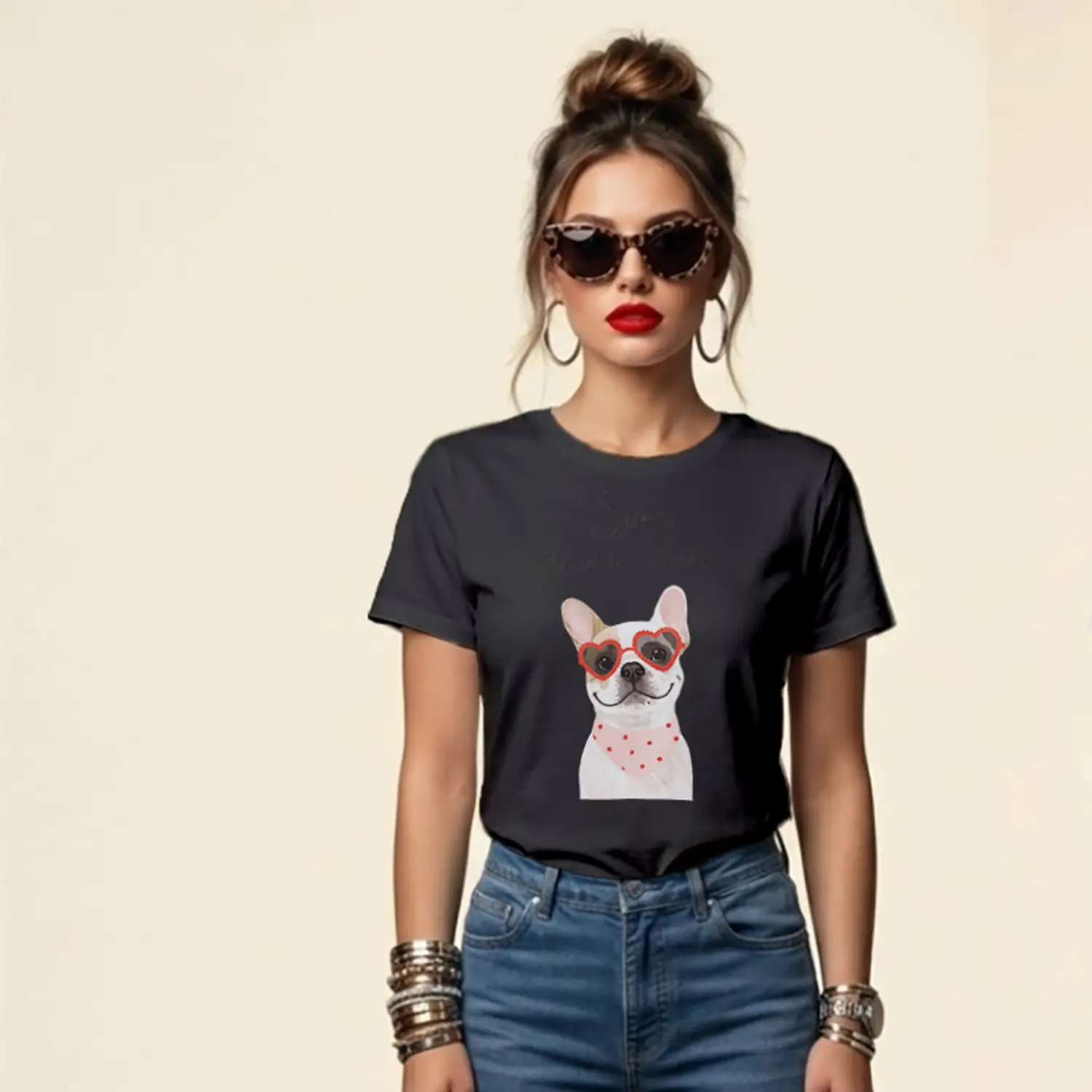 Sevimli Köpek Desenli Yazlık Baskılı Kadın Tişört