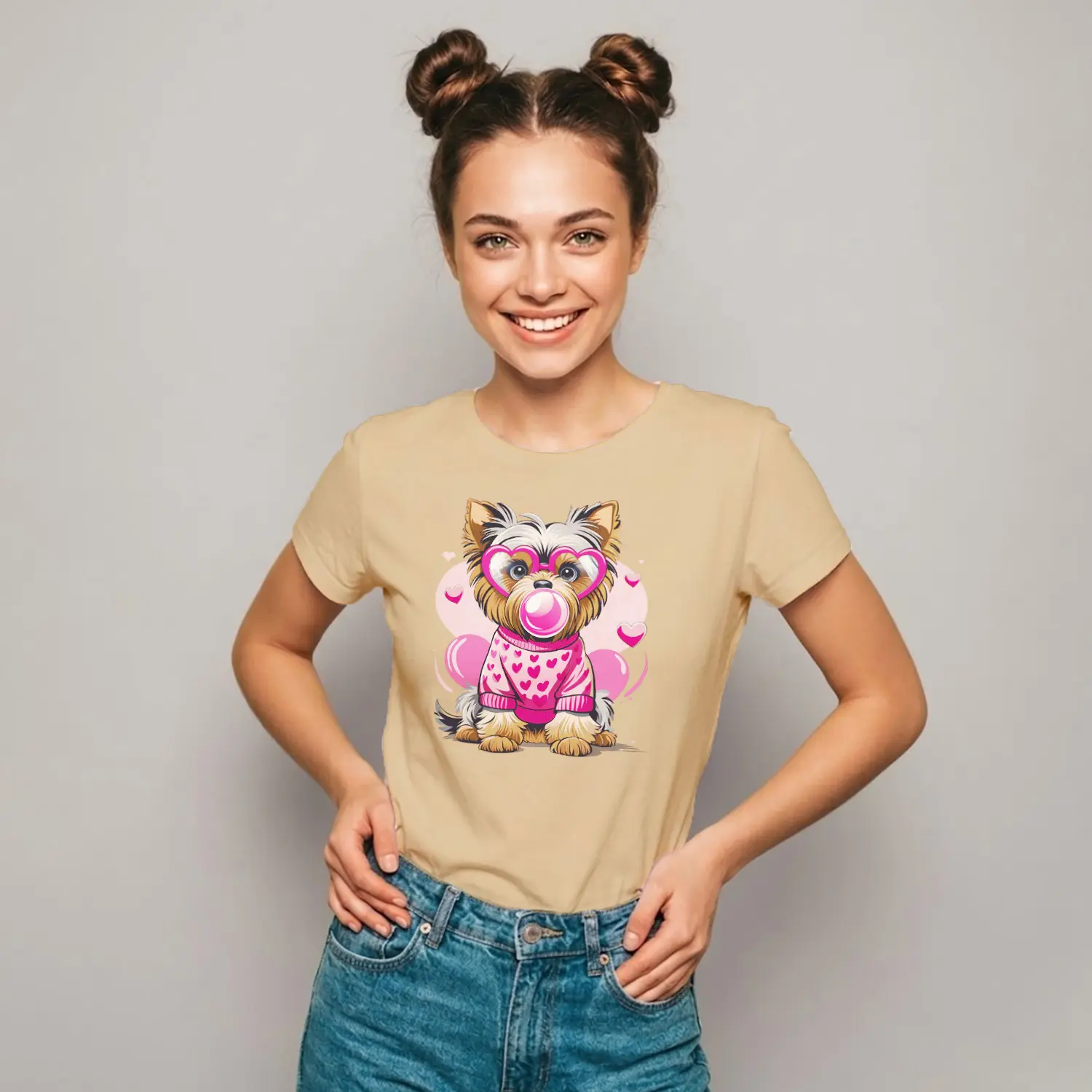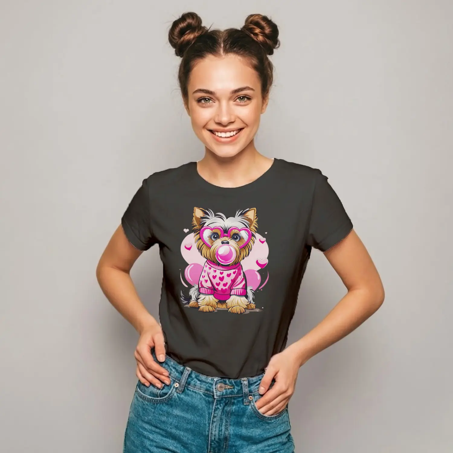 Sevimli Yorkshire Bubble Love Baskılı Kadın Tişörtü