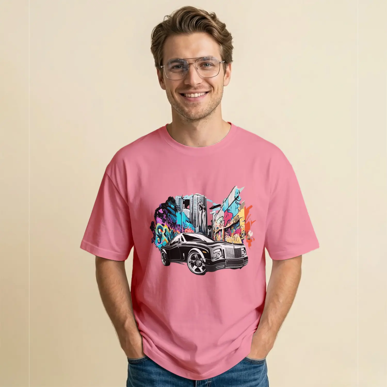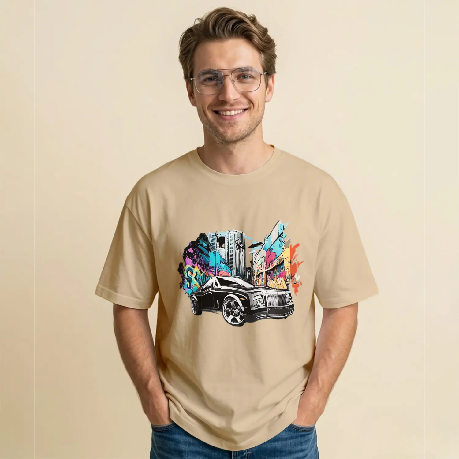 Sokak Sanatı ve Klasik Araba Baskılı Erkek Tişört