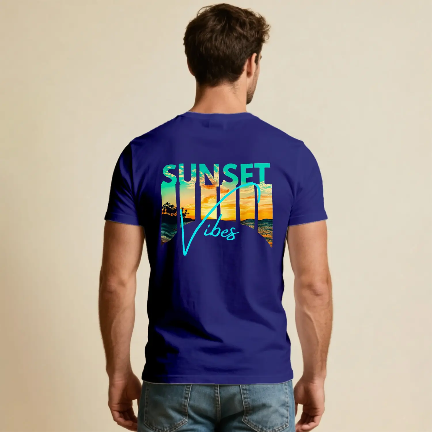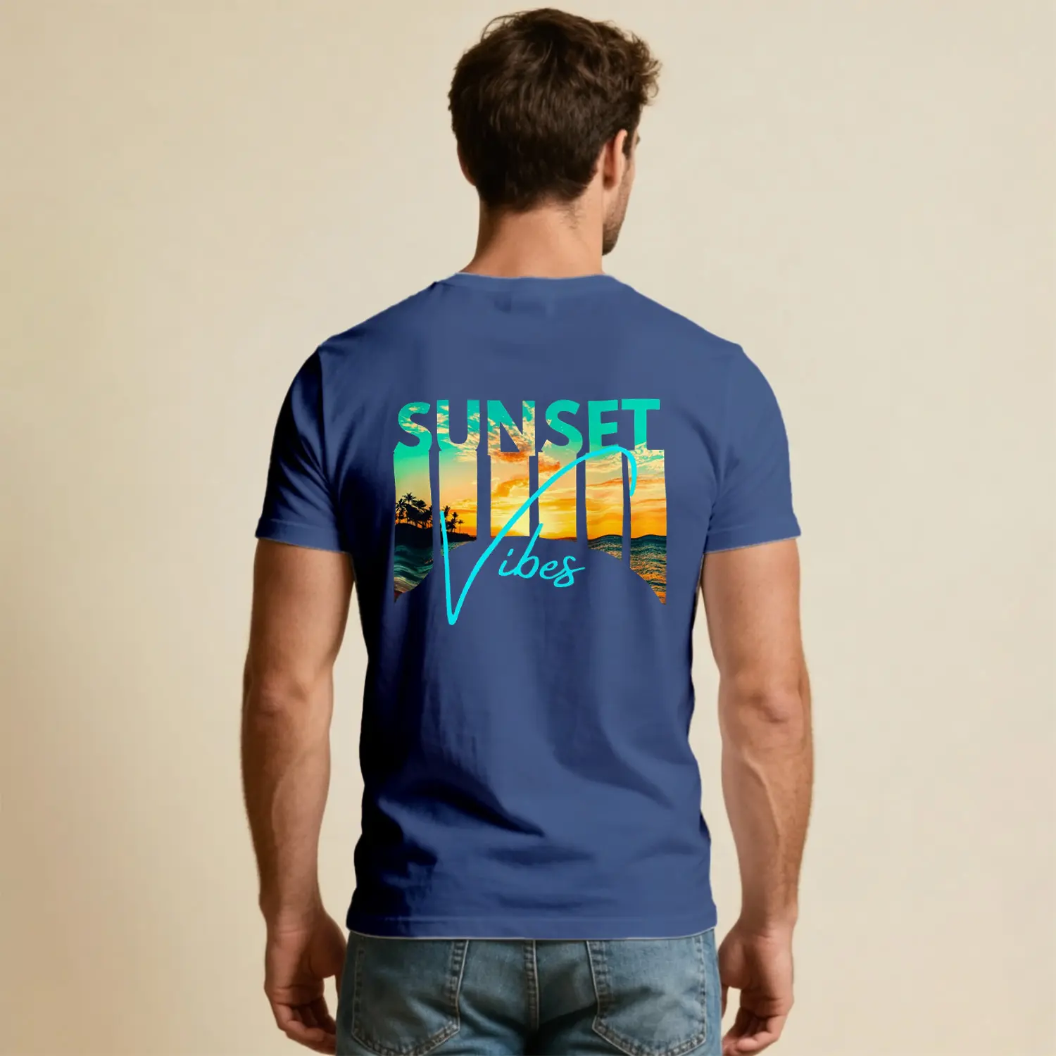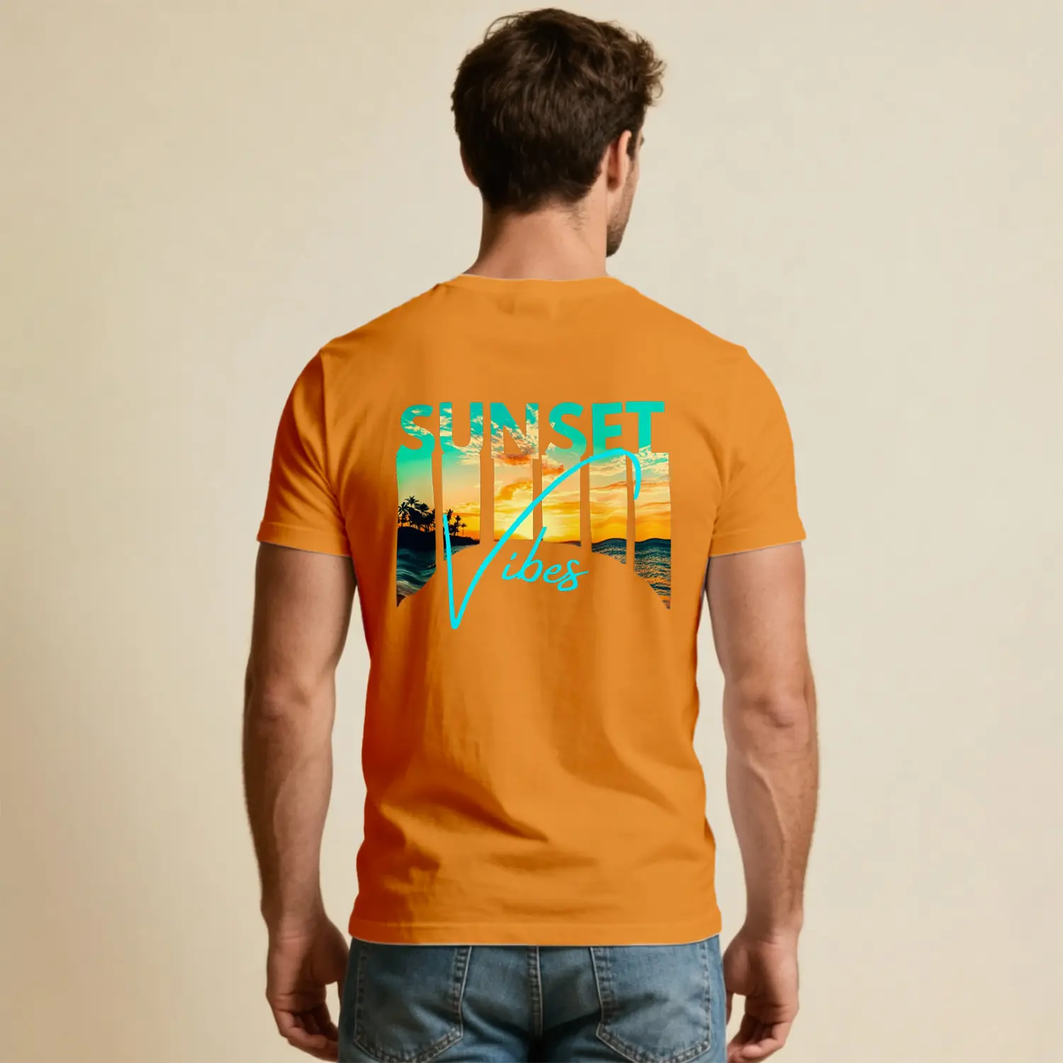 Sunset Vibes Tropikal Gun Batimi Baskılı Erkek Tişörtü