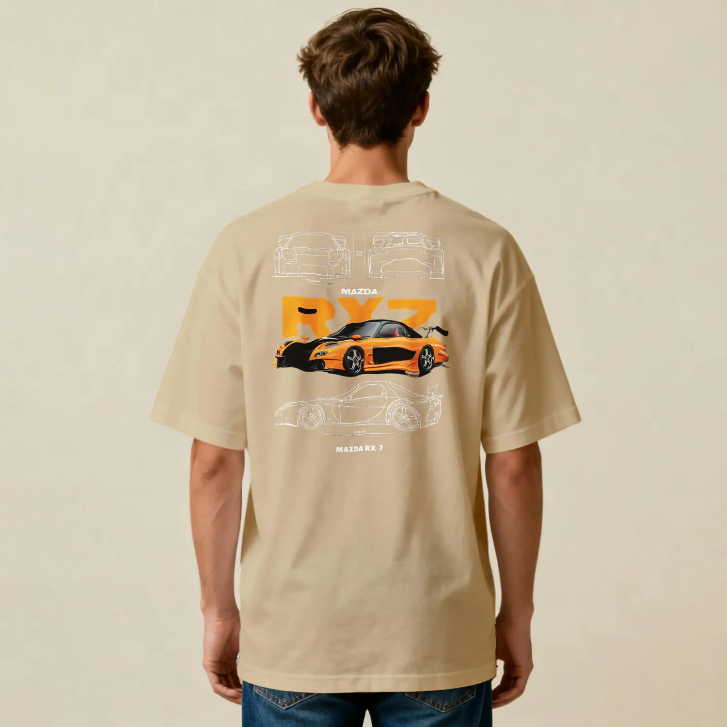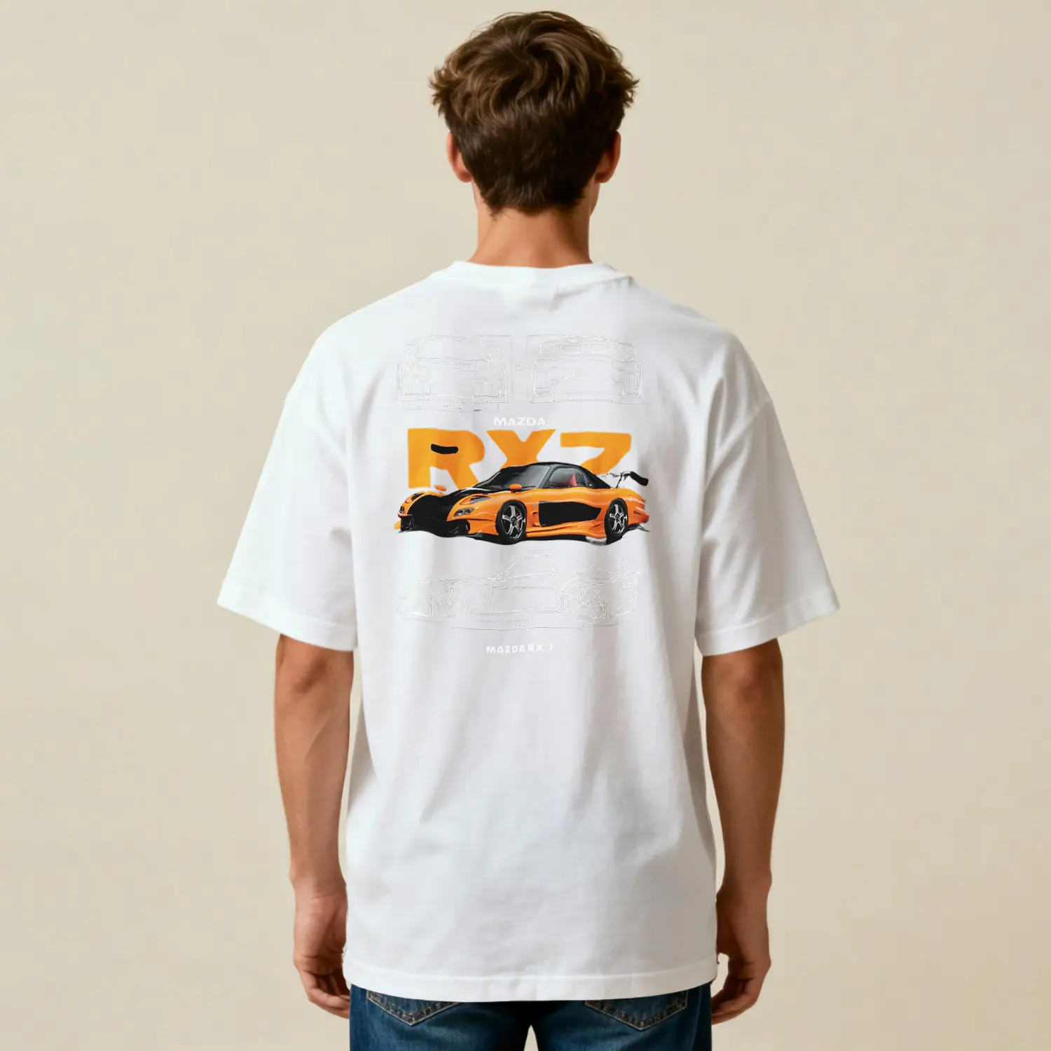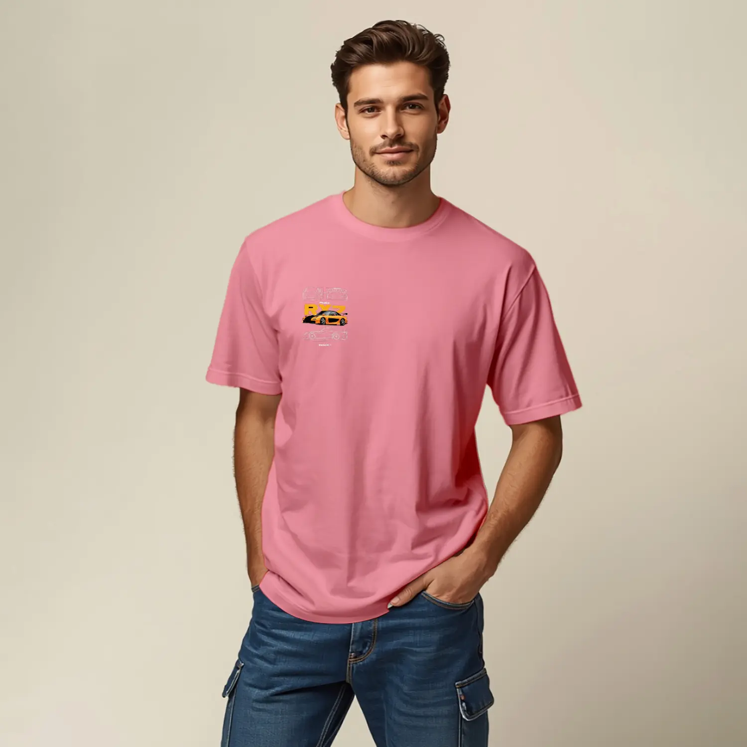 Turuncu Spor Araba Tasarımlı Baskılı Erkek Tişört