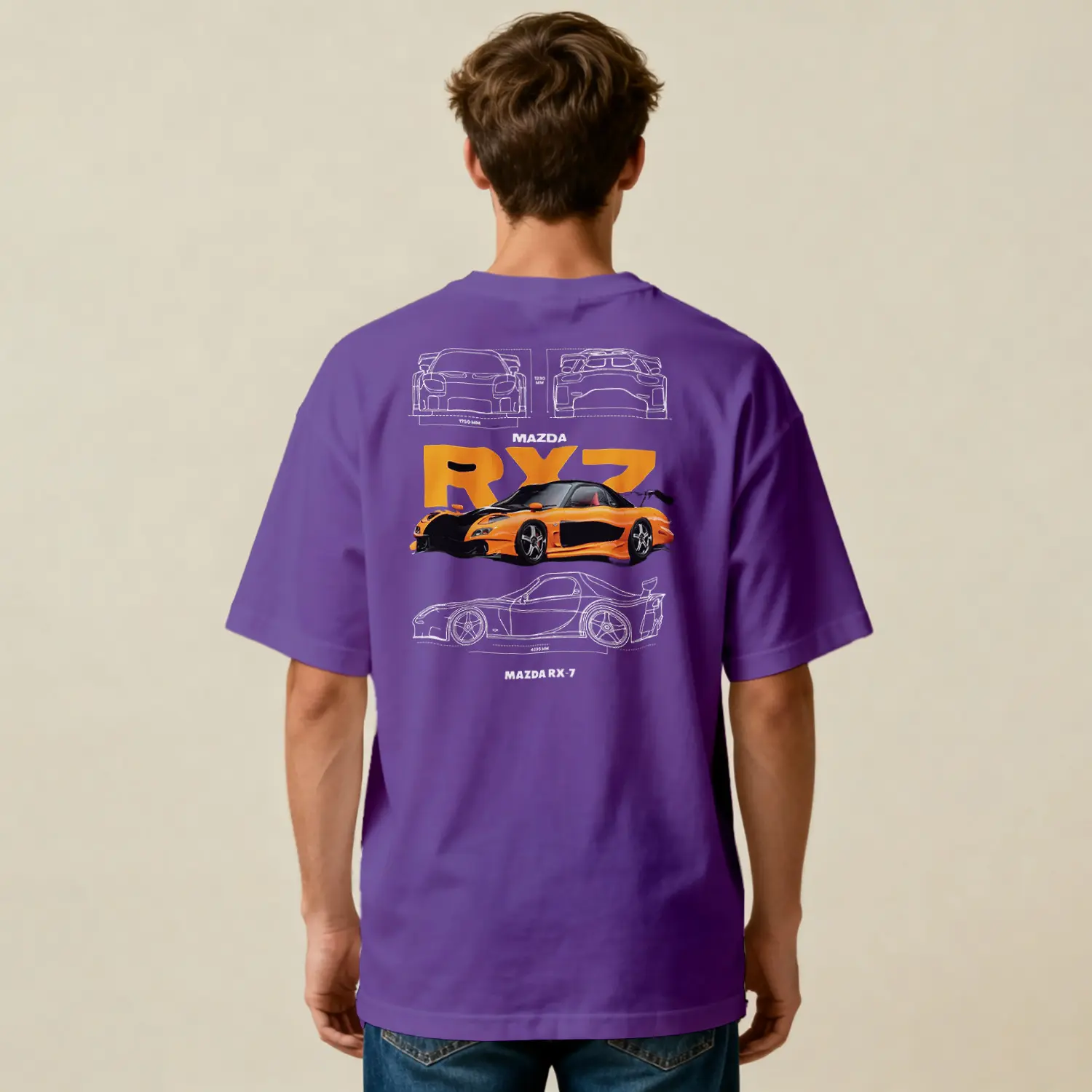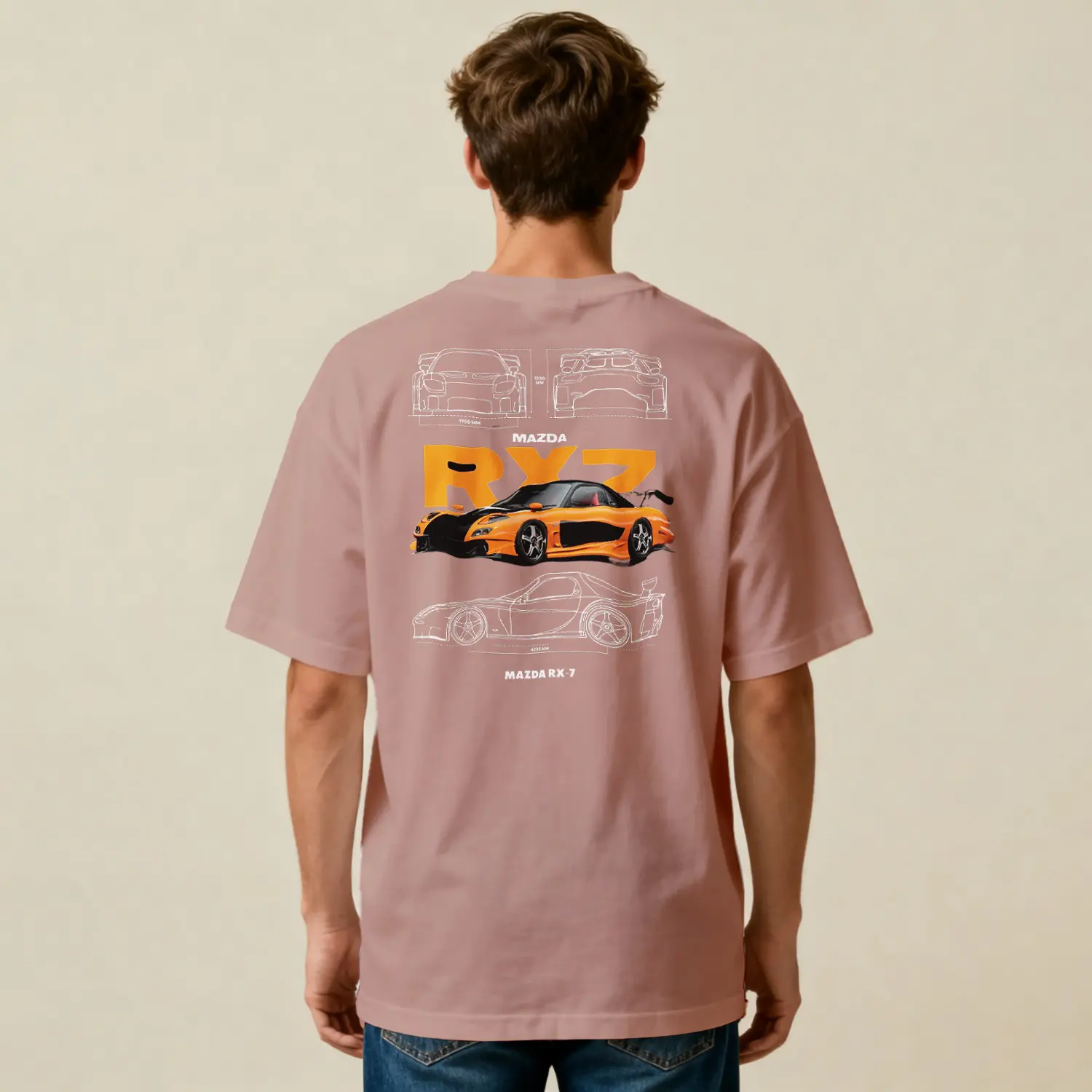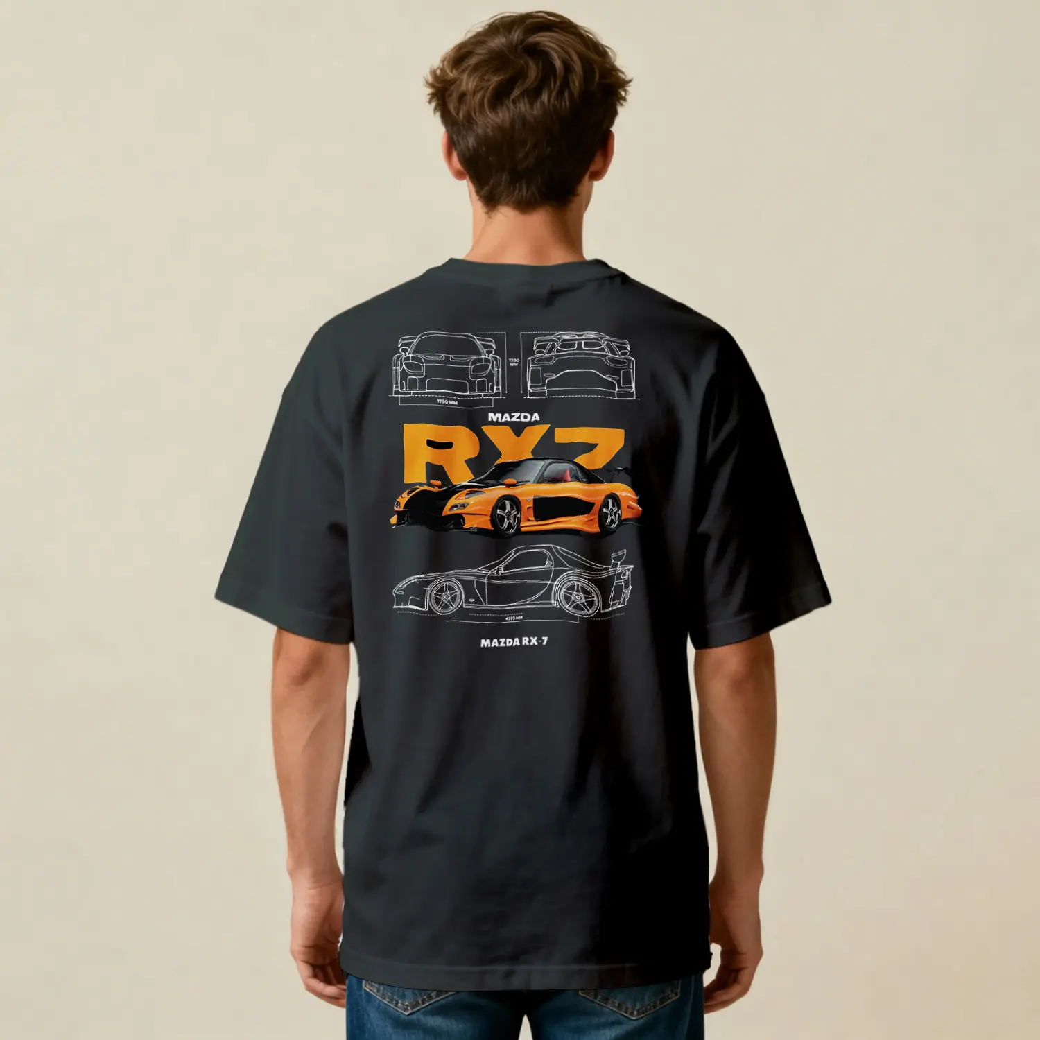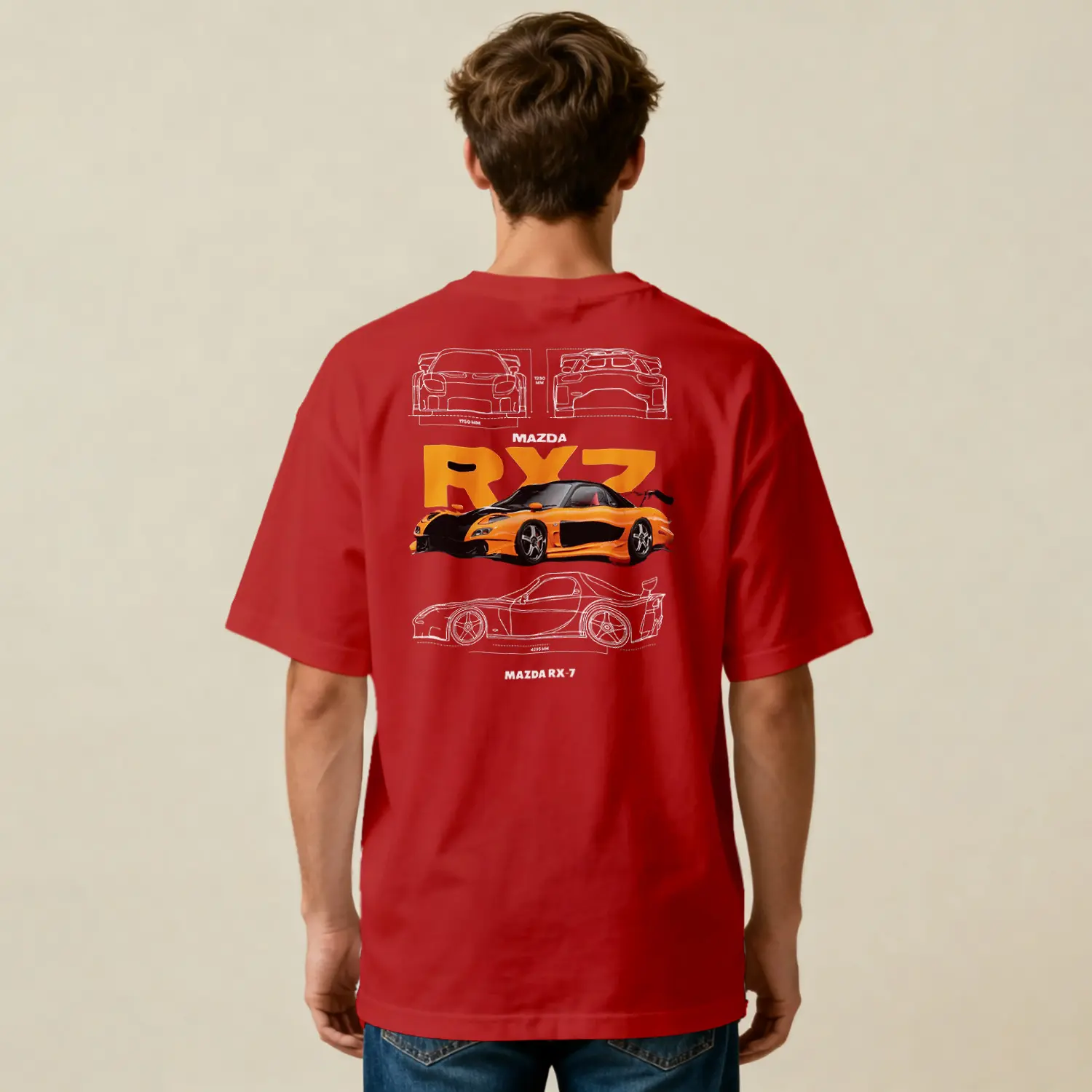 Turuncu Spor Araba Tasarımlı Baskılı Erkek Tişört