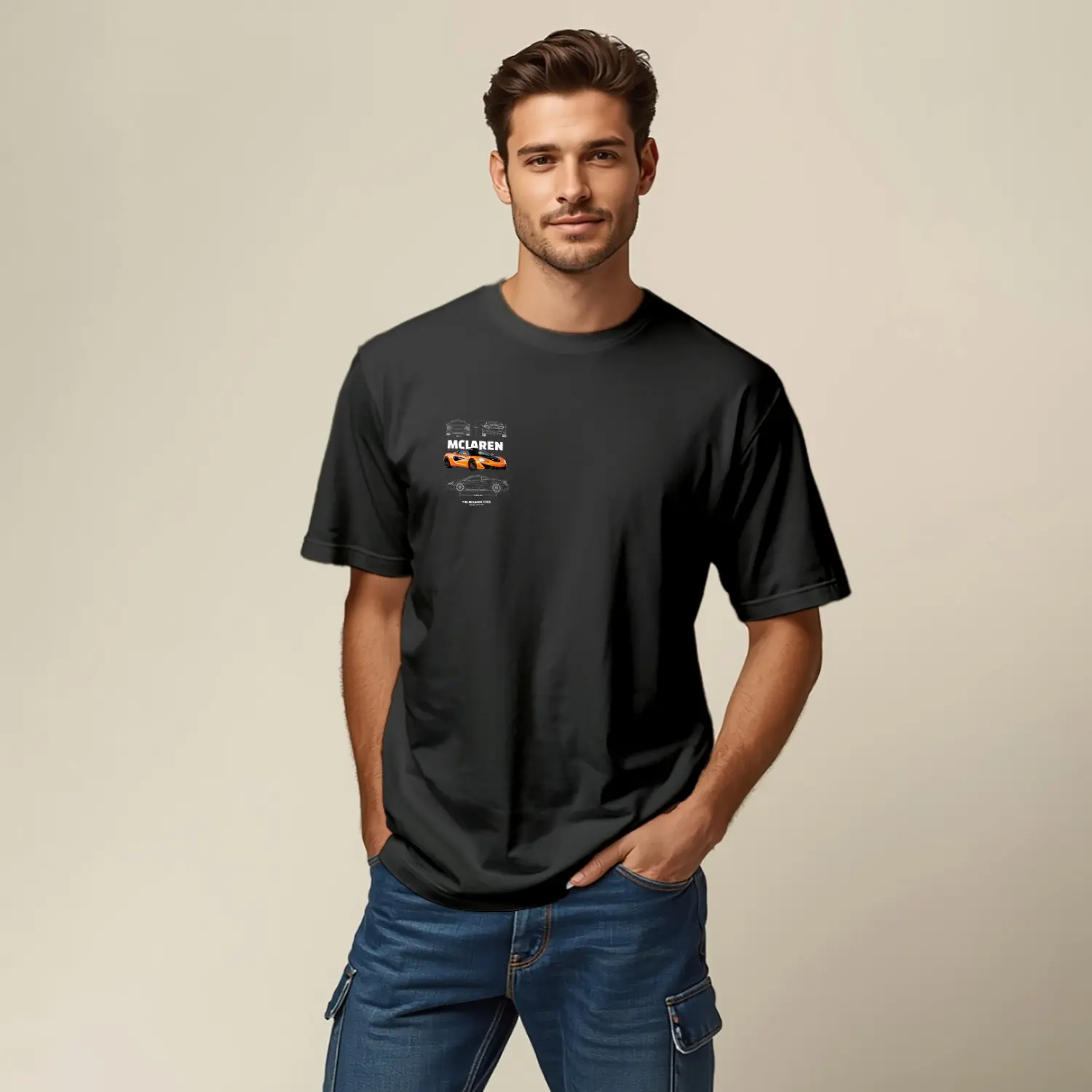 Turuncu Spor Araba Tasarımlı Baskılı Erkek Tişört
