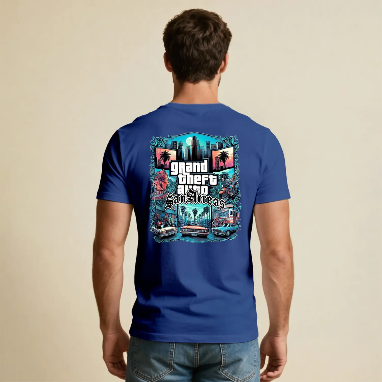 Açık Dünya Oyunu Şehir Temalı Nostalji Baskılı Erkek Tişörtü