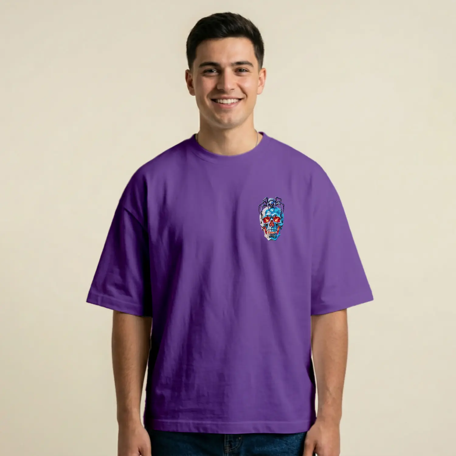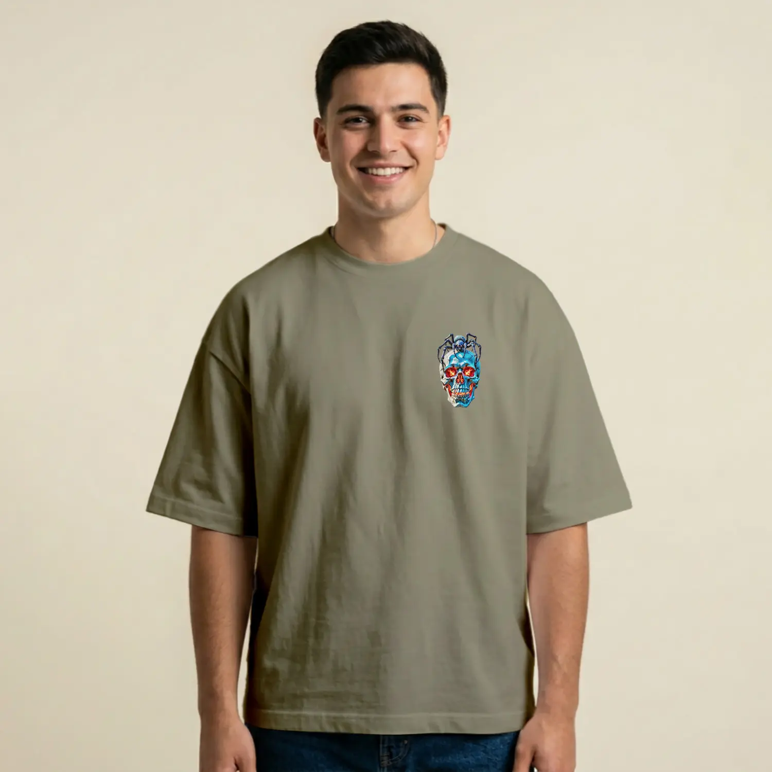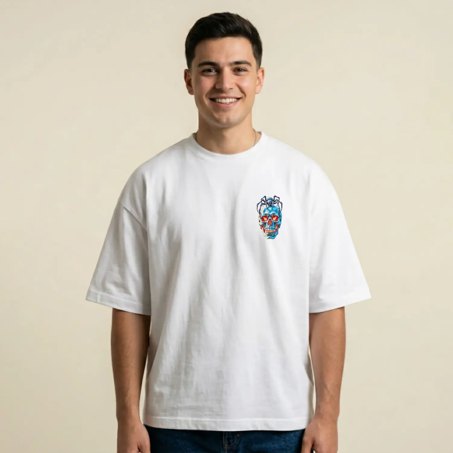 Alevli Kafatası ve Örümcek Baskılı Erkek Tişört