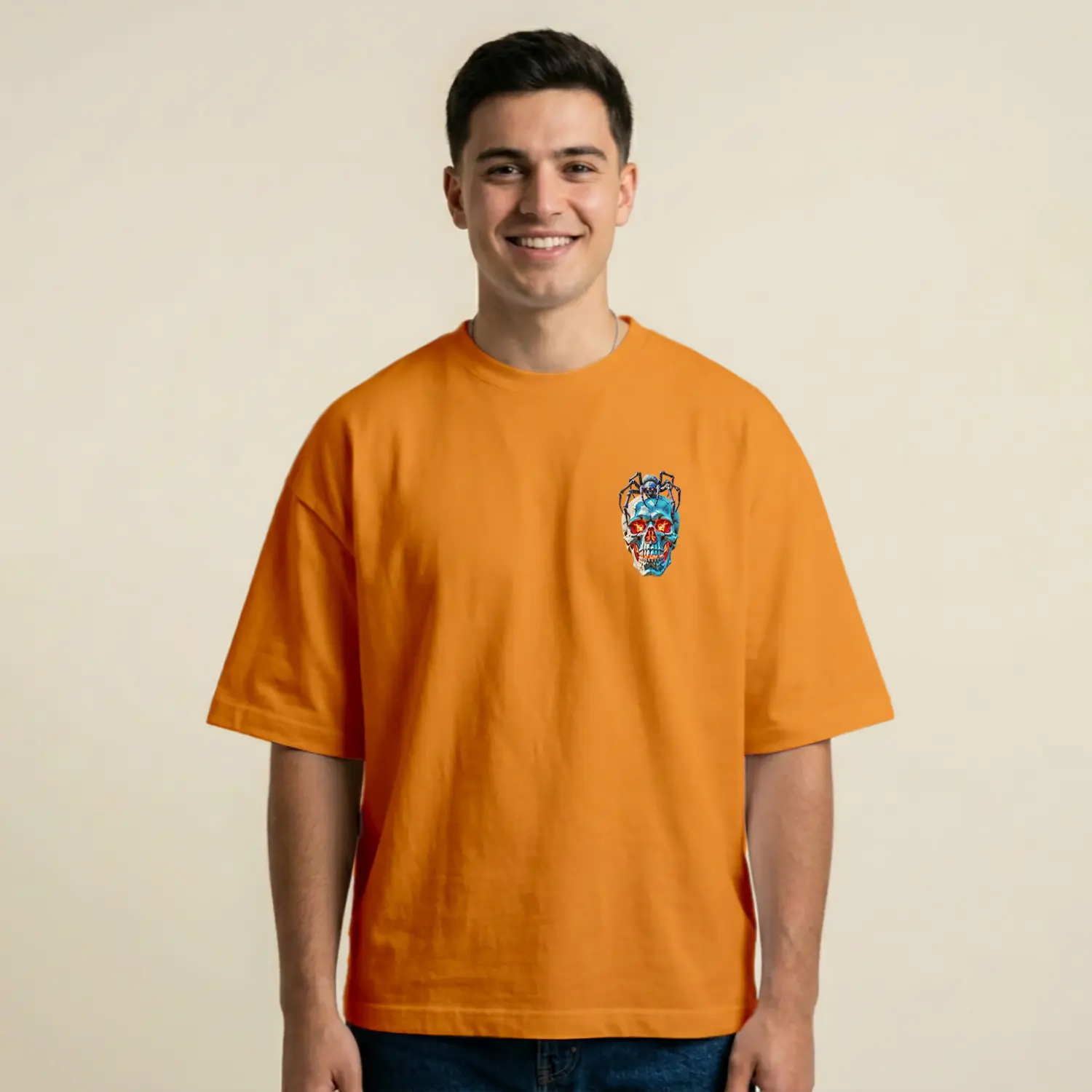Alevli Kaskli Kuru Kafa Tasarimli Baskılı Erkek Tişörtü