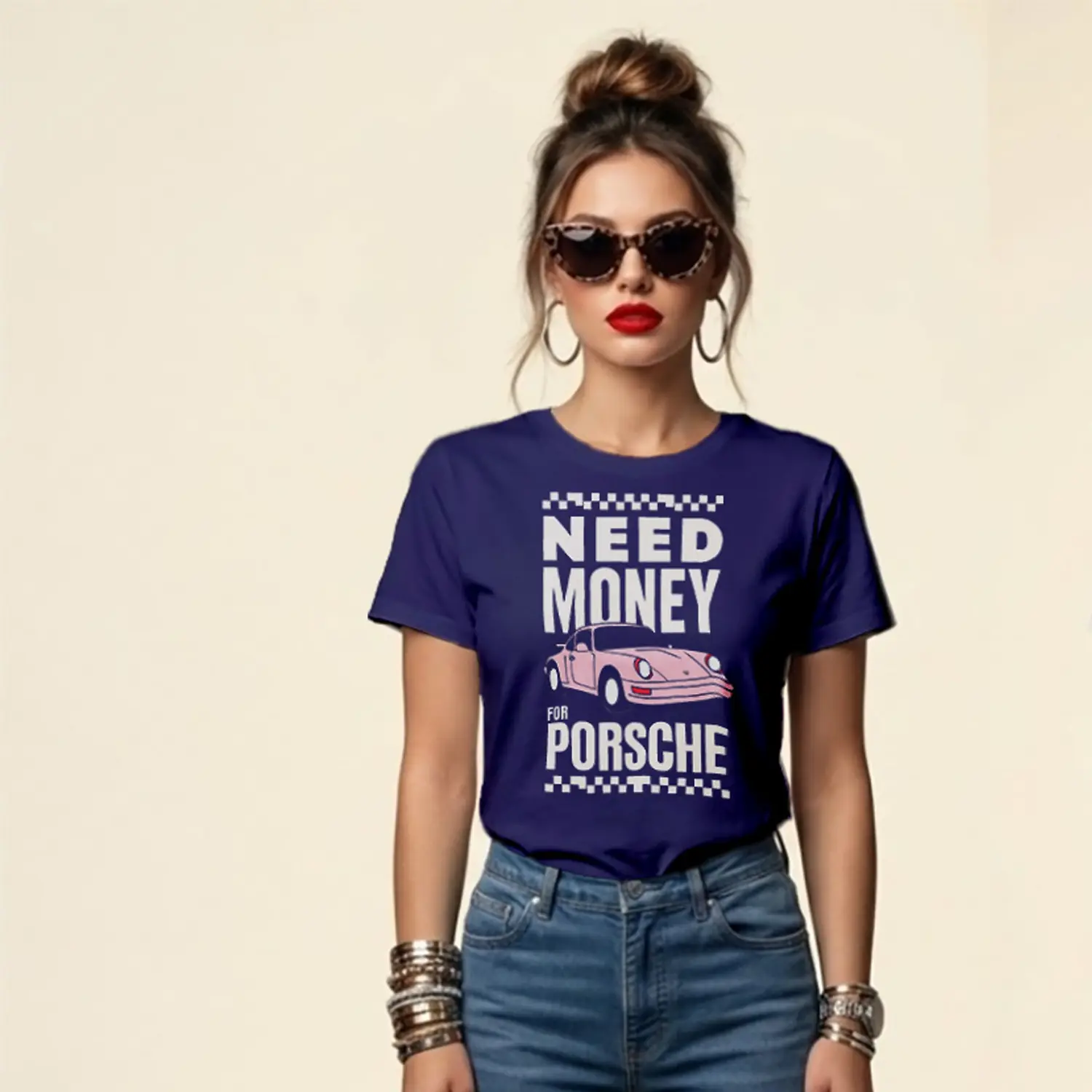 Araba Tutkusu Need Money Baskılı Kadın Tişört
