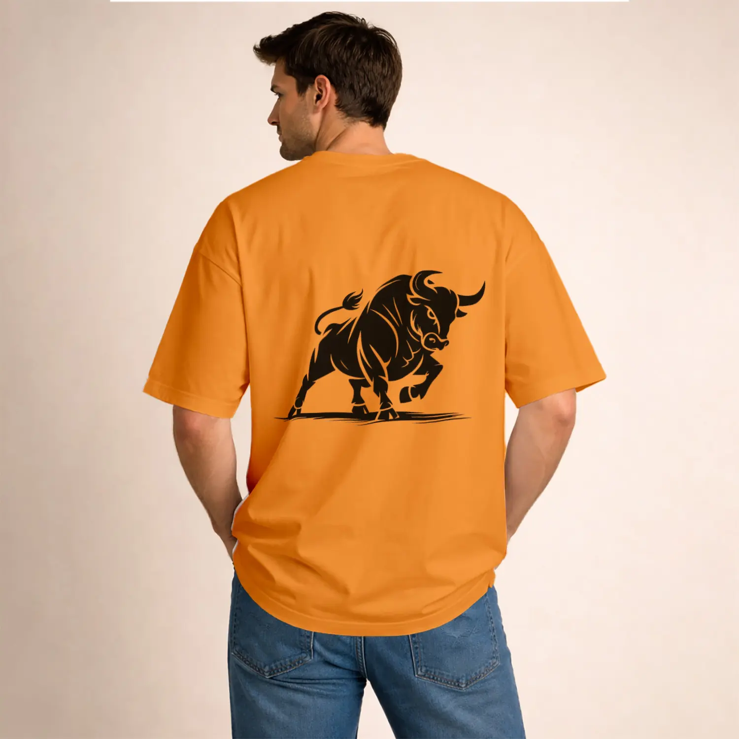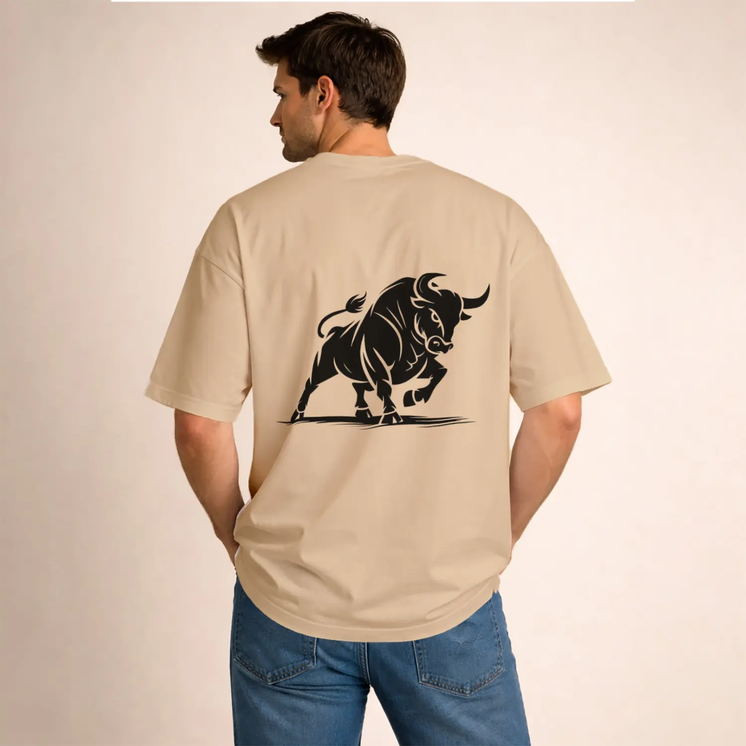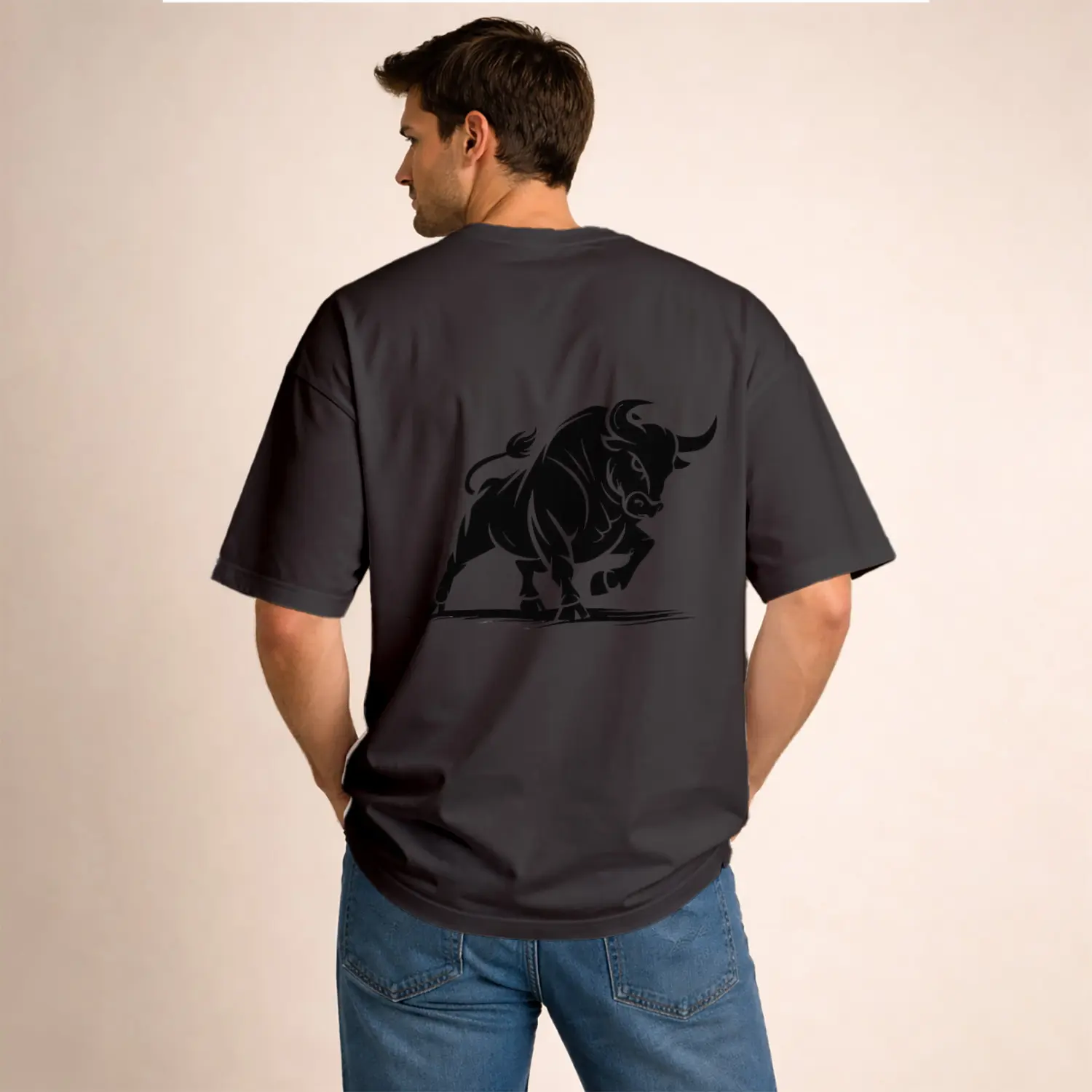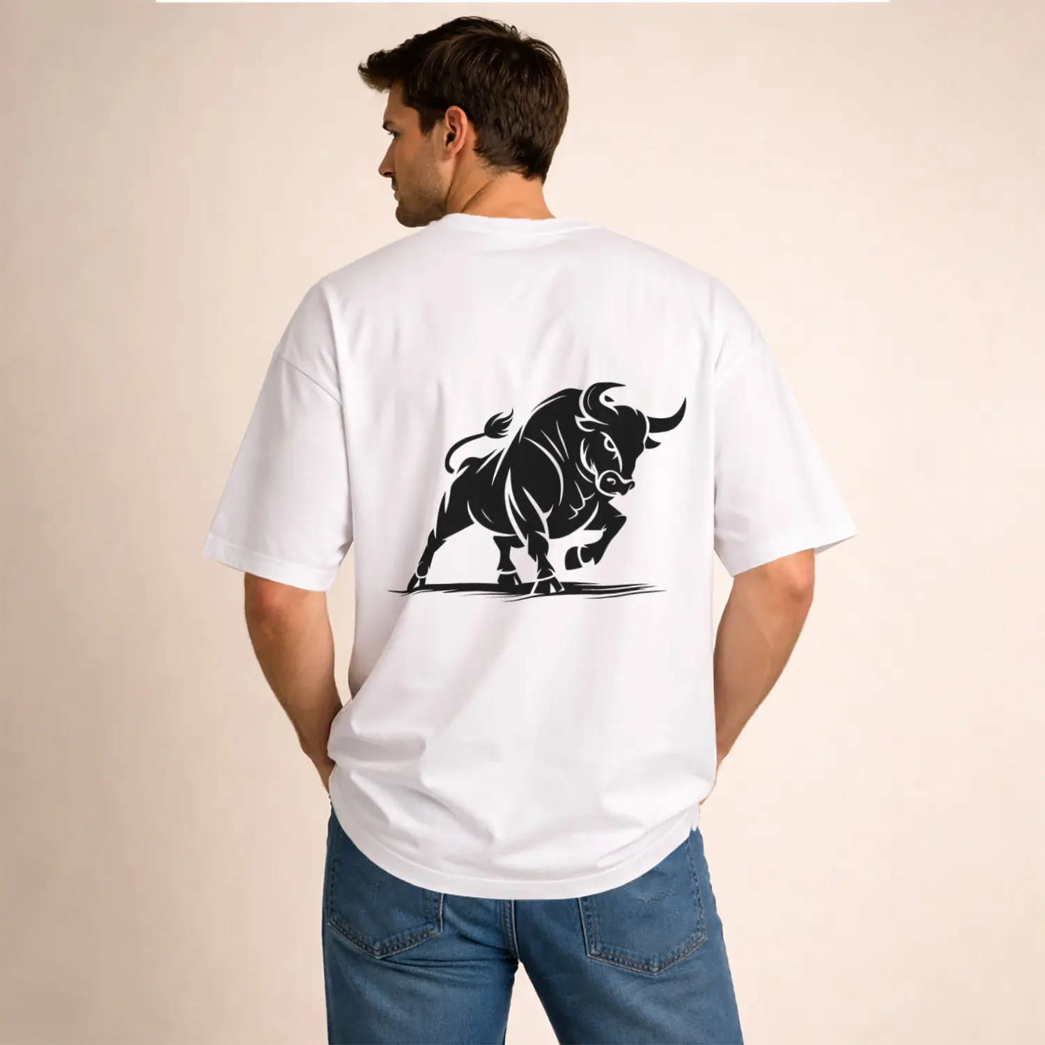 Asil Güçlü Boğa Figürlü Baskılı Erkek Tişört