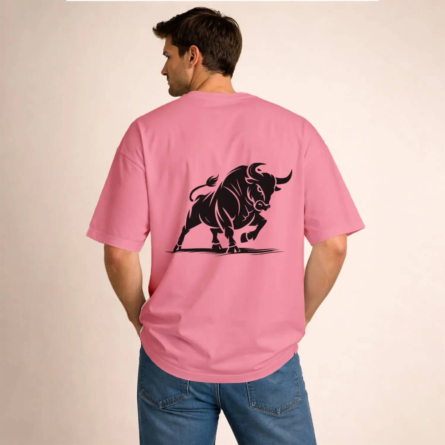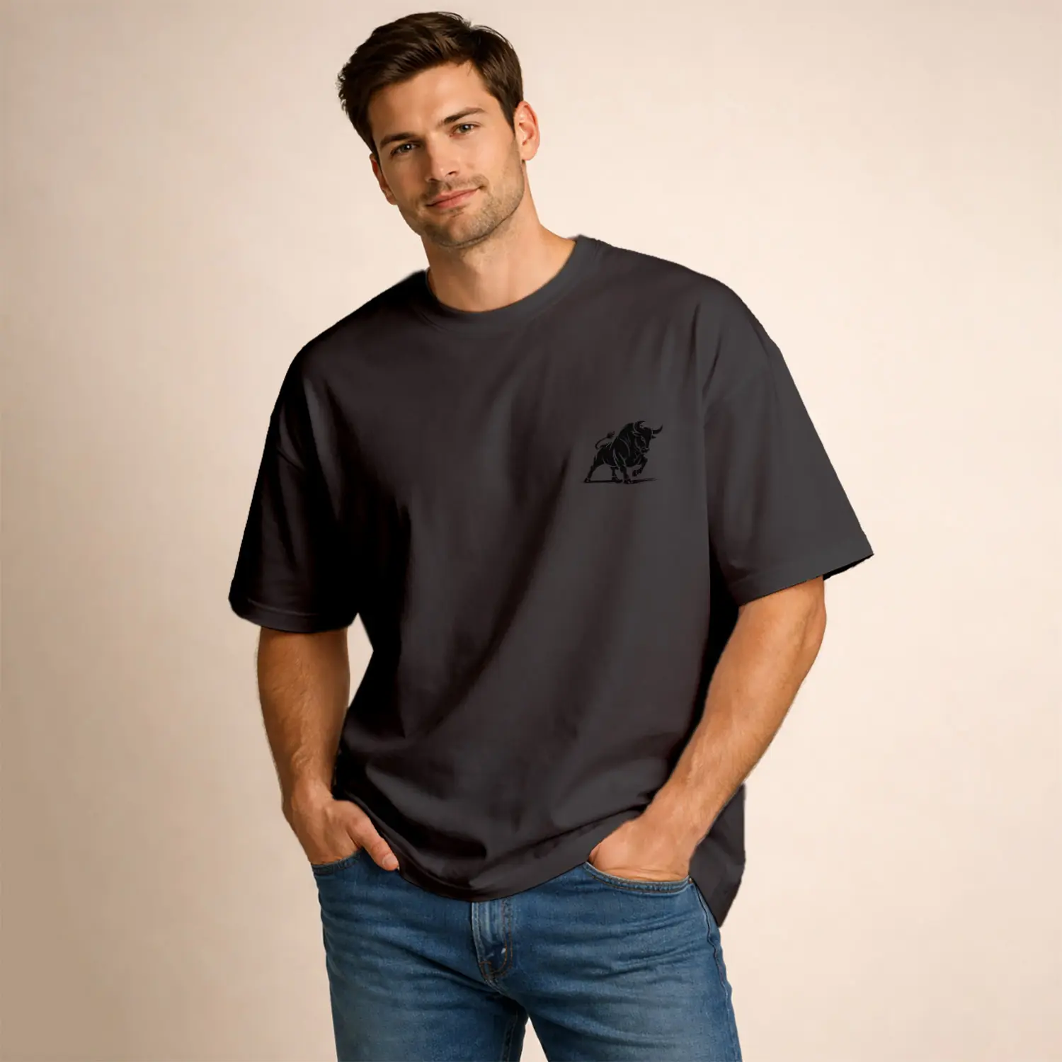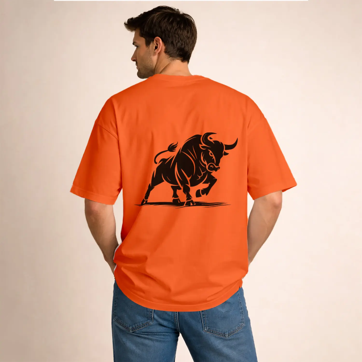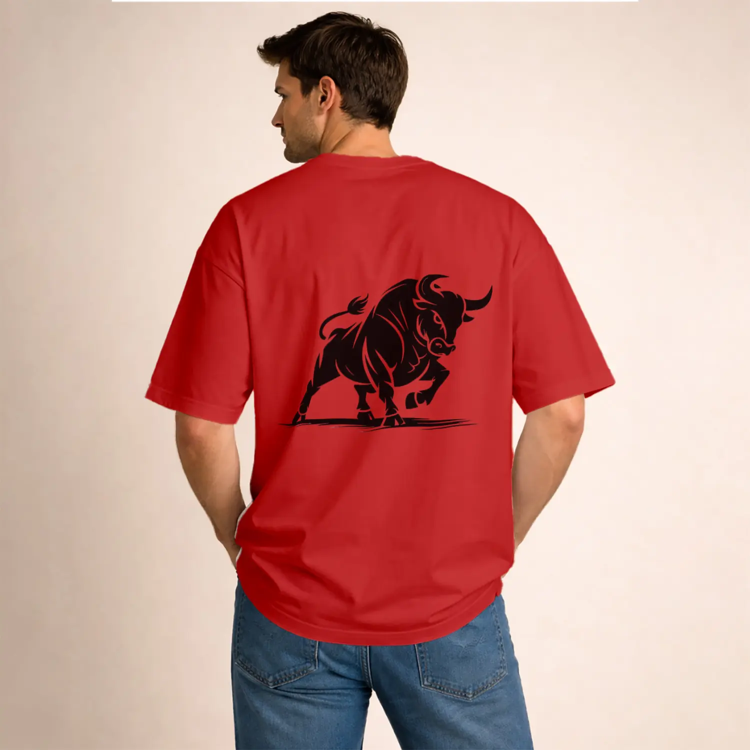 Asil Güçlü Boğa Figürlü Baskılı Erkek Tişört