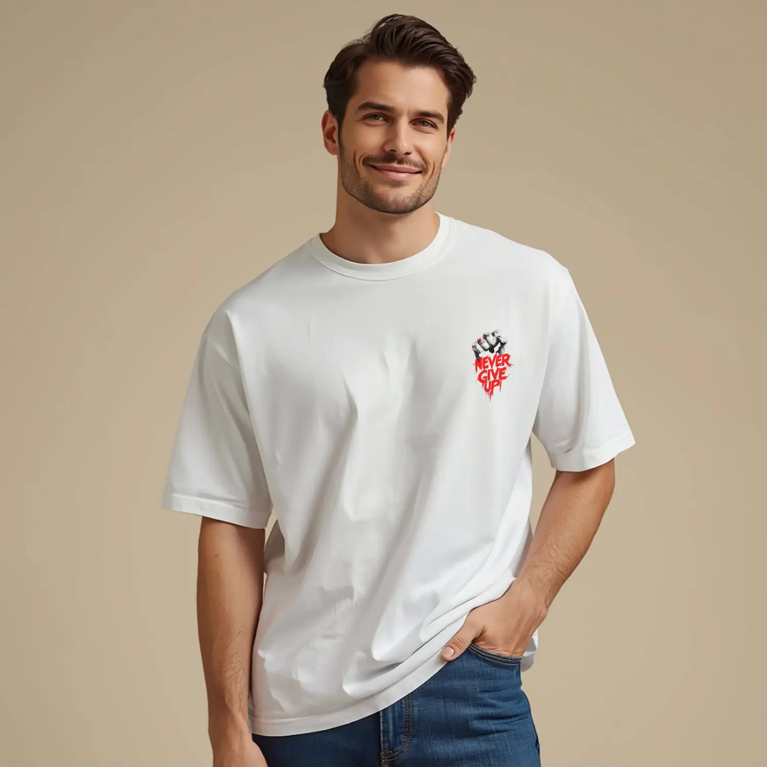 Asla Pes Etme Mesajlı Baskılı Erkek Tişört