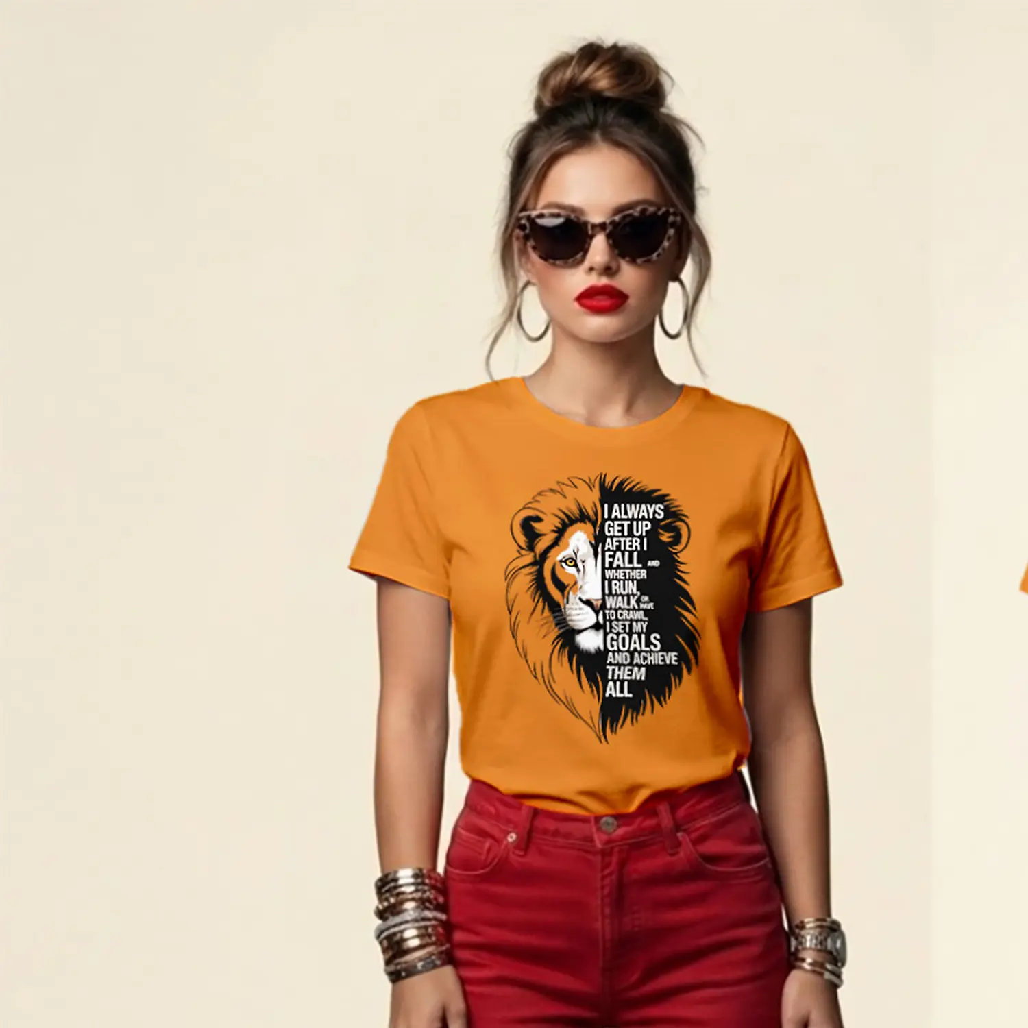 “Aslan Yüzü ve Motivasyon Yazılı Baskılı Kadın Tişört” için yorum yapan ilk kişi siz olun Yanıtı iptal et