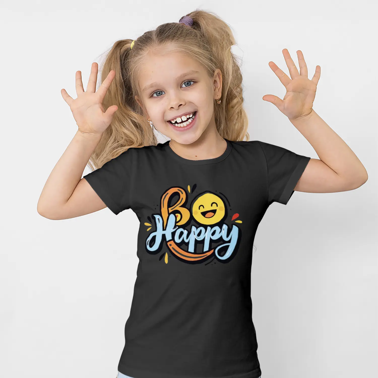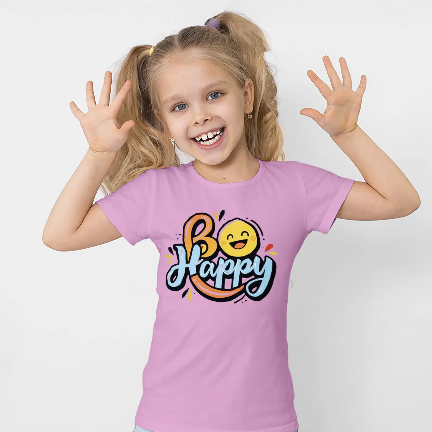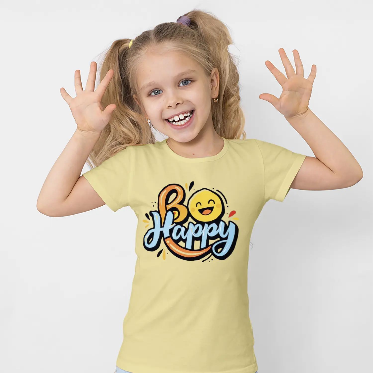 Be Happy Yazılı Gülen Emoji Figürlü Baskılı Kız Çocuk Tişörtü