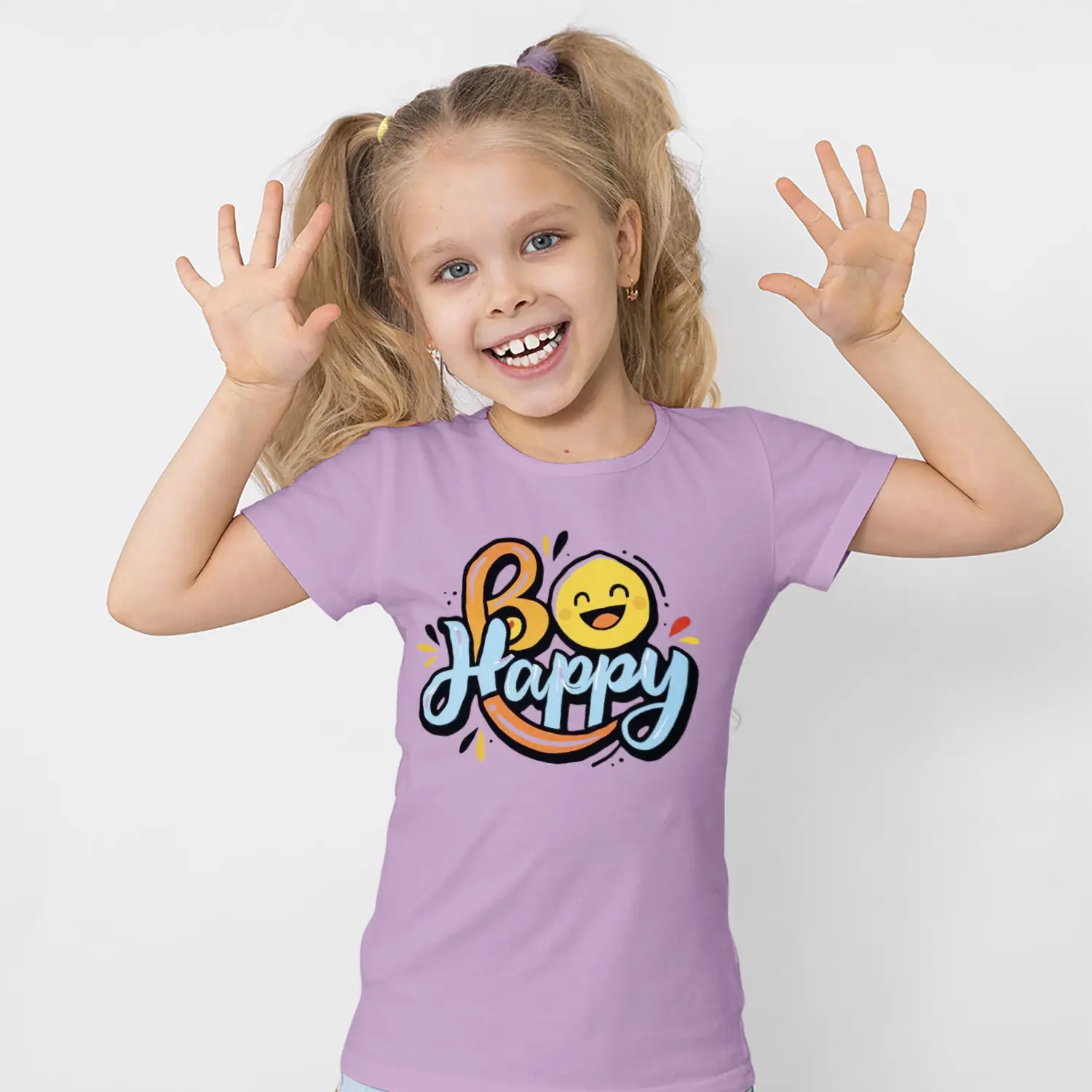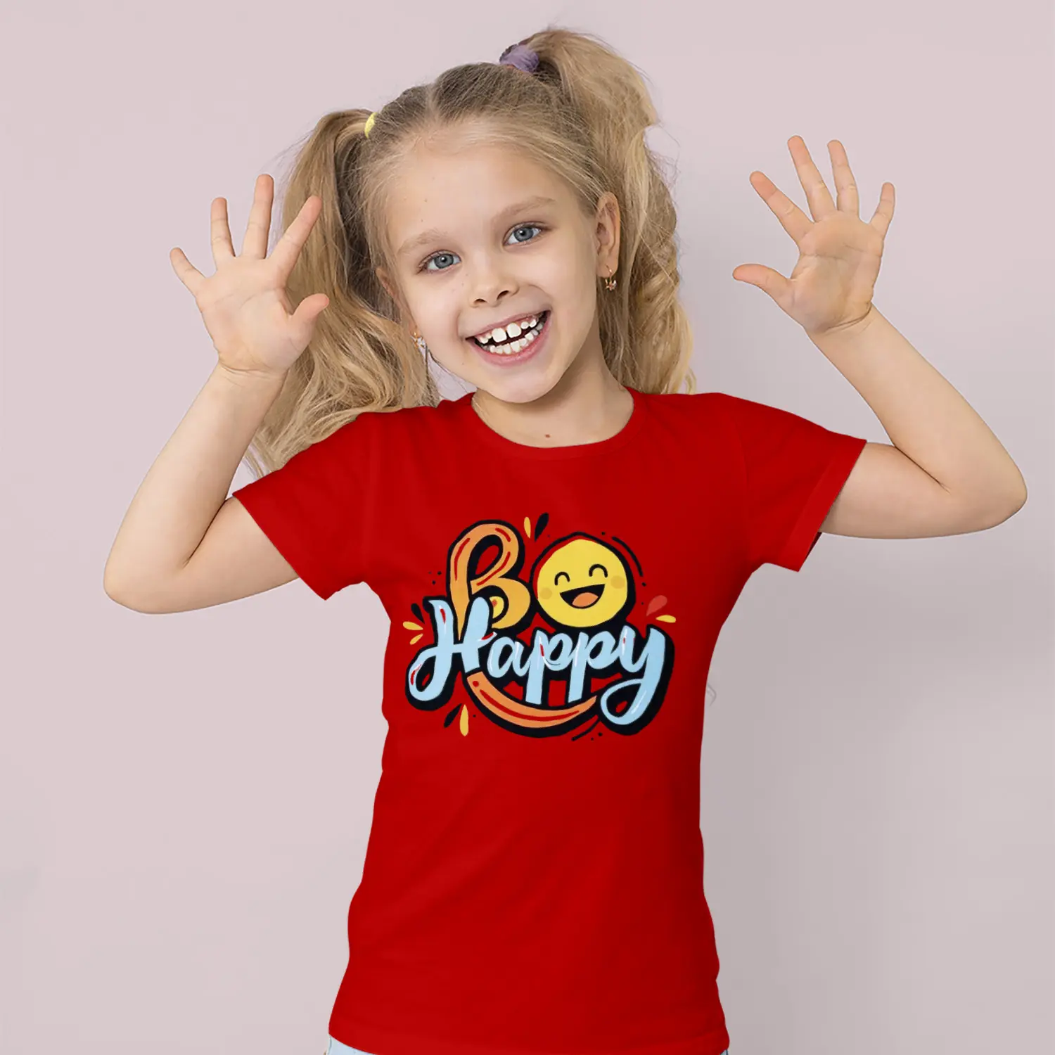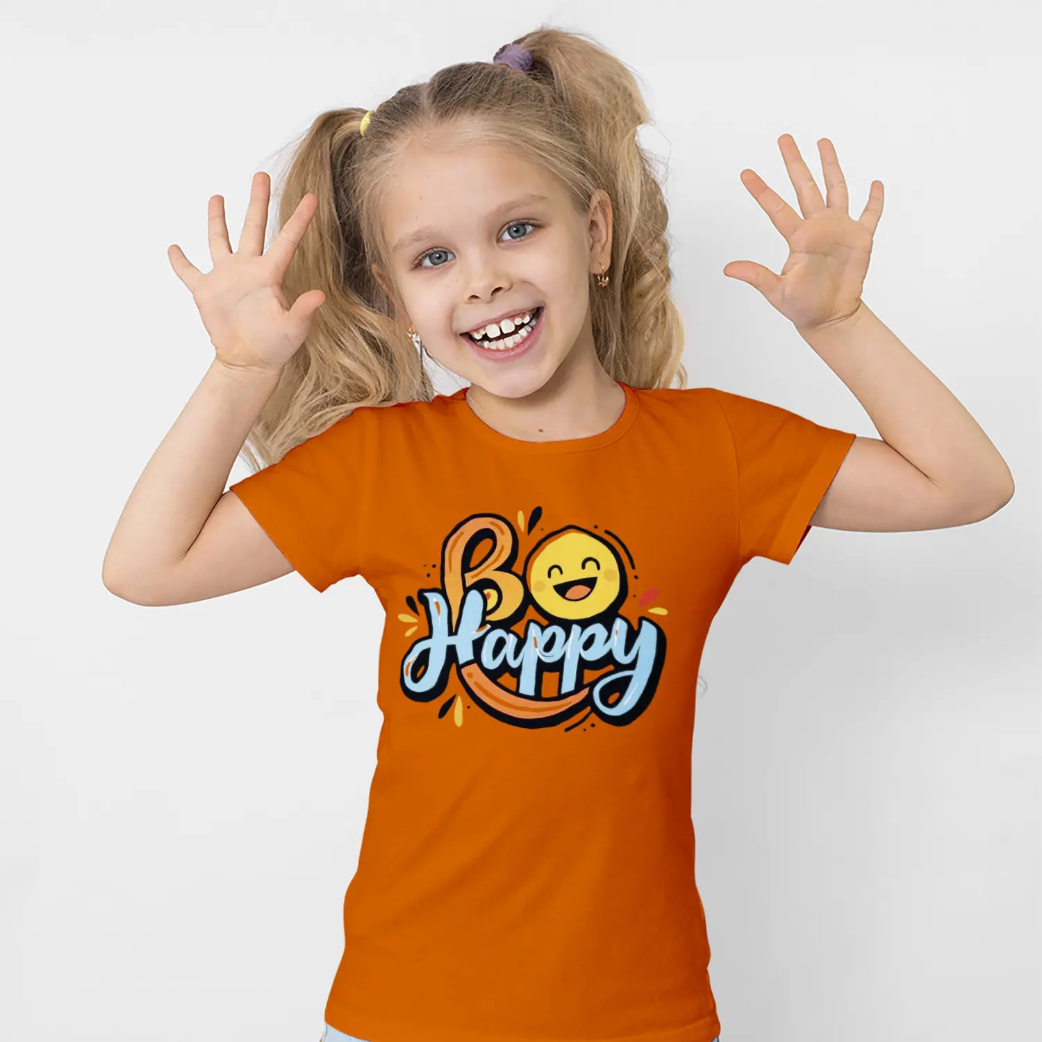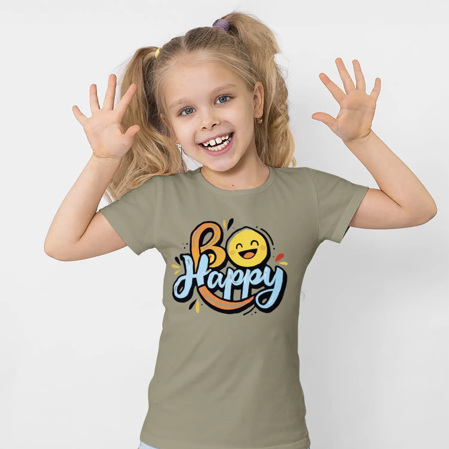 Be Happy Yazılı Gülen Emoji Figürlü Baskılı Kız Çocuk Tişörtü