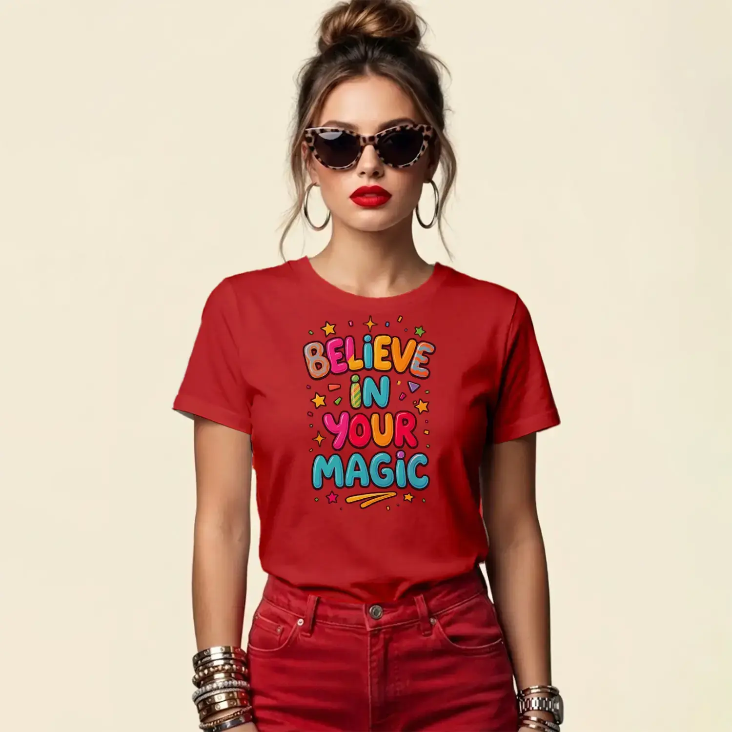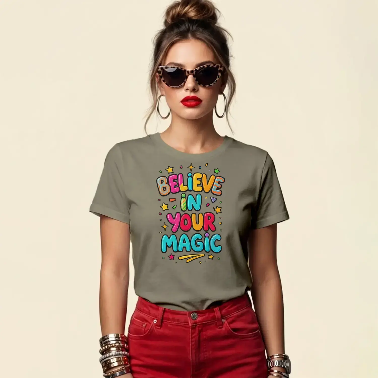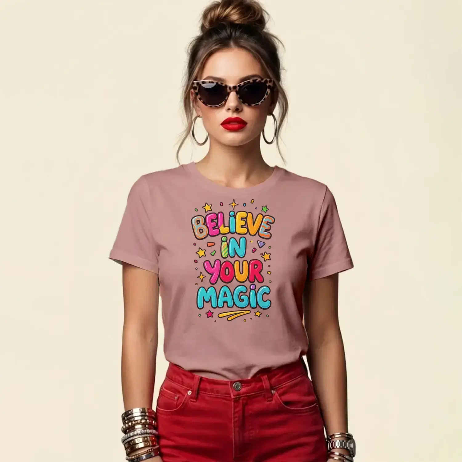 Believe In Your Magic Yazı Baskılı Kadın Tişört için 7 değerlendirme