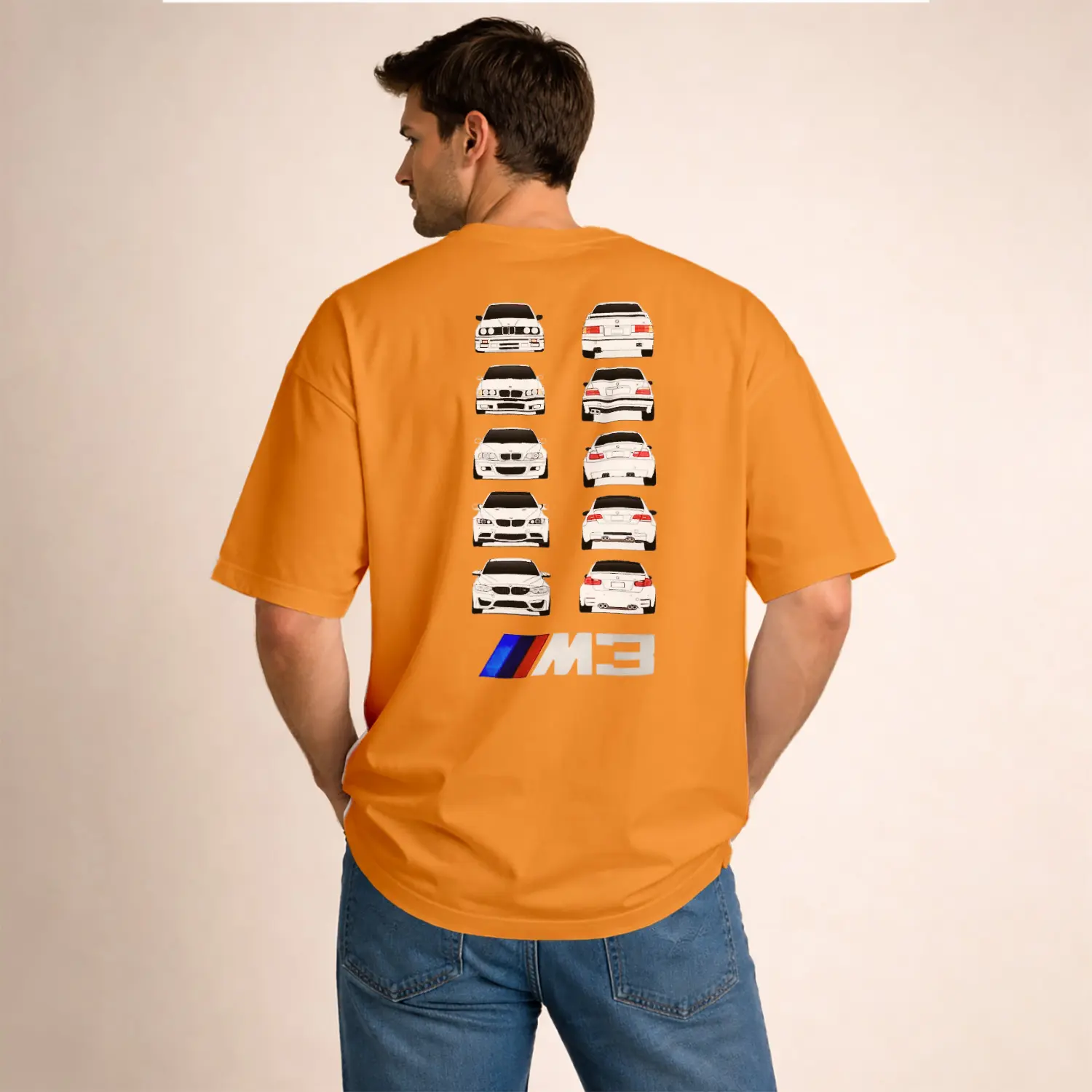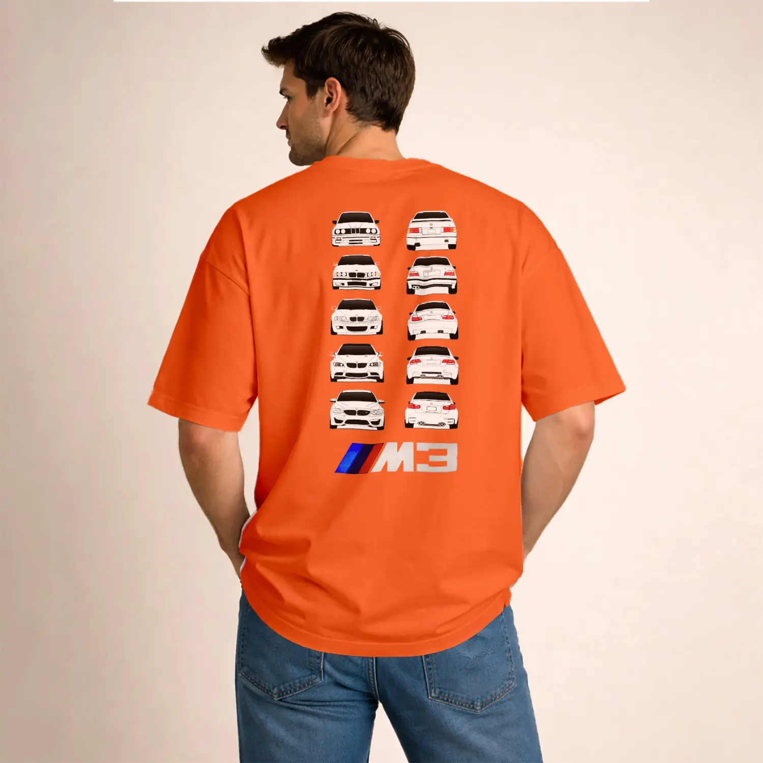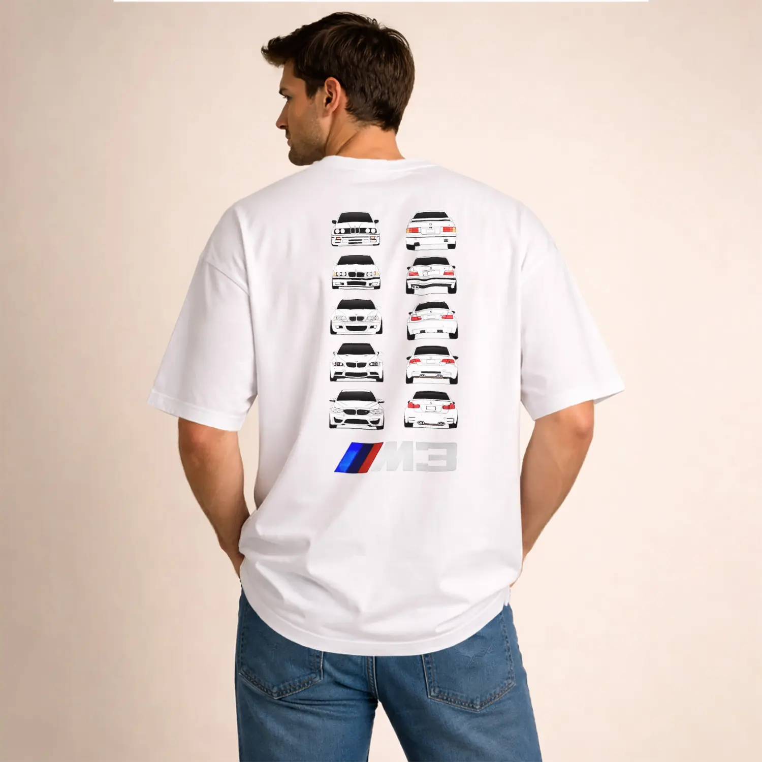 Beyaz Spor Araba Tasarımlı Erkek Baskılı Erkek Tişört