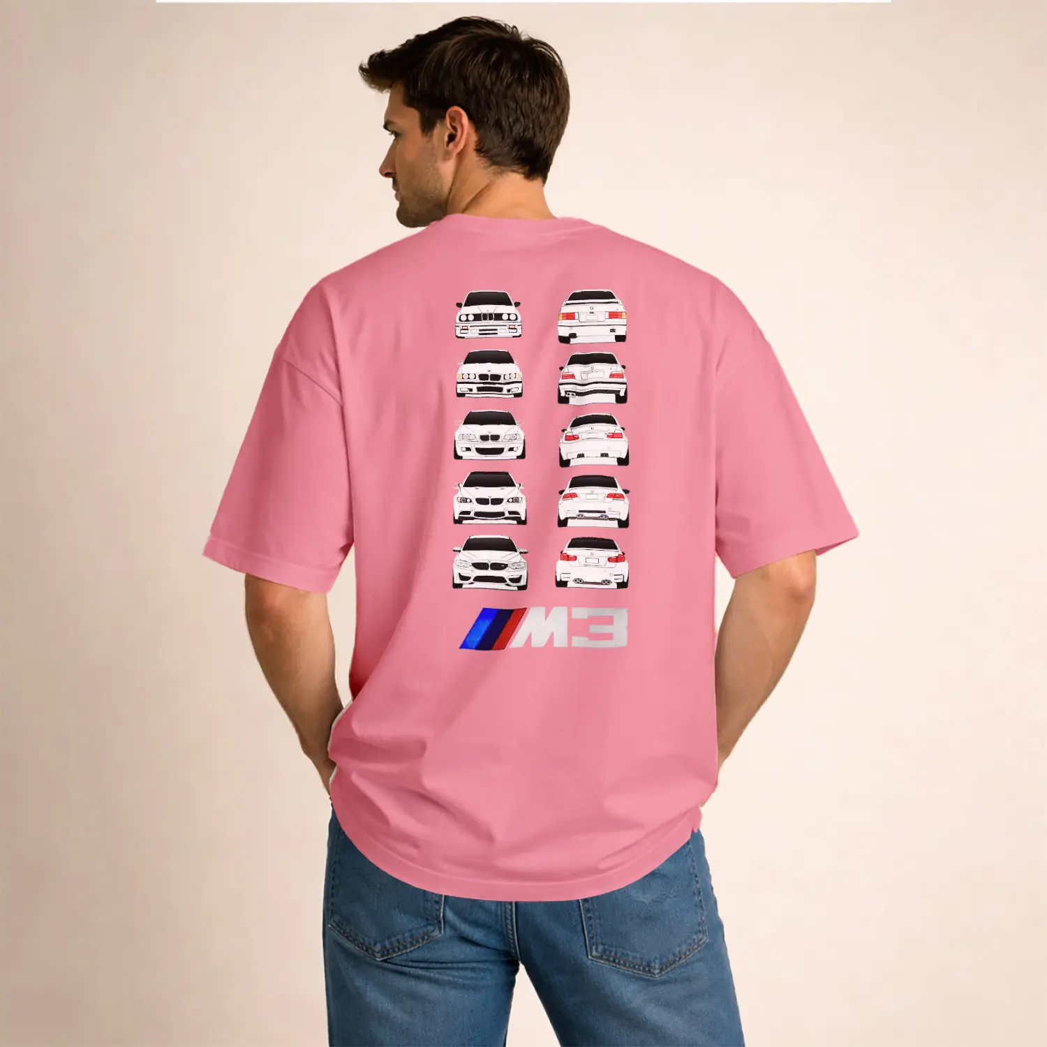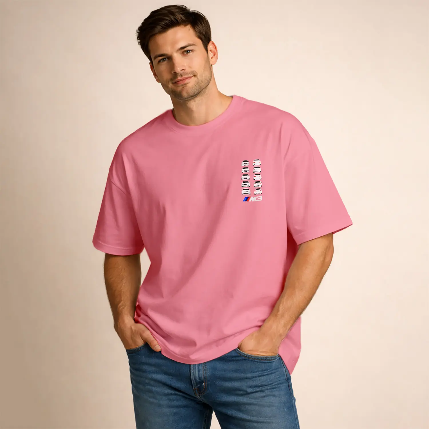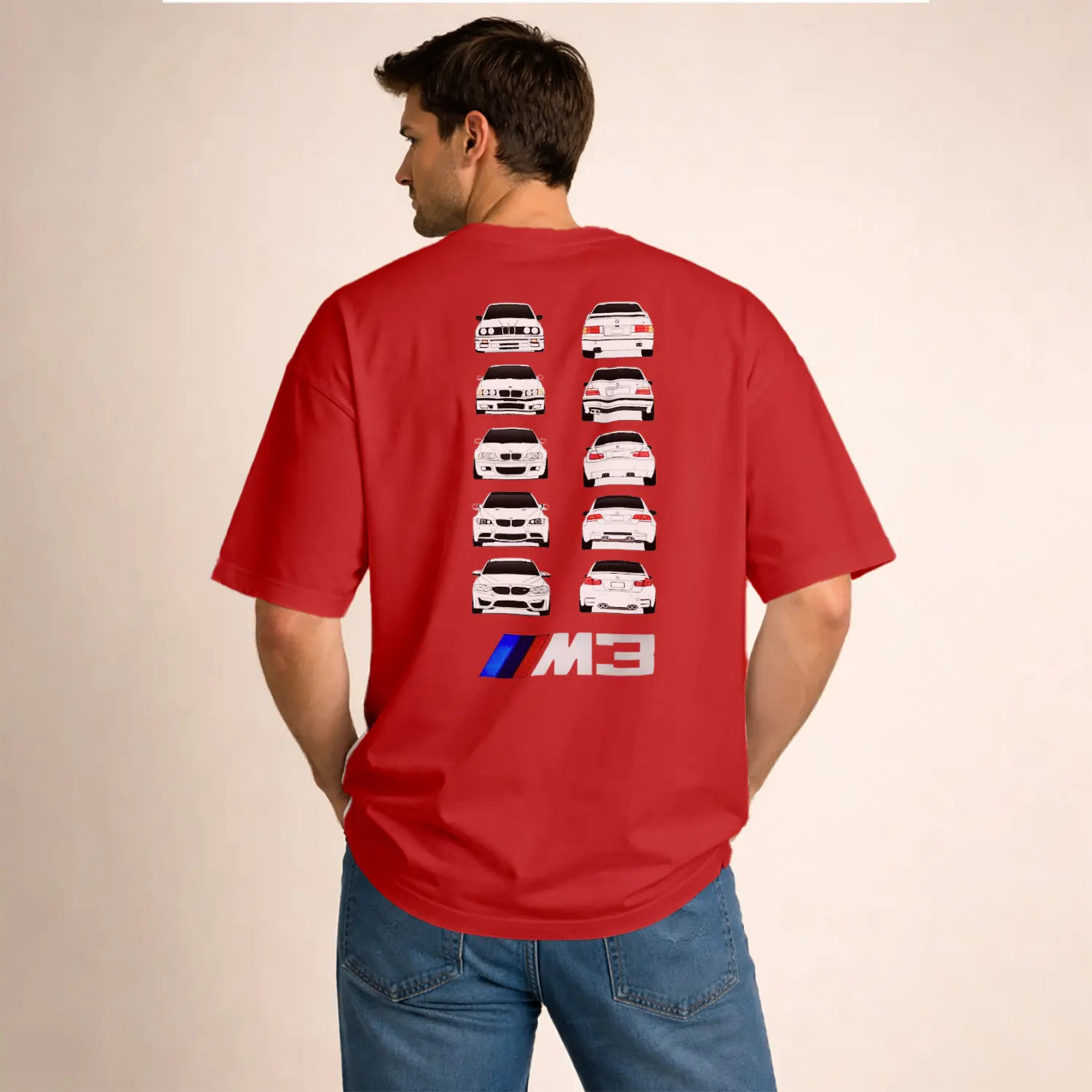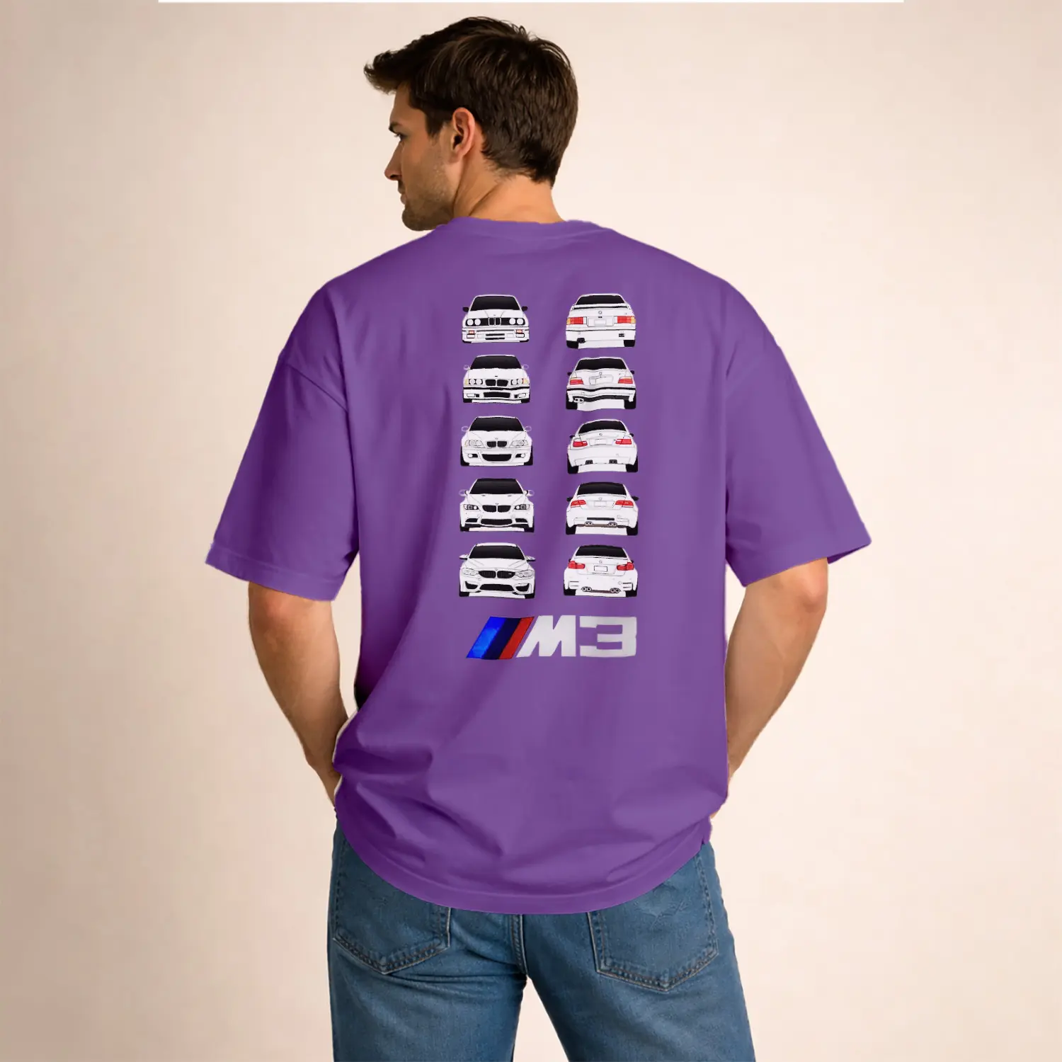 Beyaz Spor Araba Tasarımlı Erkek Baskılı Erkek Tişört