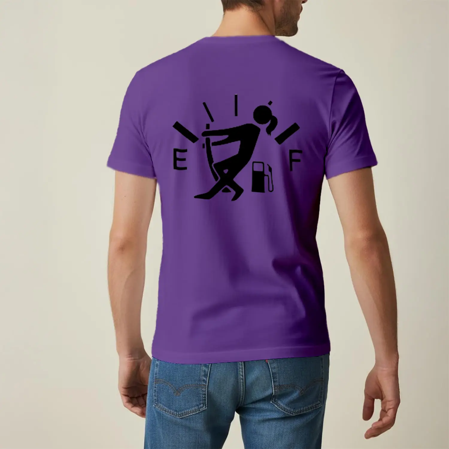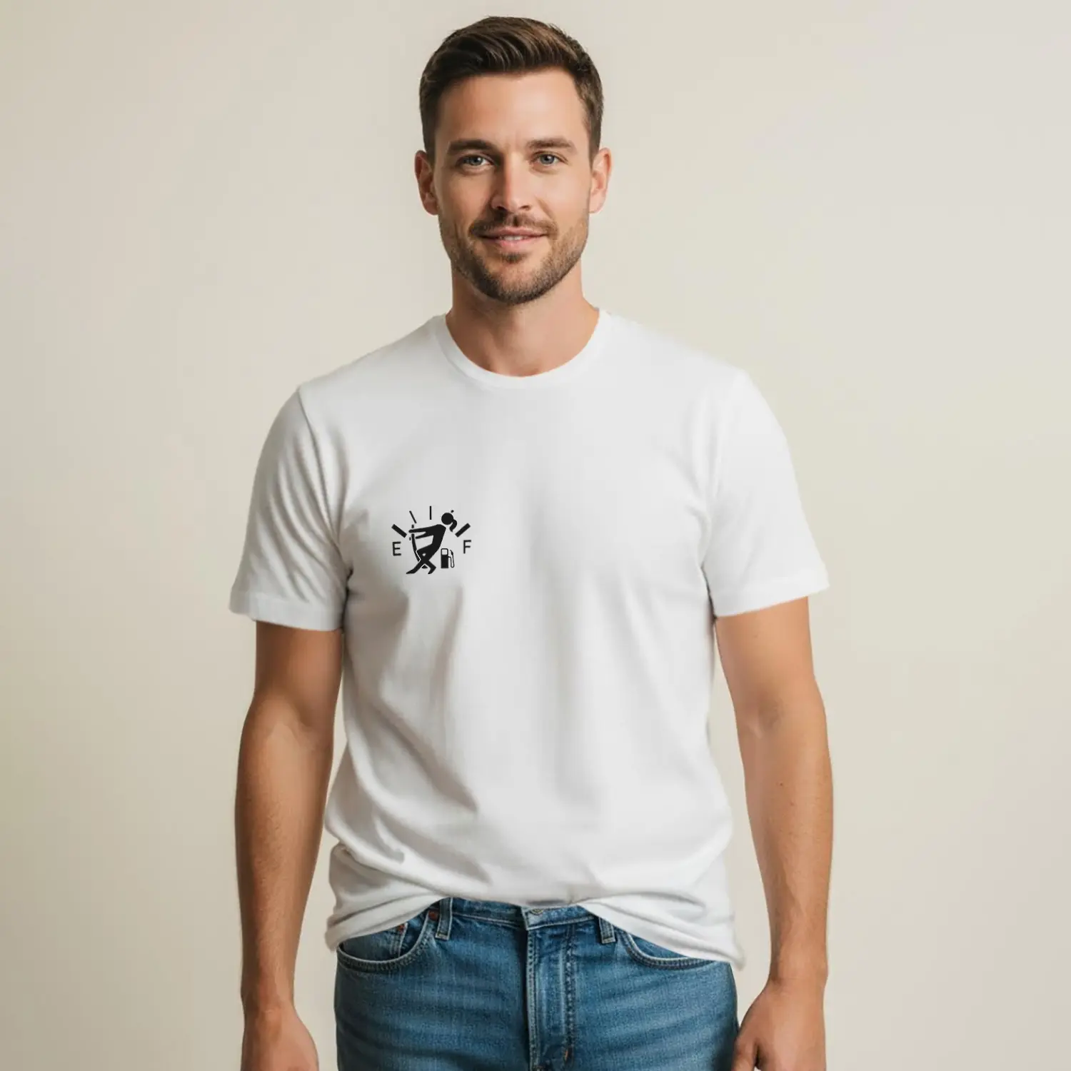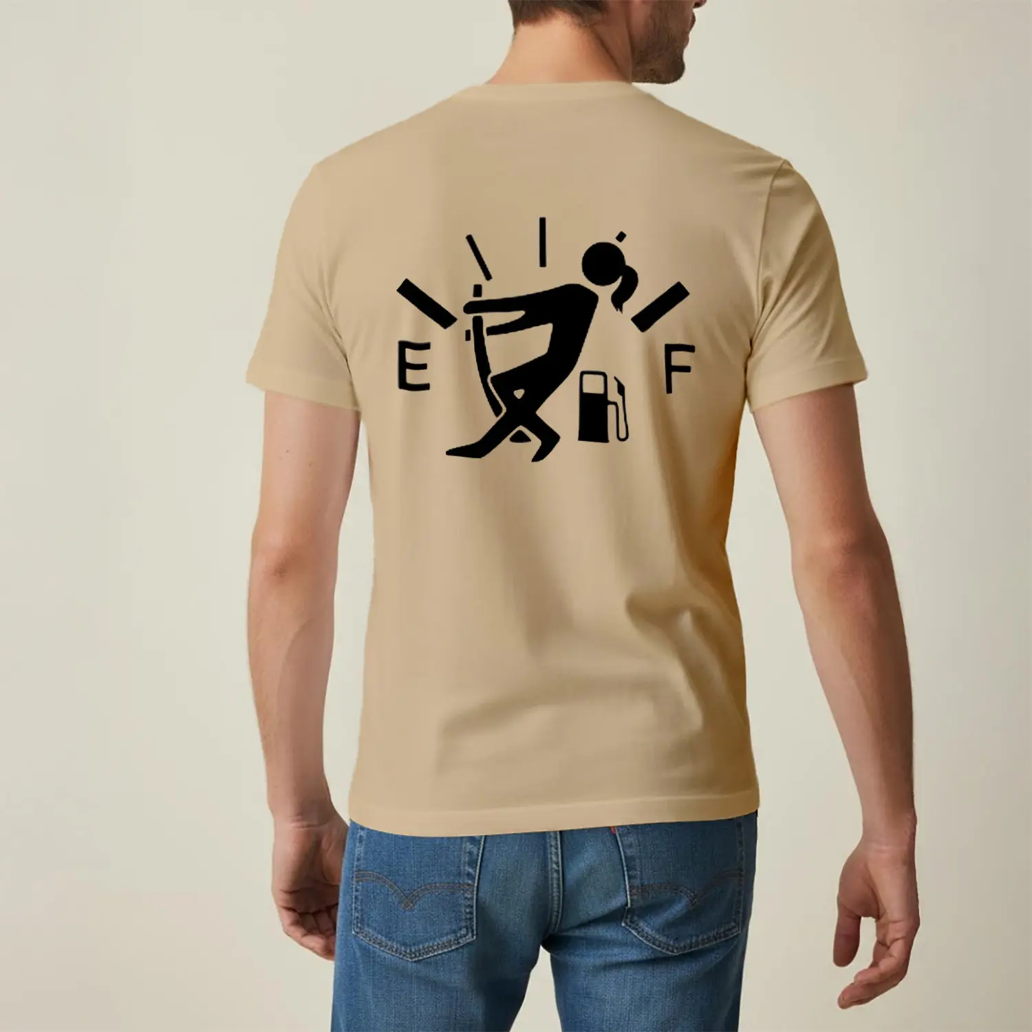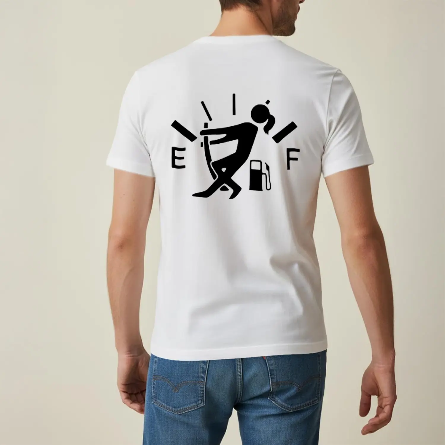 Boş Benzin Gösteren Mizahi Baskılı Erkek Tişört
