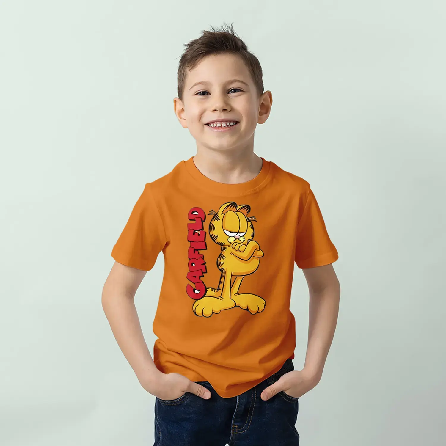 Cool Turuncu Kedi Karakter Baskılı Erkek Çocuk Tişörtü