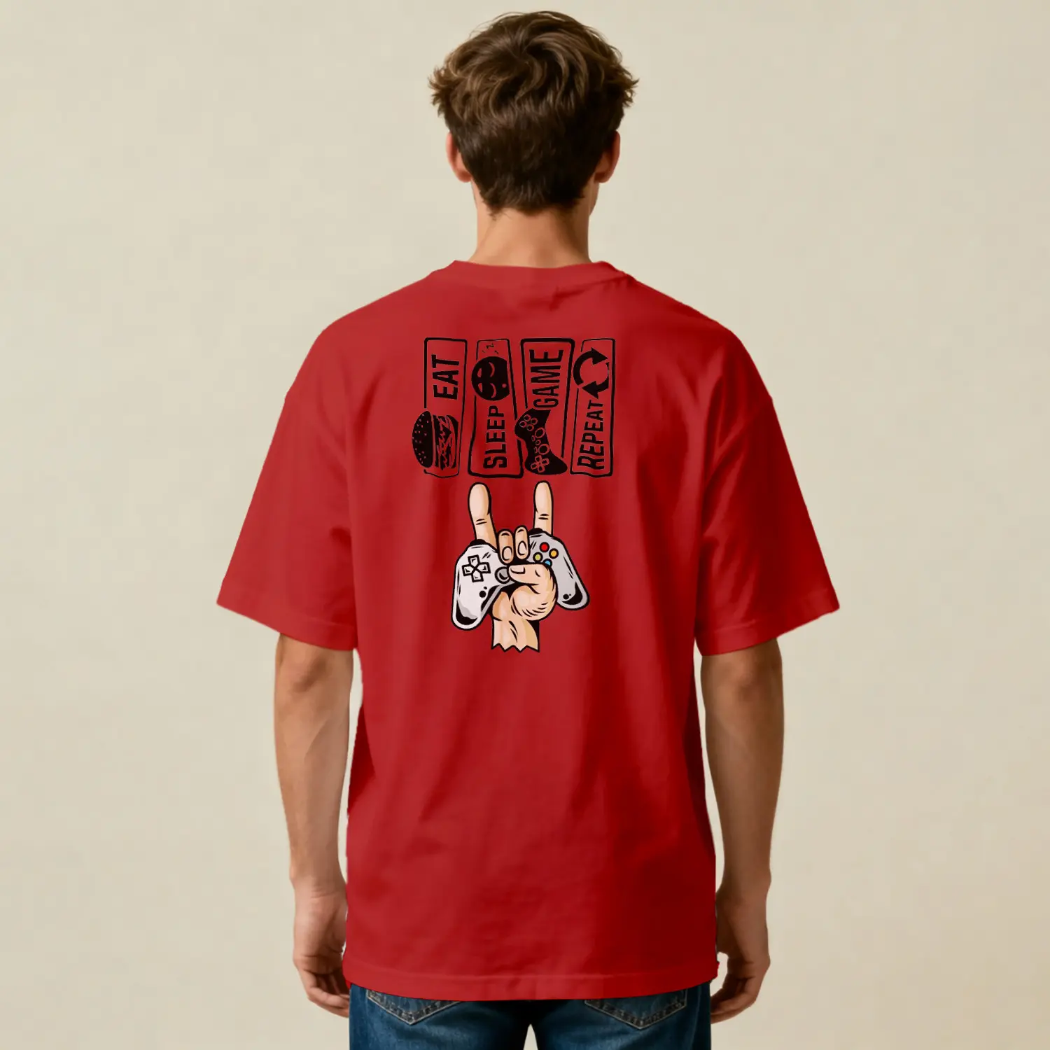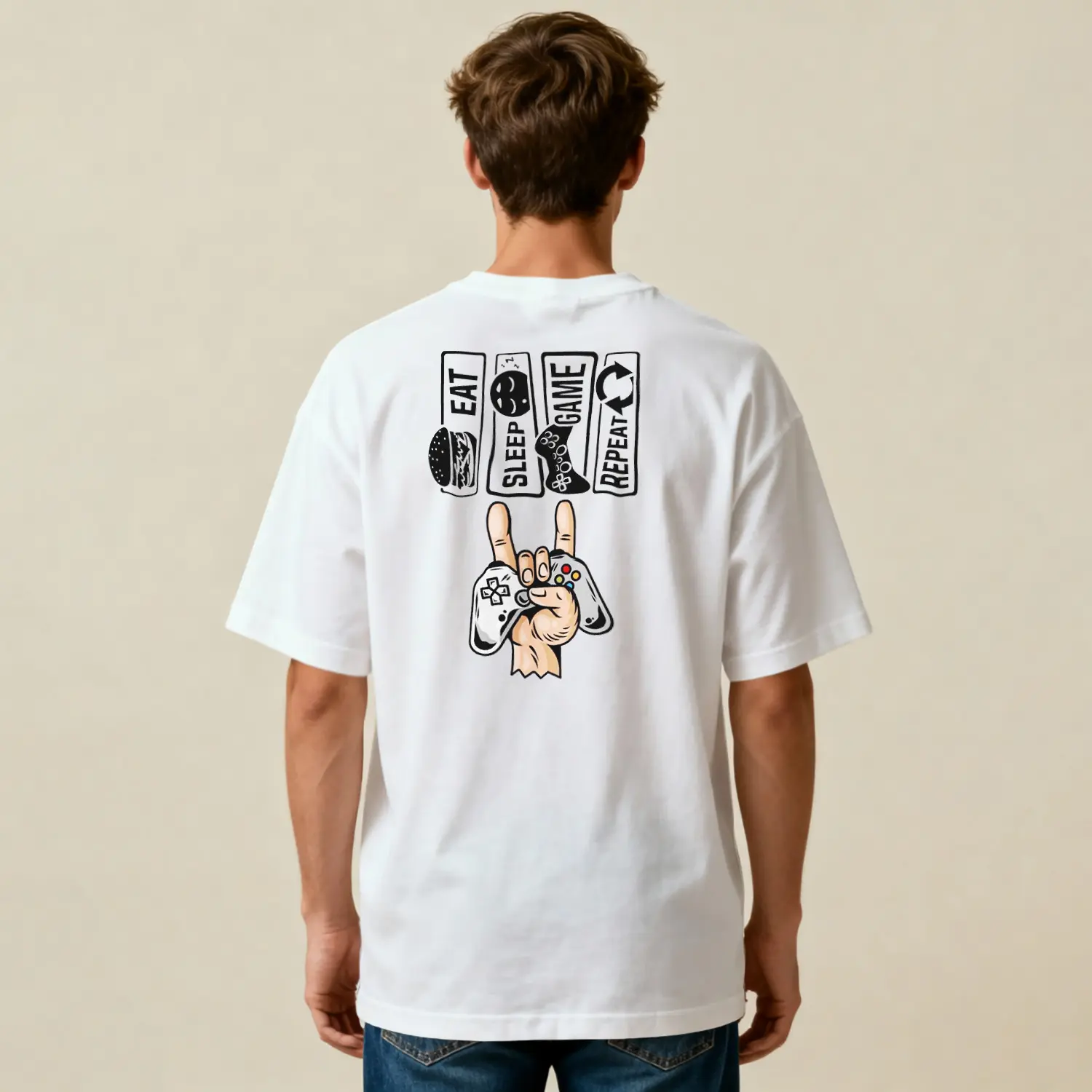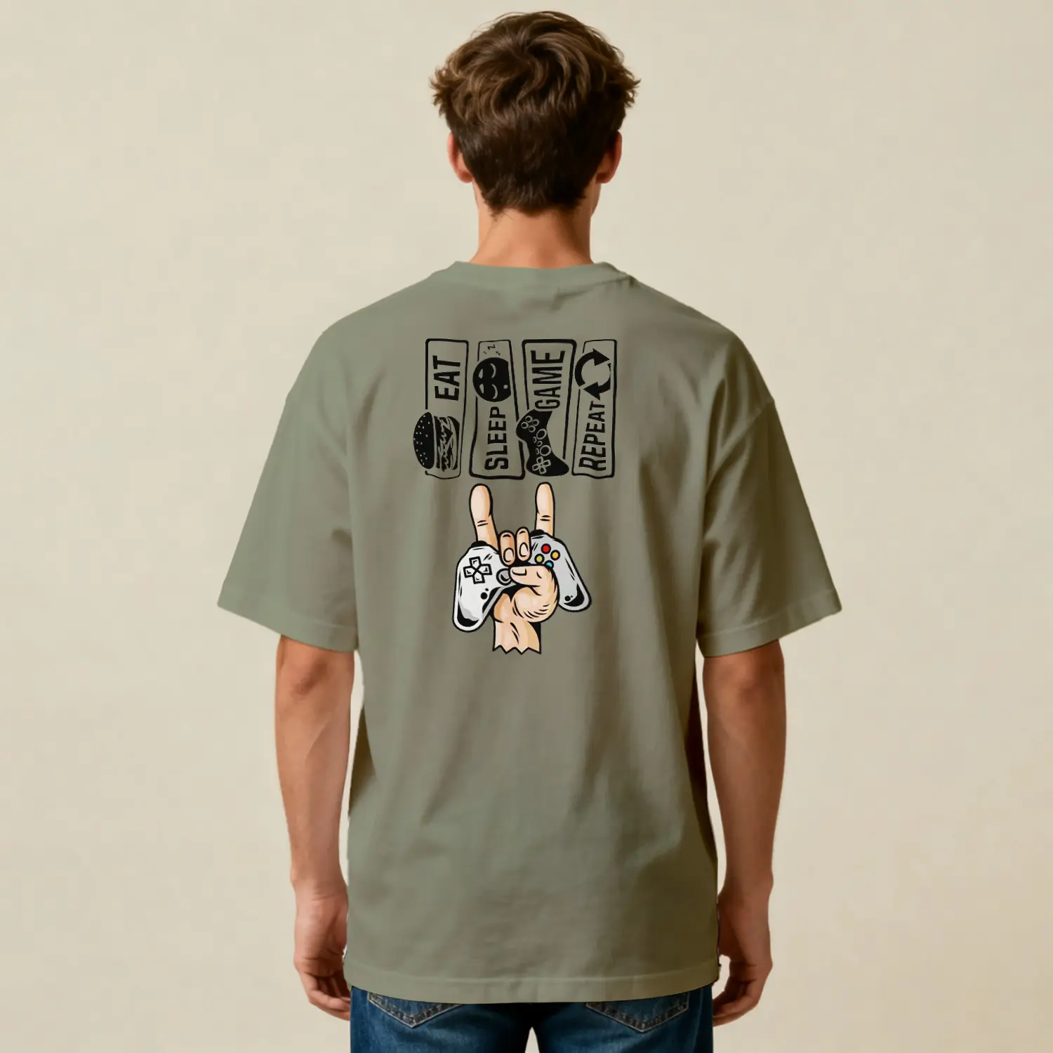 Eat Sleep Game Repeat Tasarımlı Baskılı Erkek Tişört