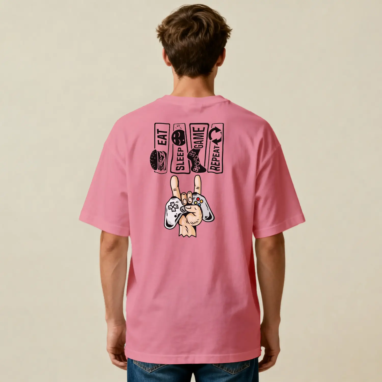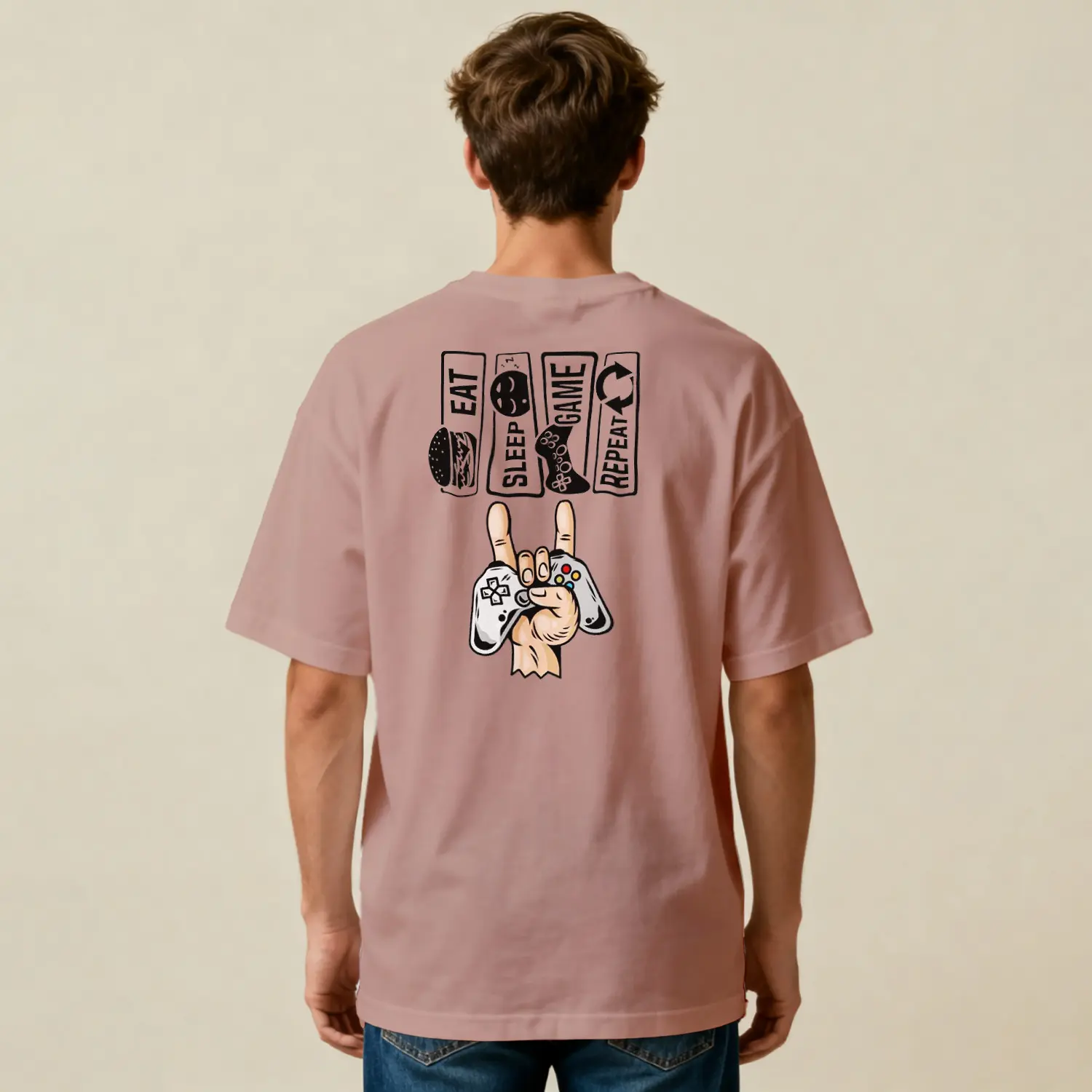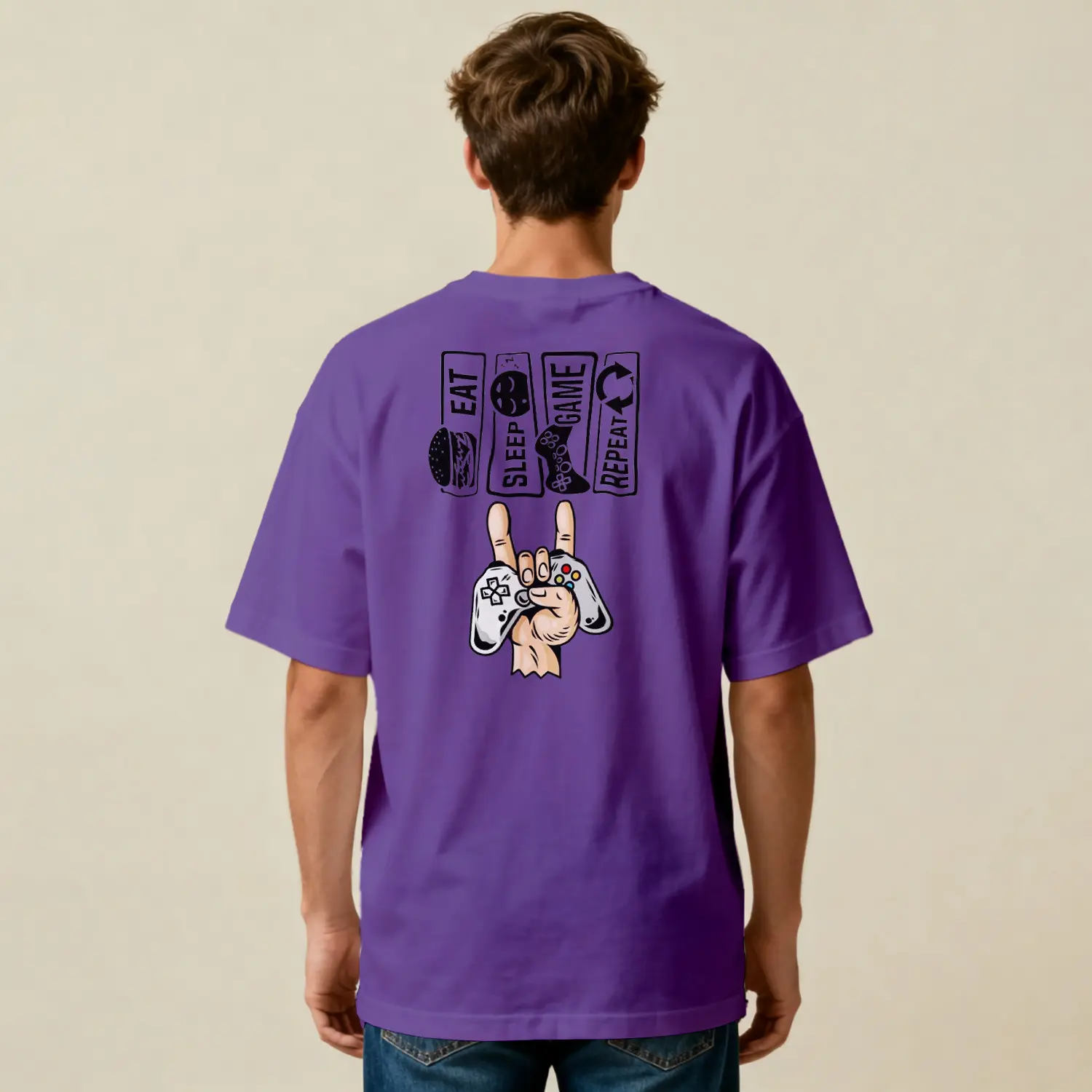 Eat Sleep Game Repeat Tasarımlı Baskılı Erkek Tişört