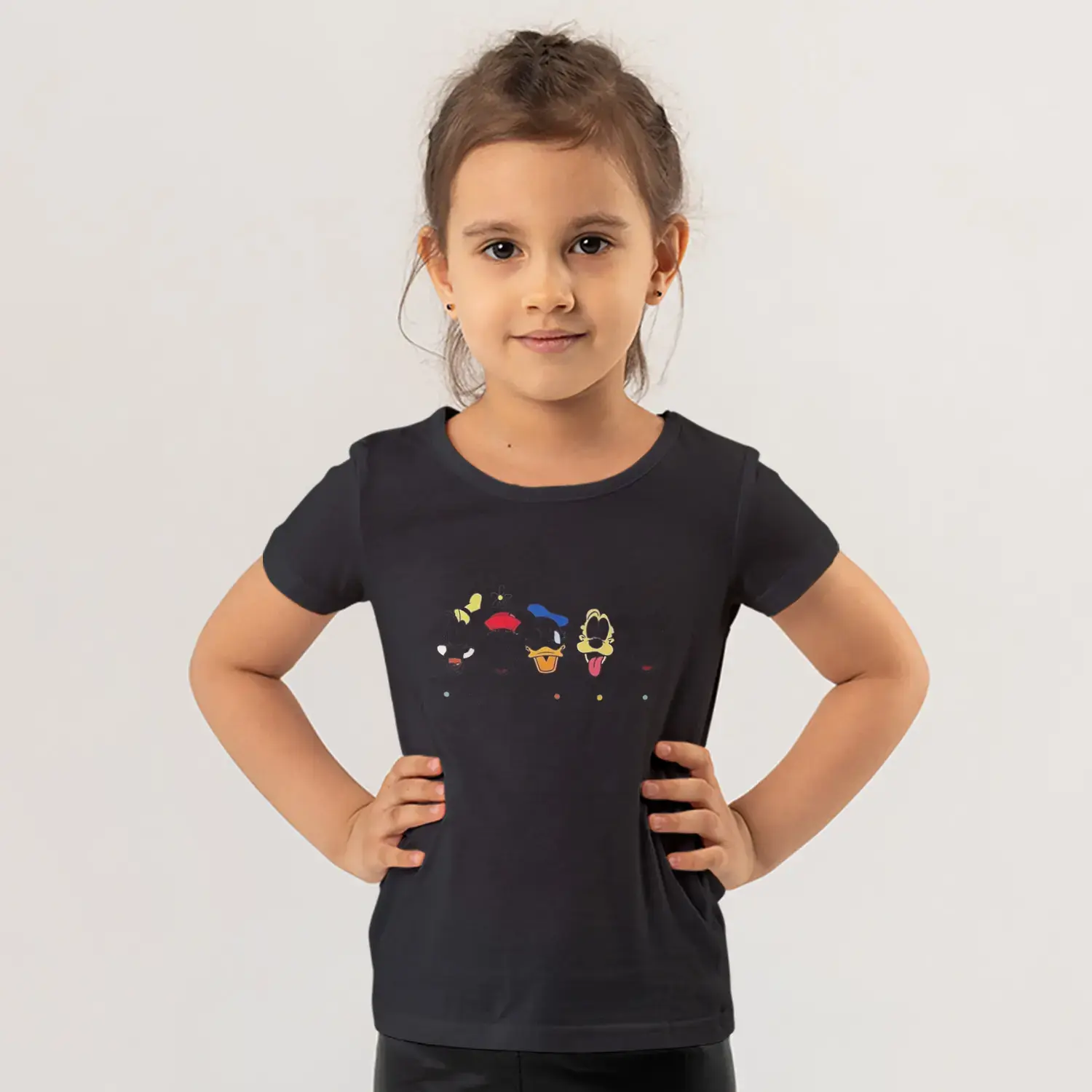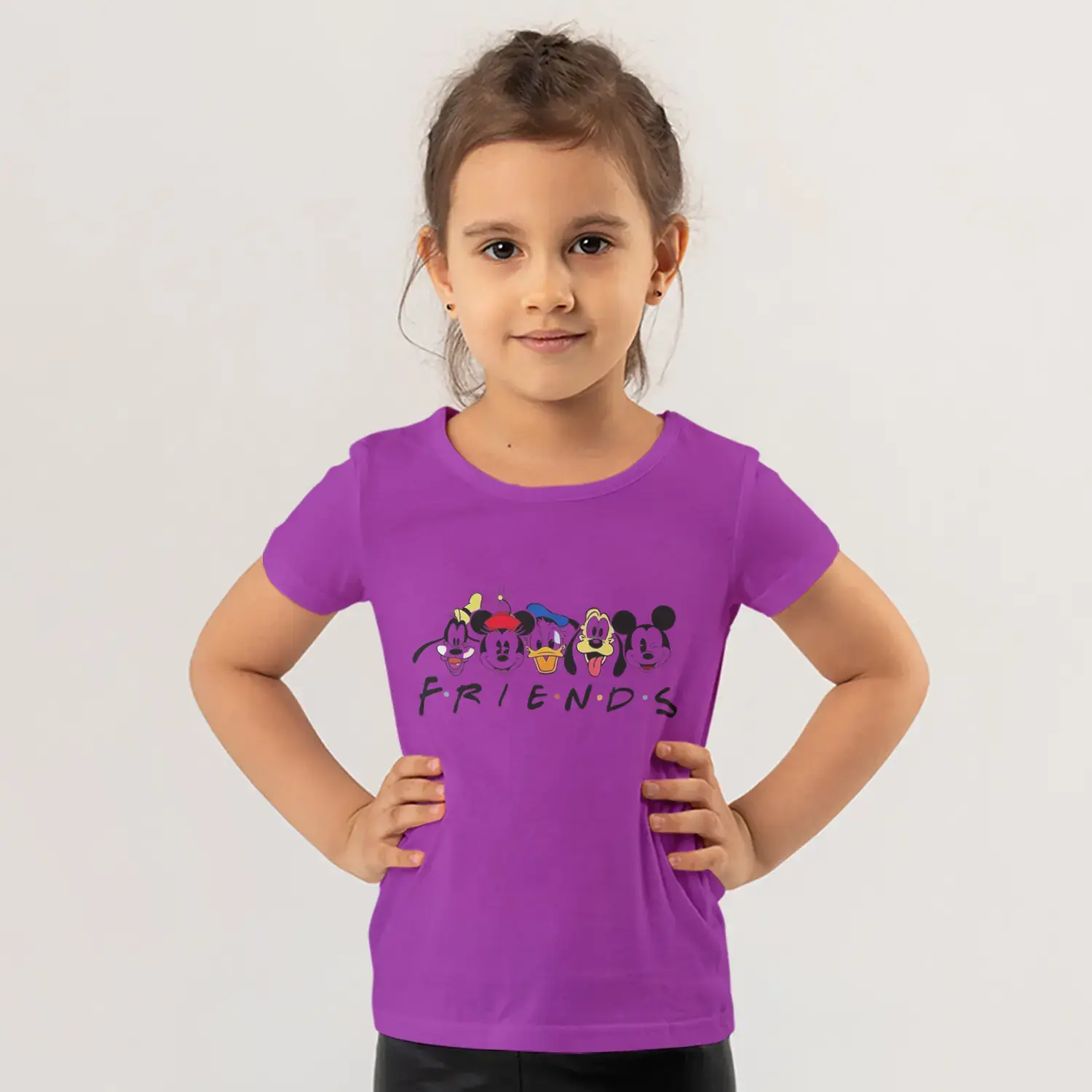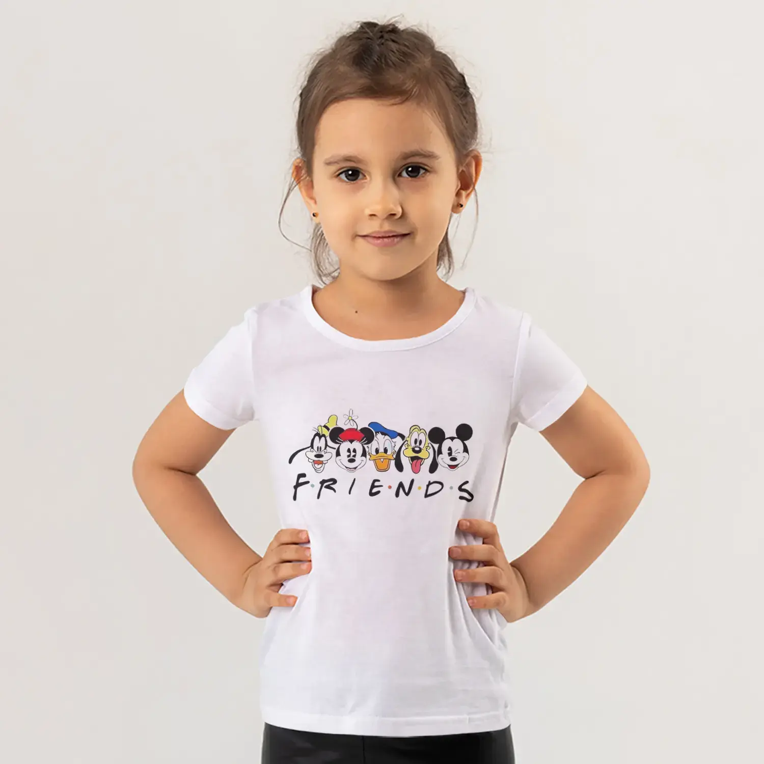 Friends Yazılı Beşli Sevimli Karikatür Hayvan Yüzleri Baskılı Kız Çocuk Tişörtü