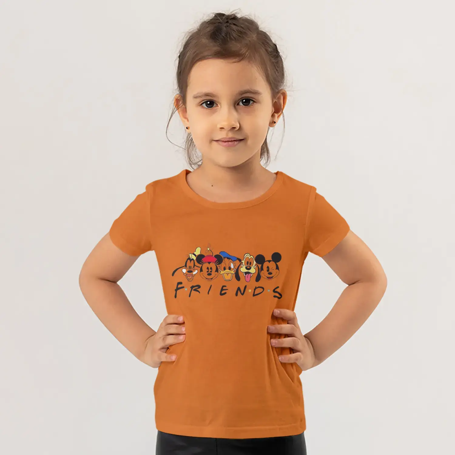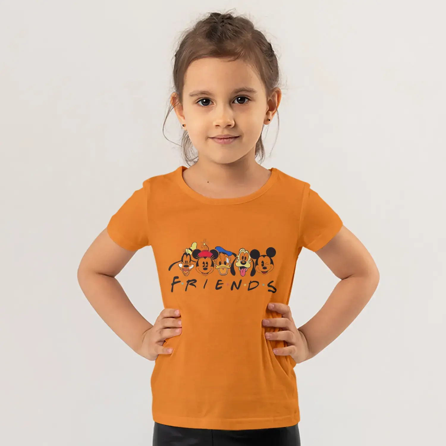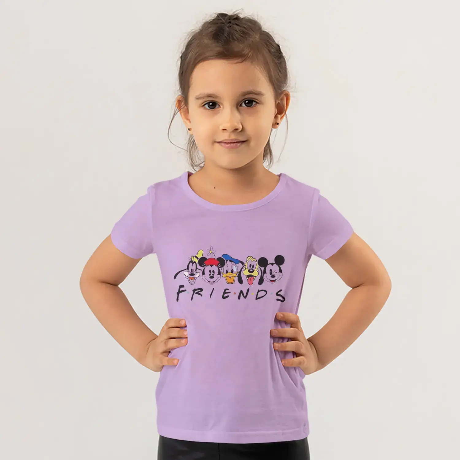 Friends Yazılı Beşli Sevimli Karikatür Hayvan Yüzleri Baskılı Kız Çocuk Tişörtü