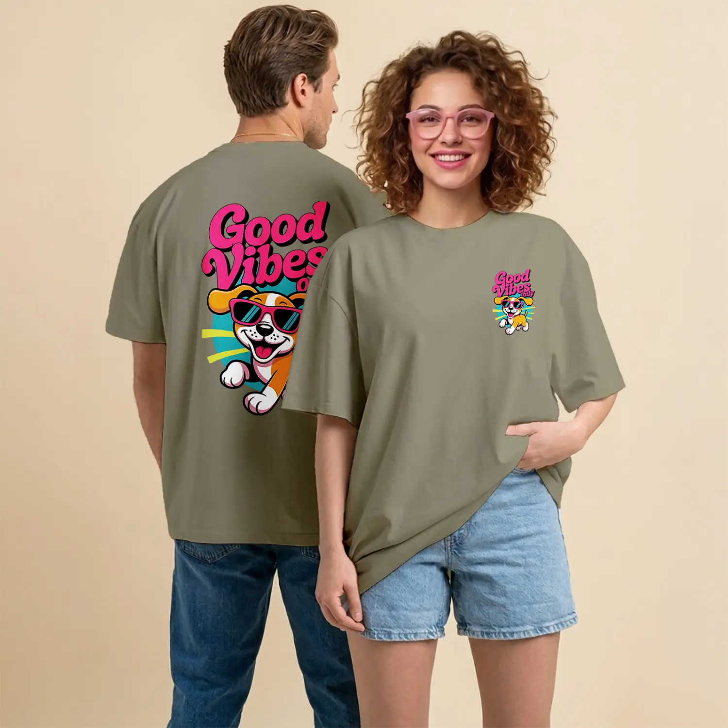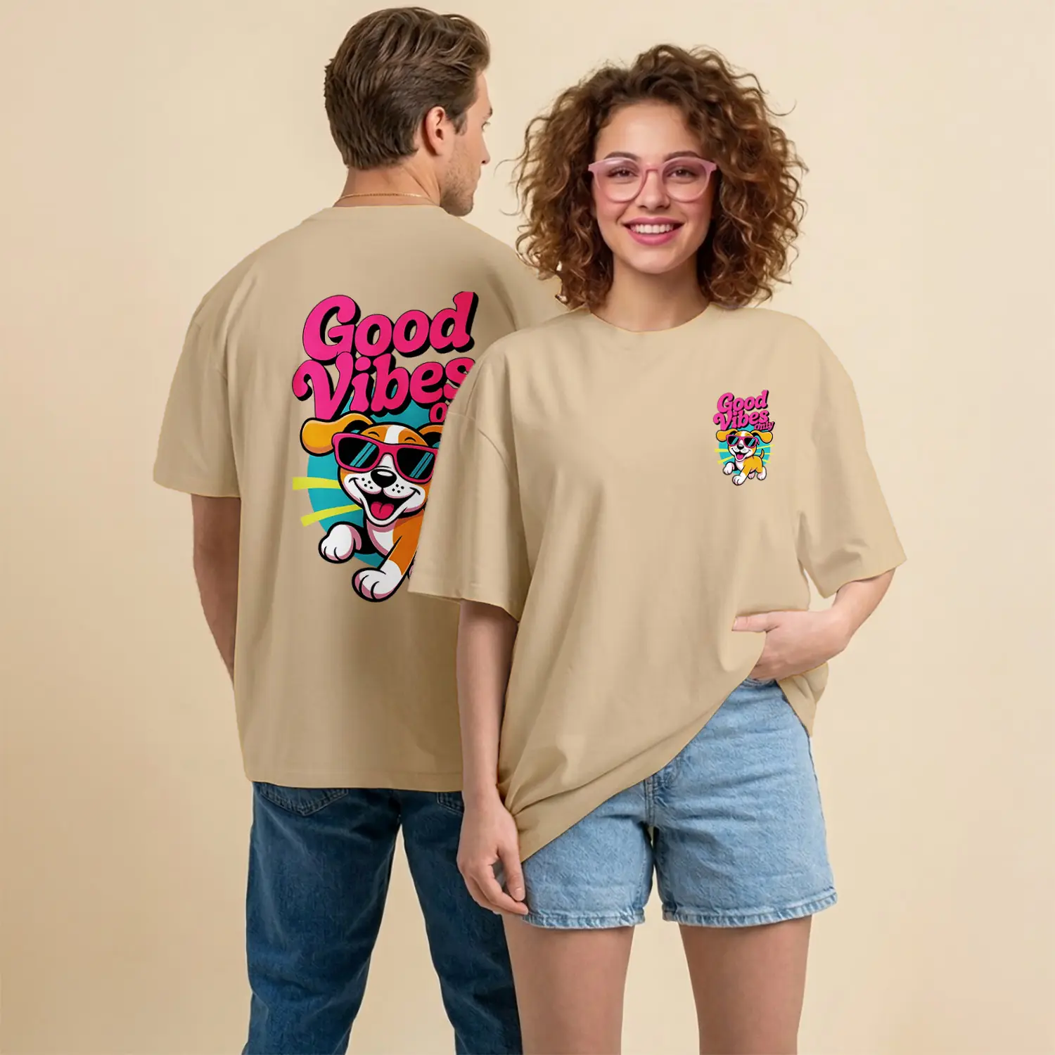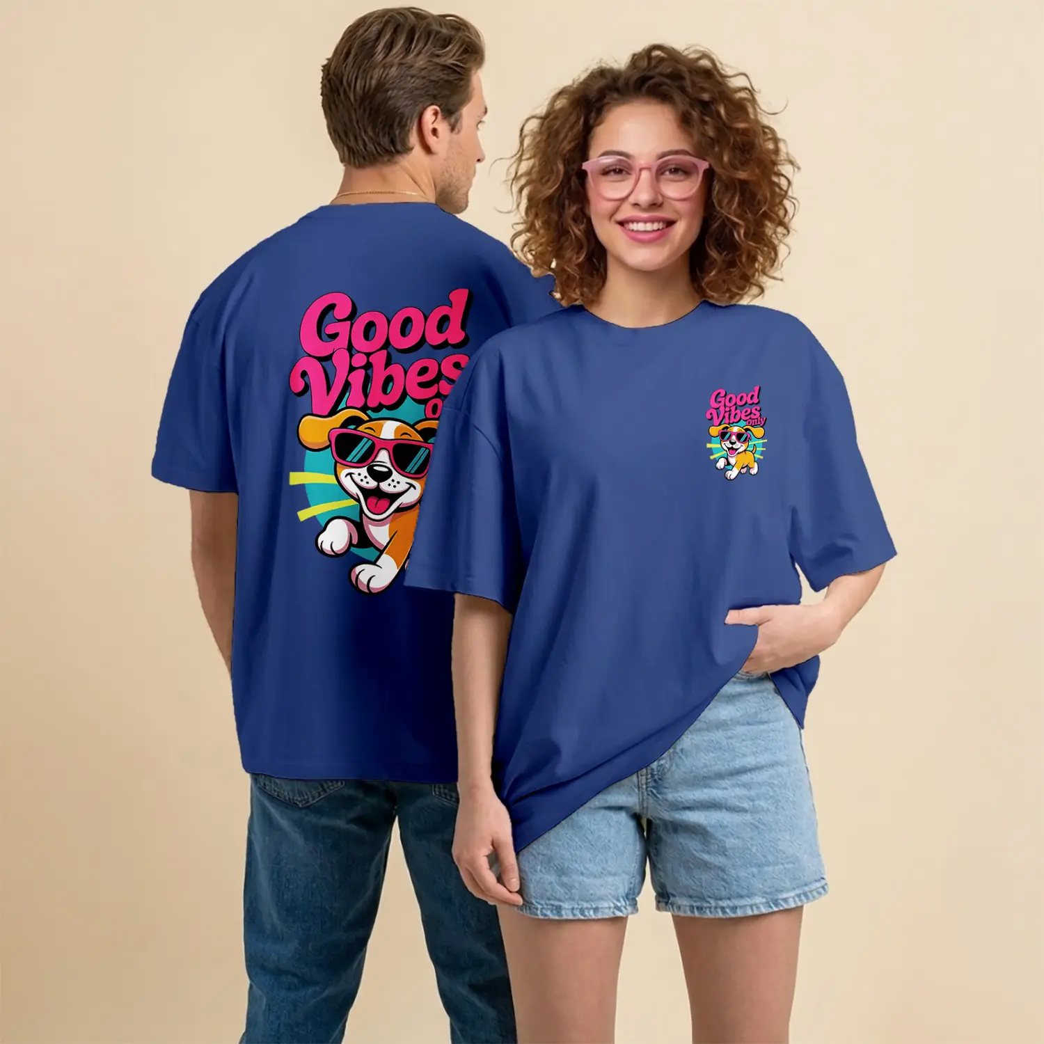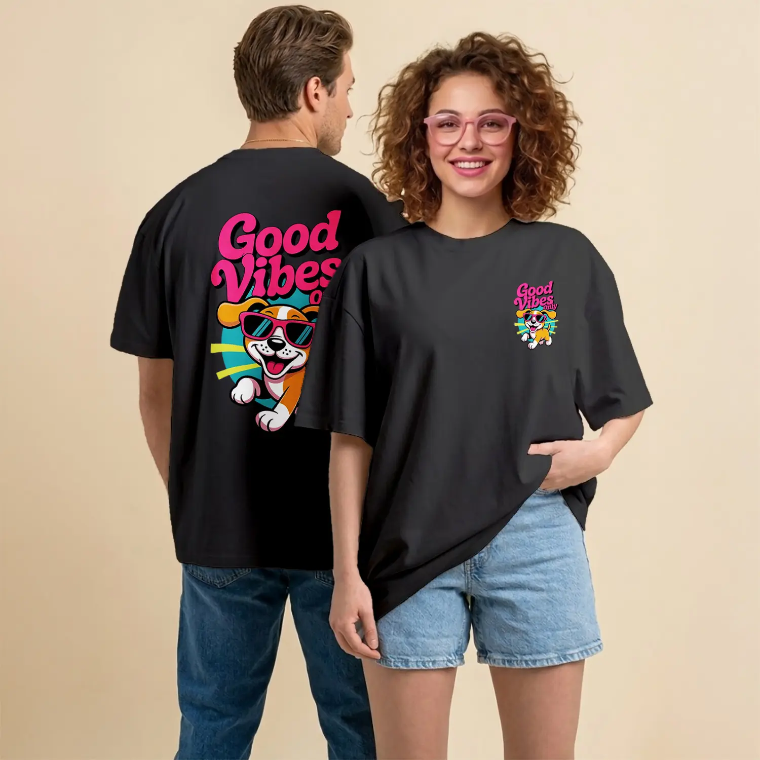 Good Vibes Only Güneş Gözlüklü Köpek Figürü Baskılı Unisex Tişört