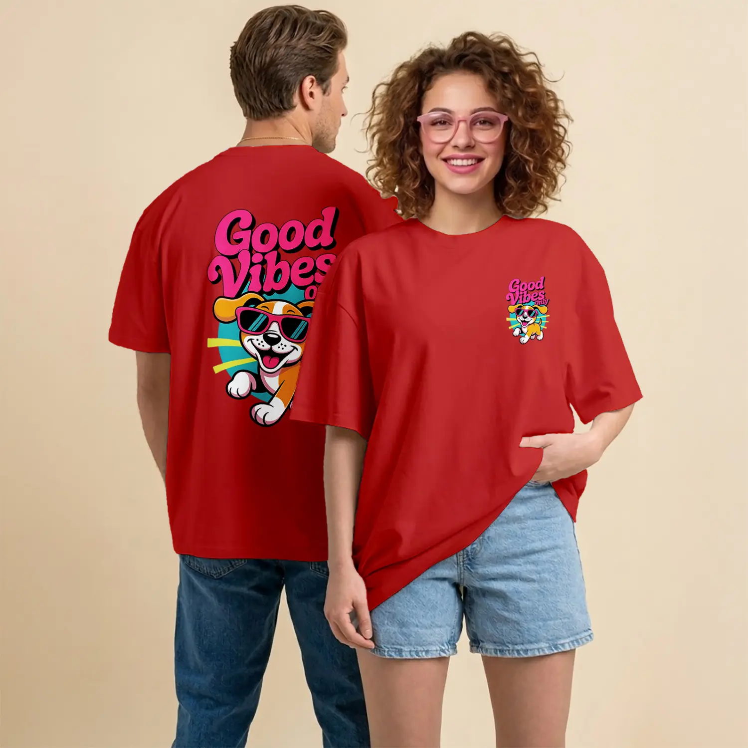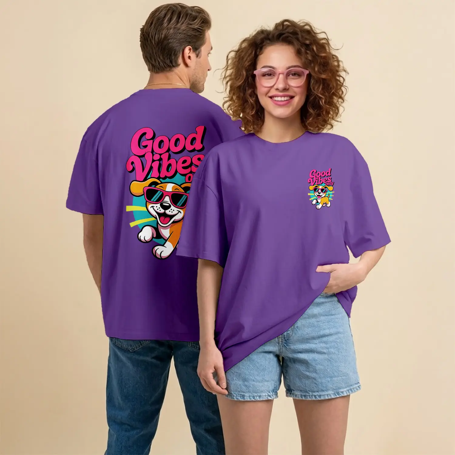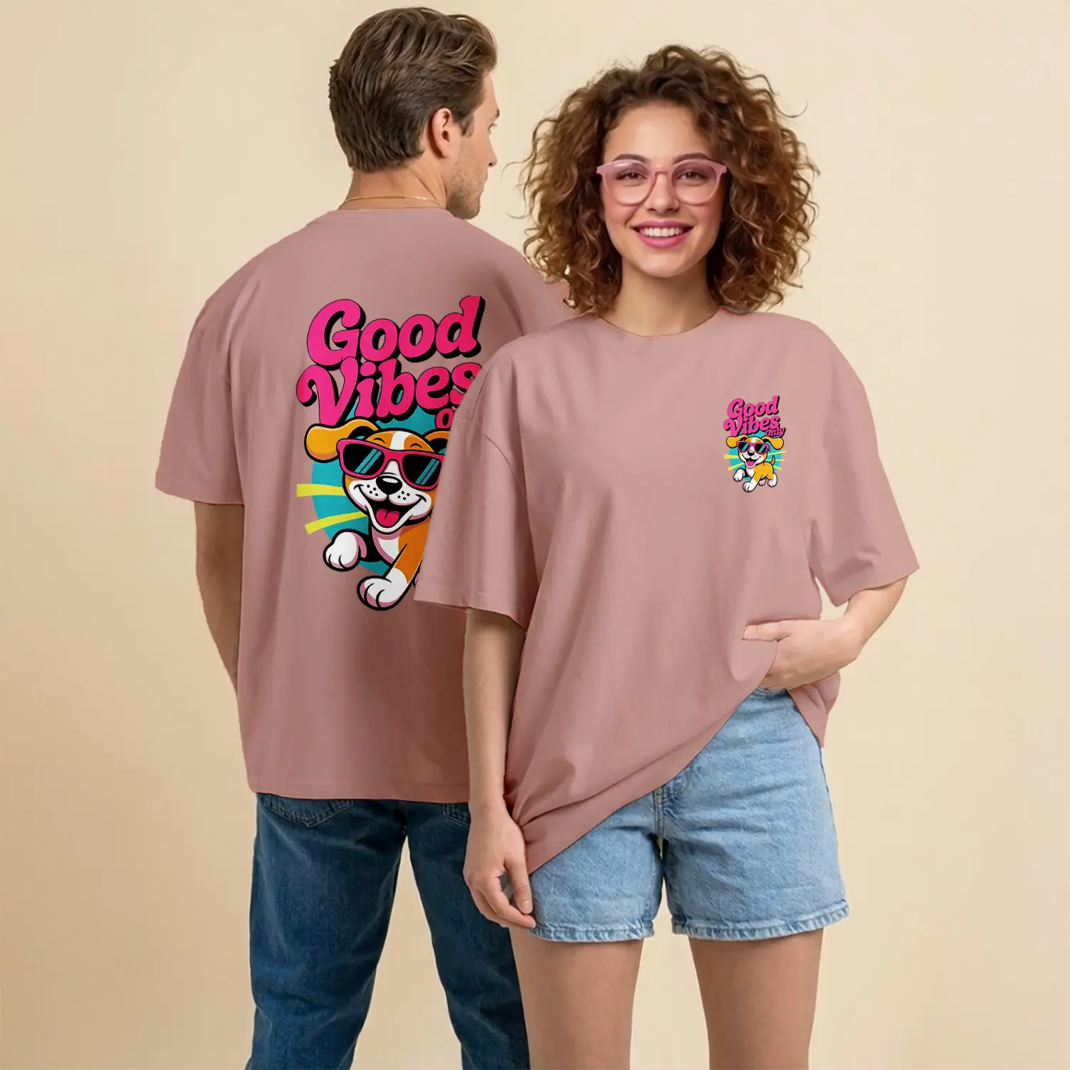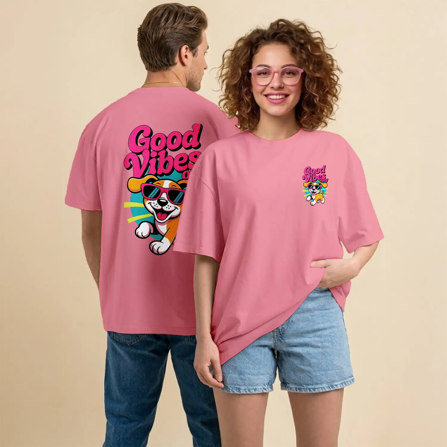 Good Vibes Only Güneş Gözlüklü Köpek Figürü Baskılı Unisex Tişört
