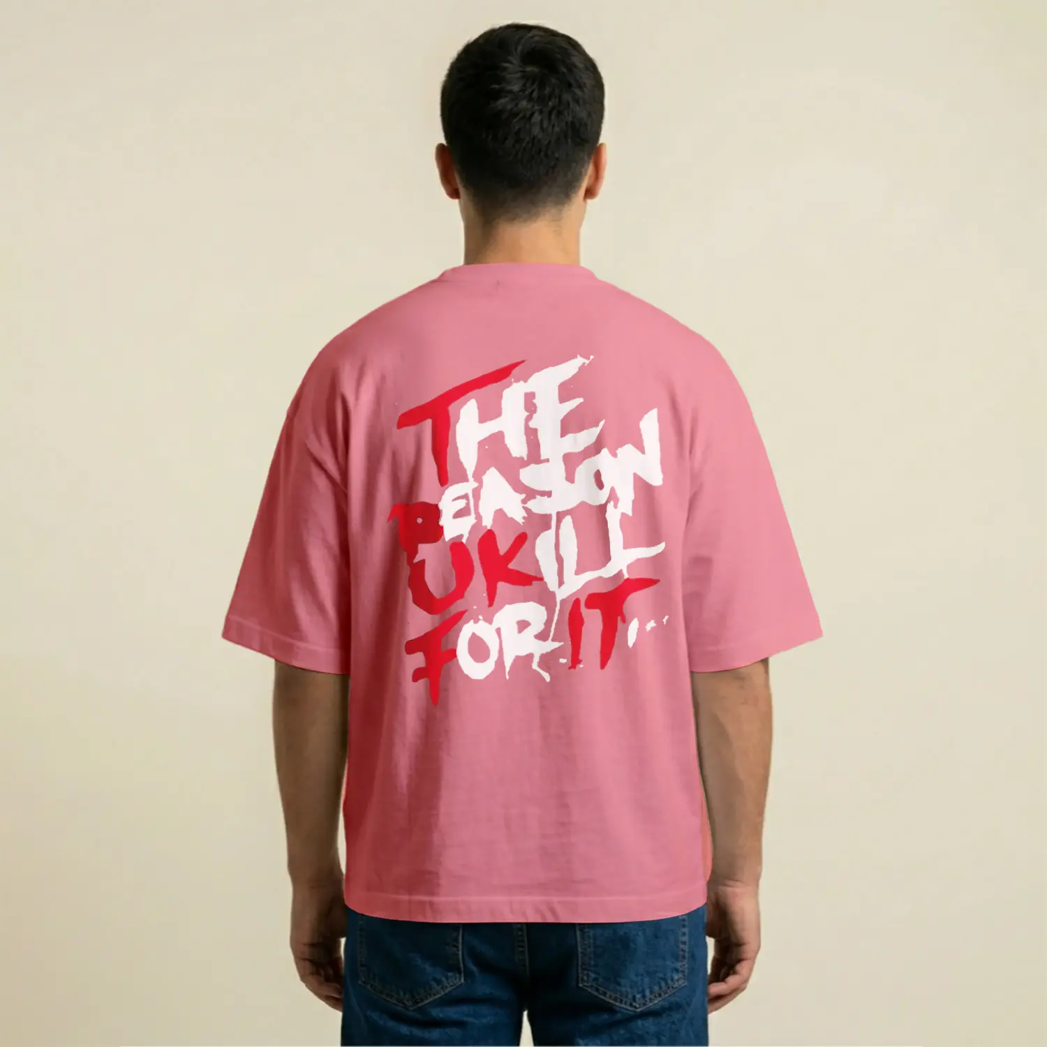 Grafik Yazılı Modern Oversize Batik Baskılı Erkek Tişört