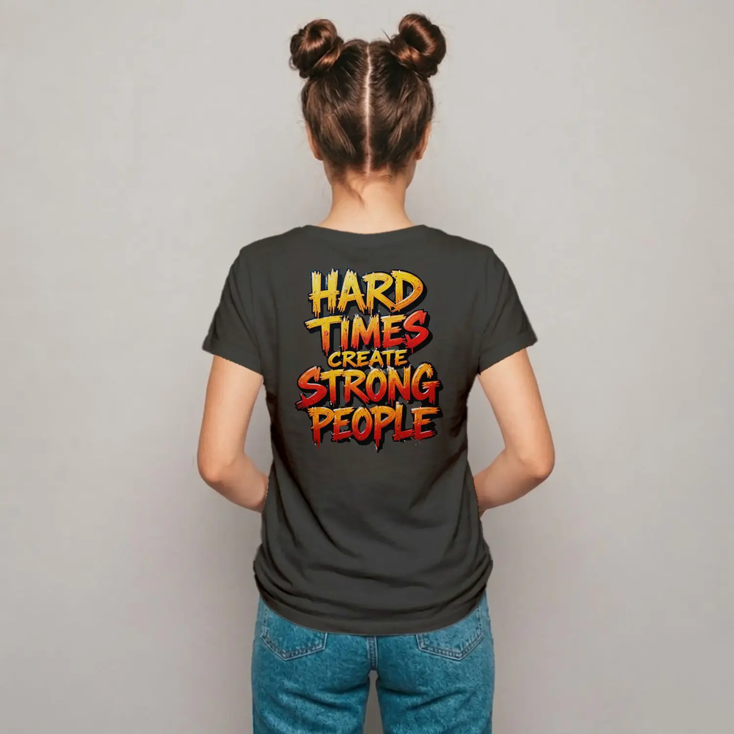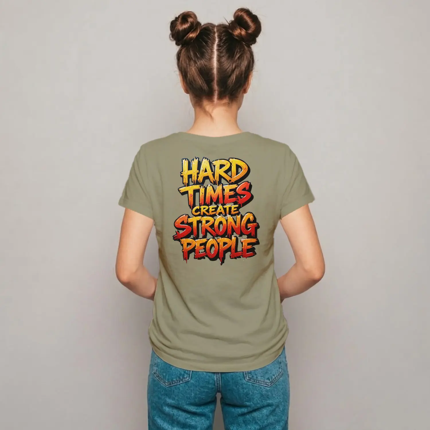Guclu Insan Mesajli Motivasyon Baskılı Kadın Tişört Haki 2 Tişörtü