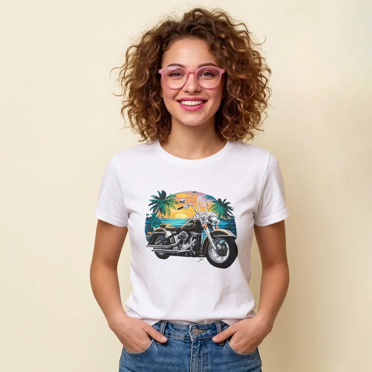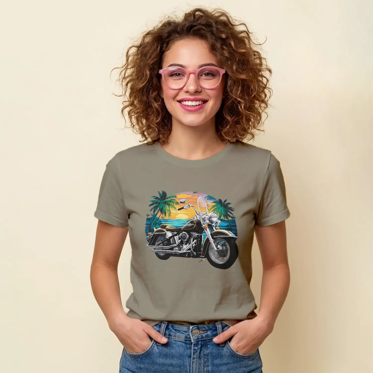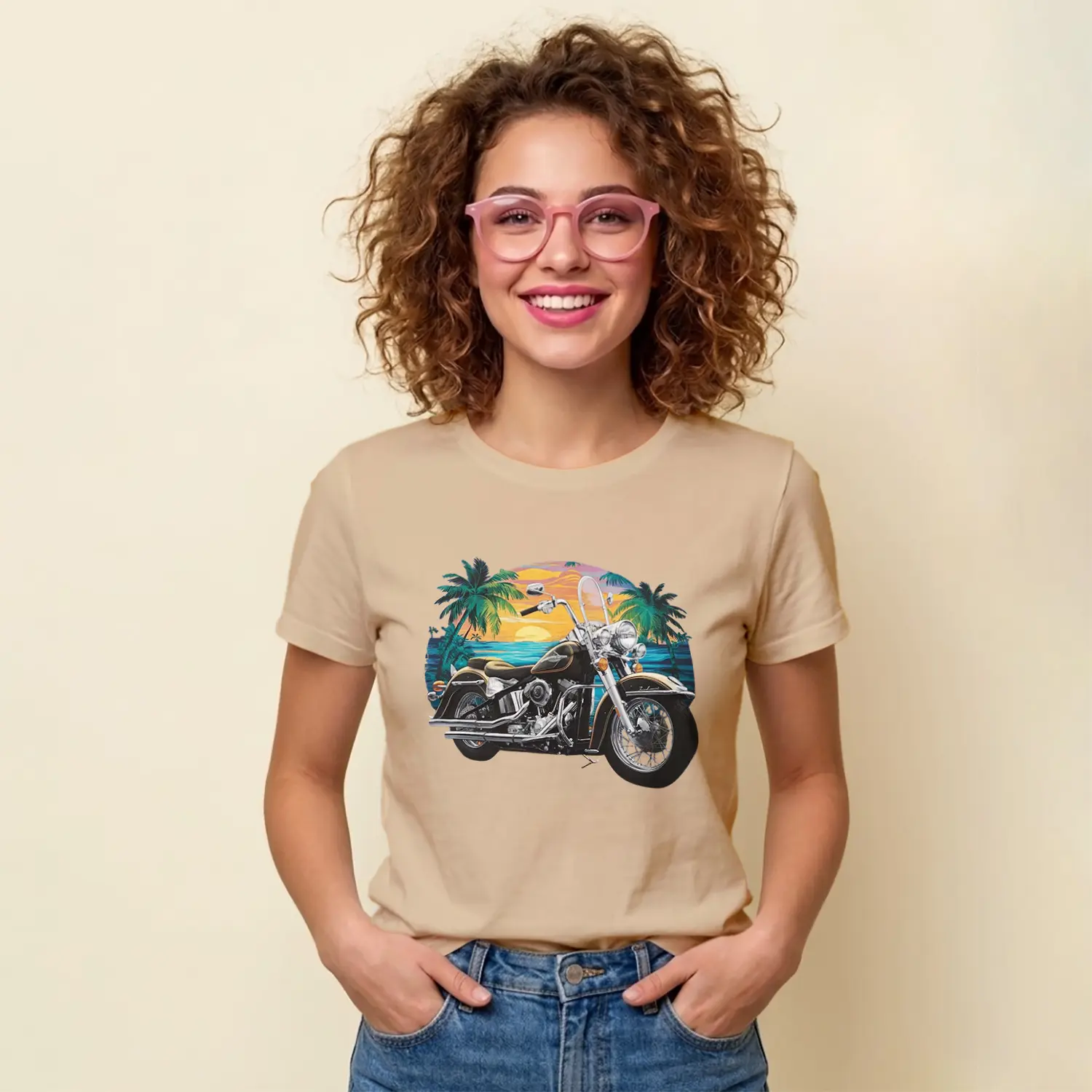 “Gün Batımı Palmiye Ve Motosiklet Baskılı Kadın Tişört” için yorum yapan ilk kişi siz olun