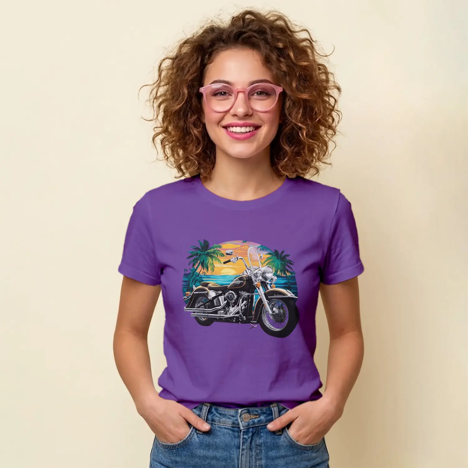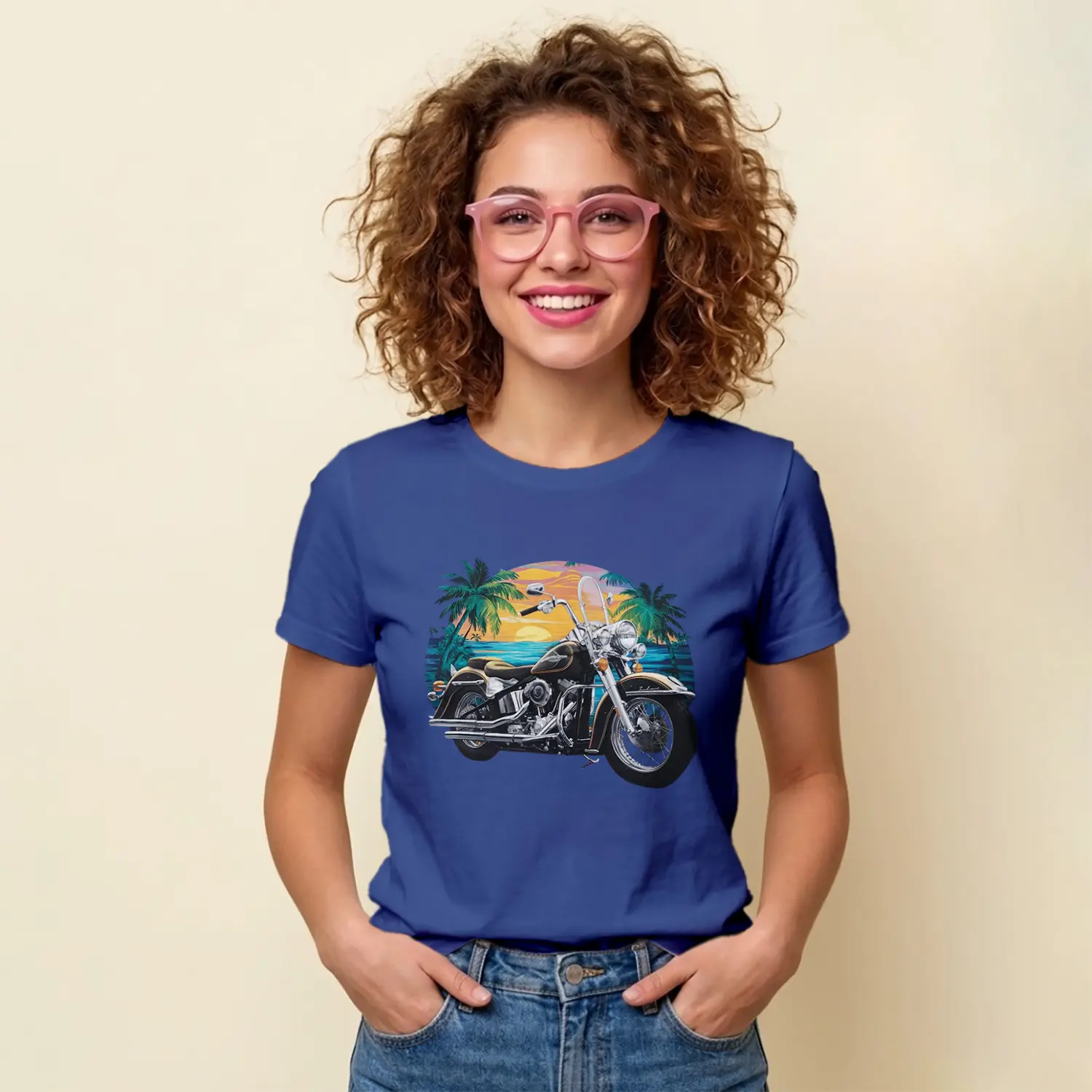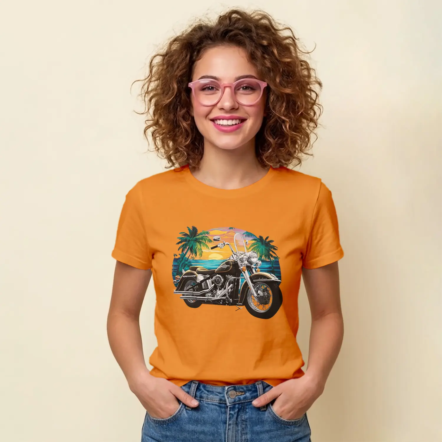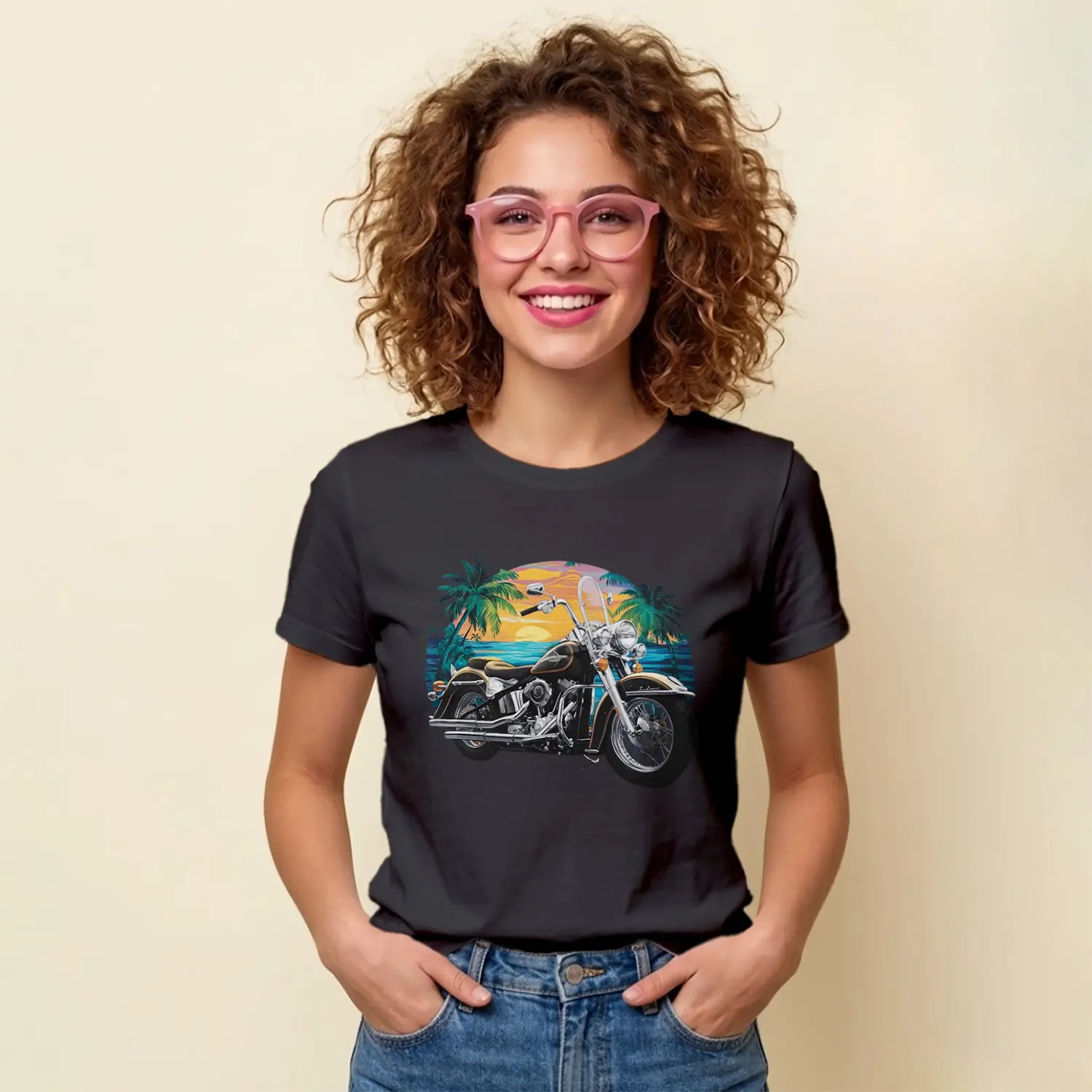 “Gün Batımı Palmiye Ve Motosiklet Baskılı Kadın Tişört” için yorum yapan ilk kişi siz olun