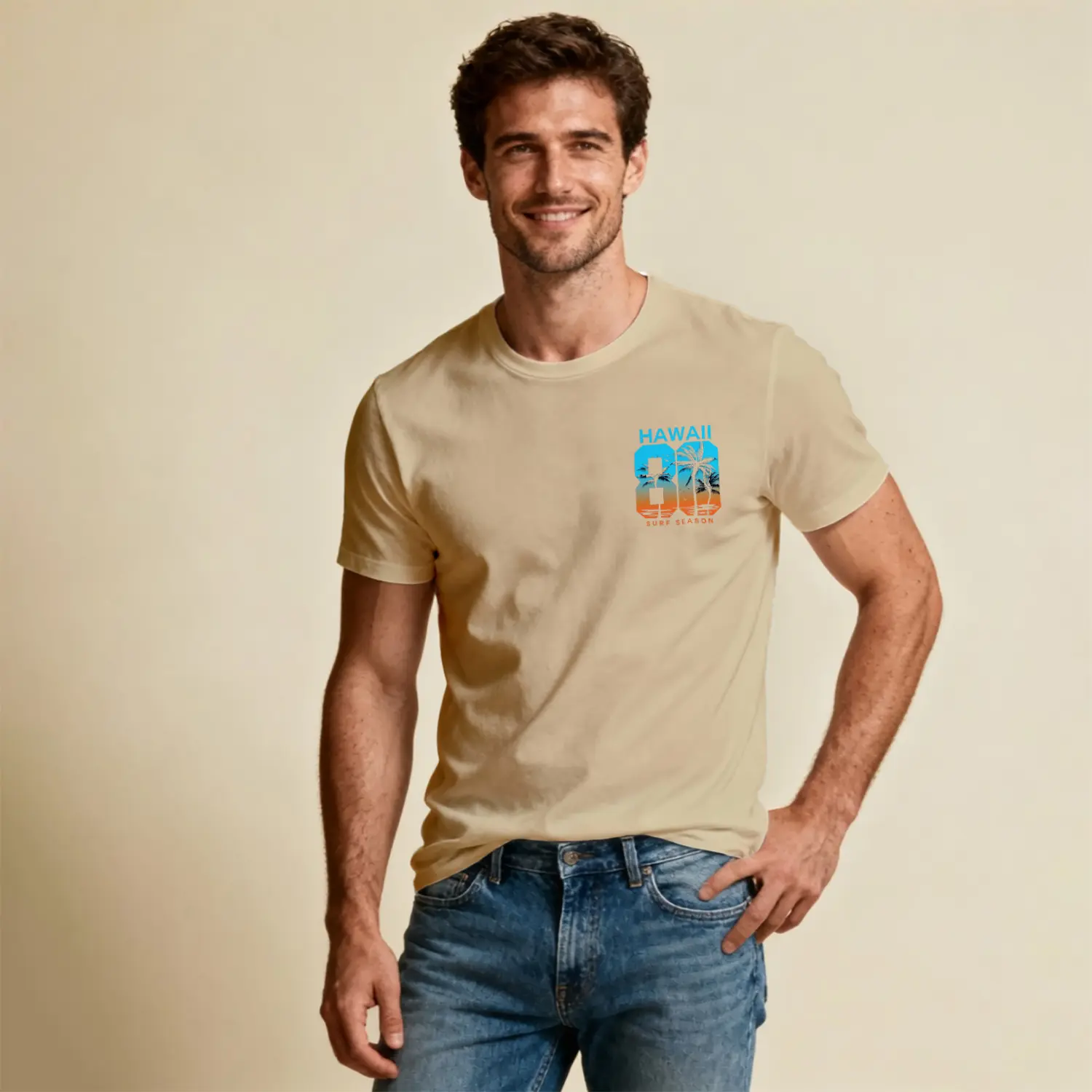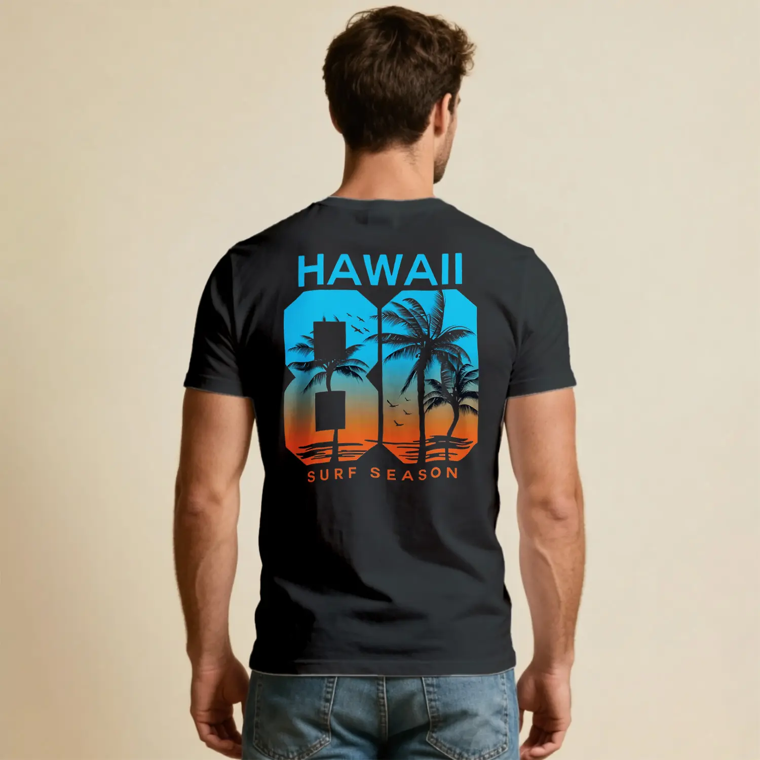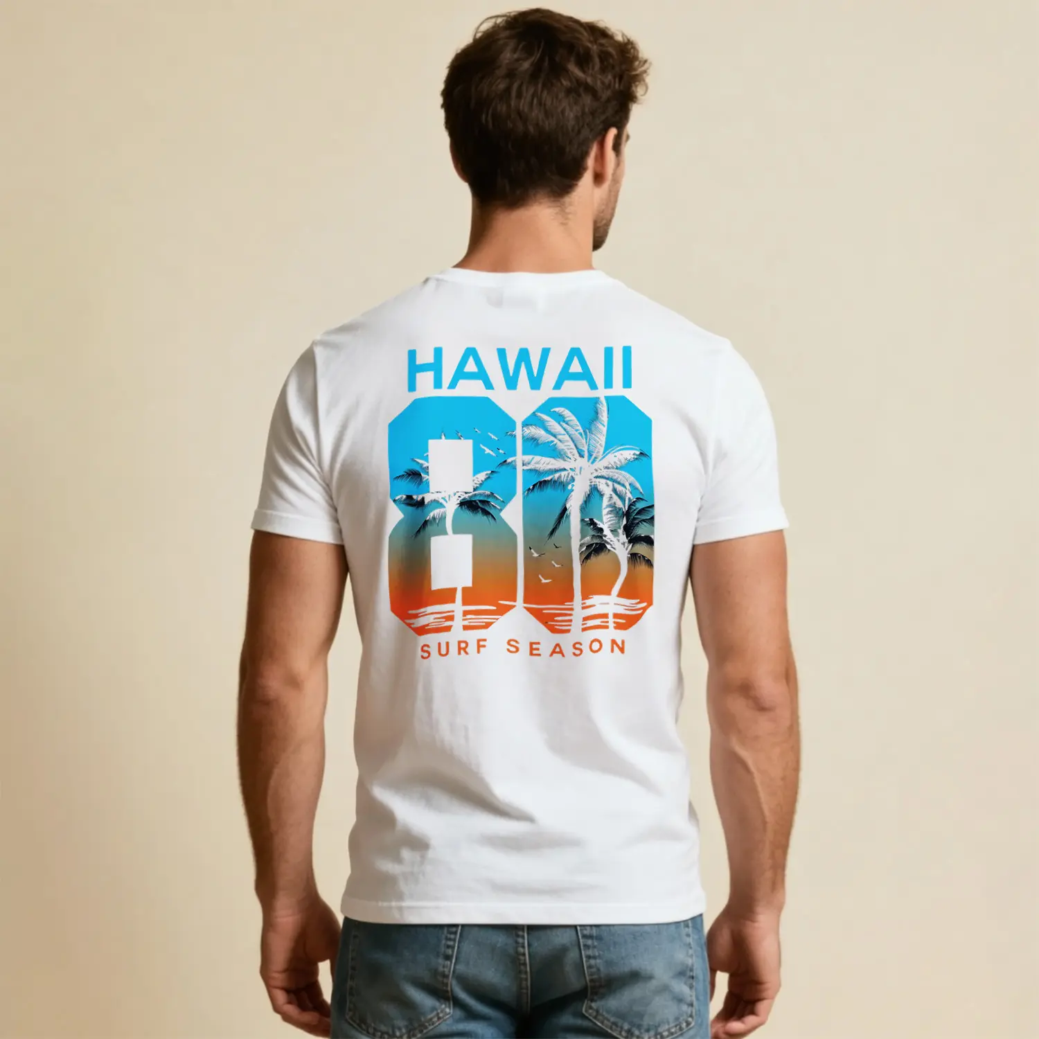 Hawaii Surf Season Palmiye Baskılı Erkek Tişört