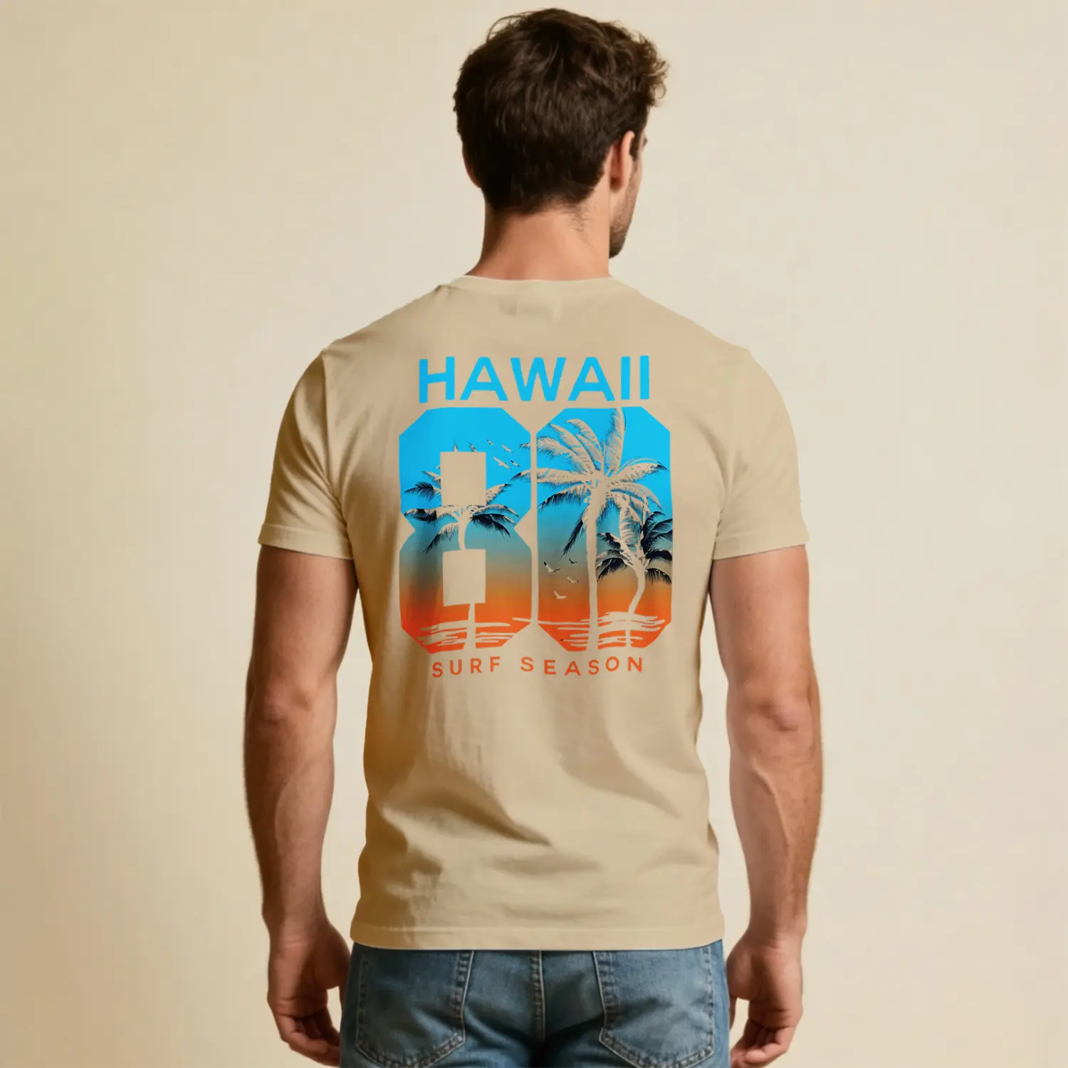 Hawaii Surf Season Palmiye Baskılı Erkek Tişört için 7 değerlendirme