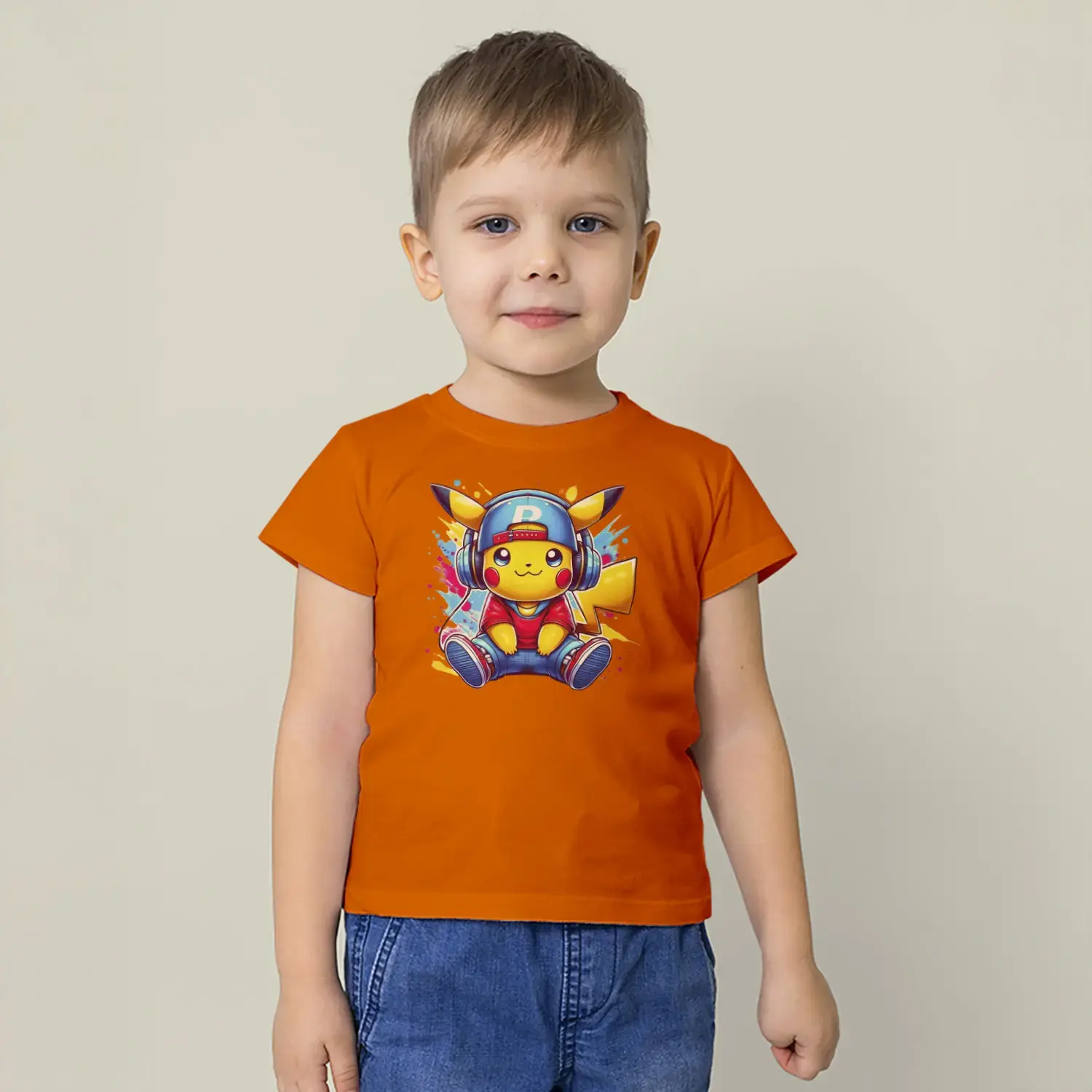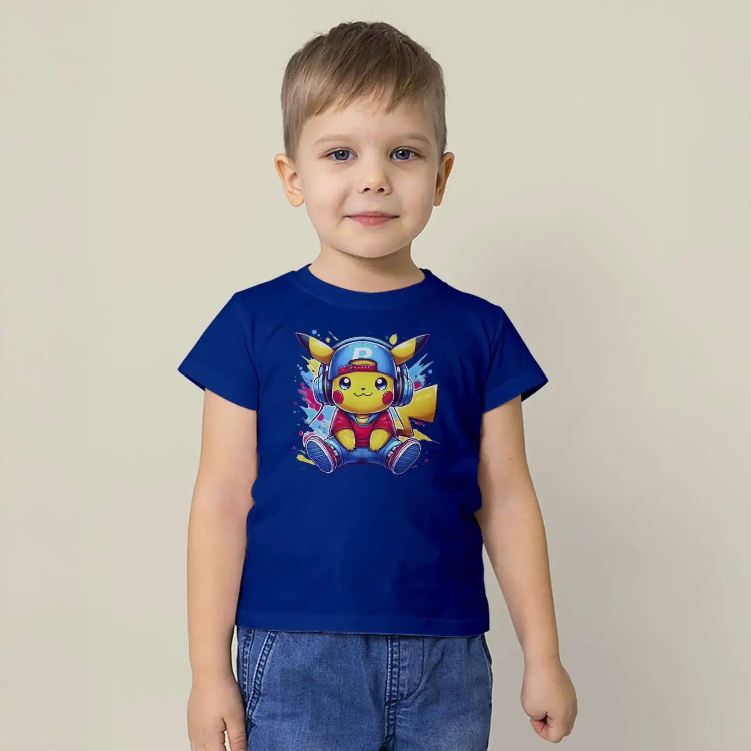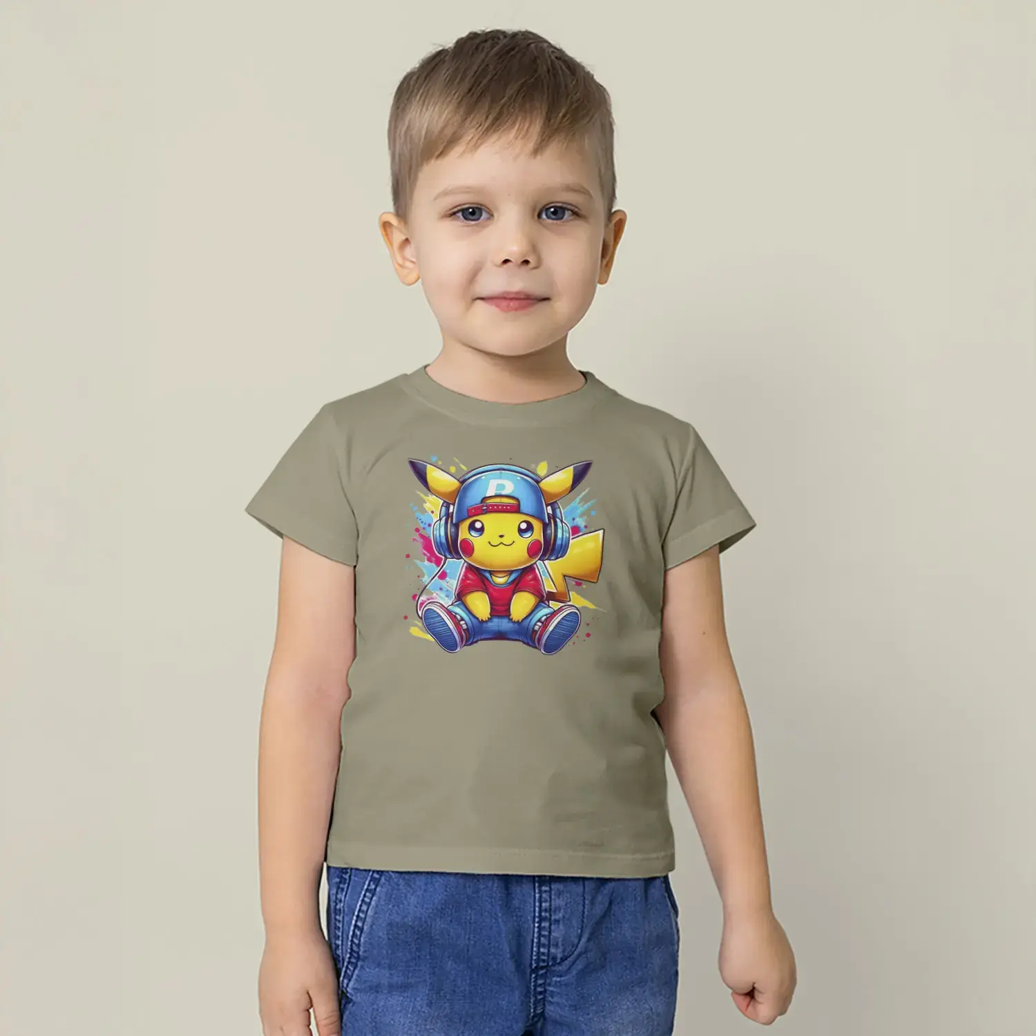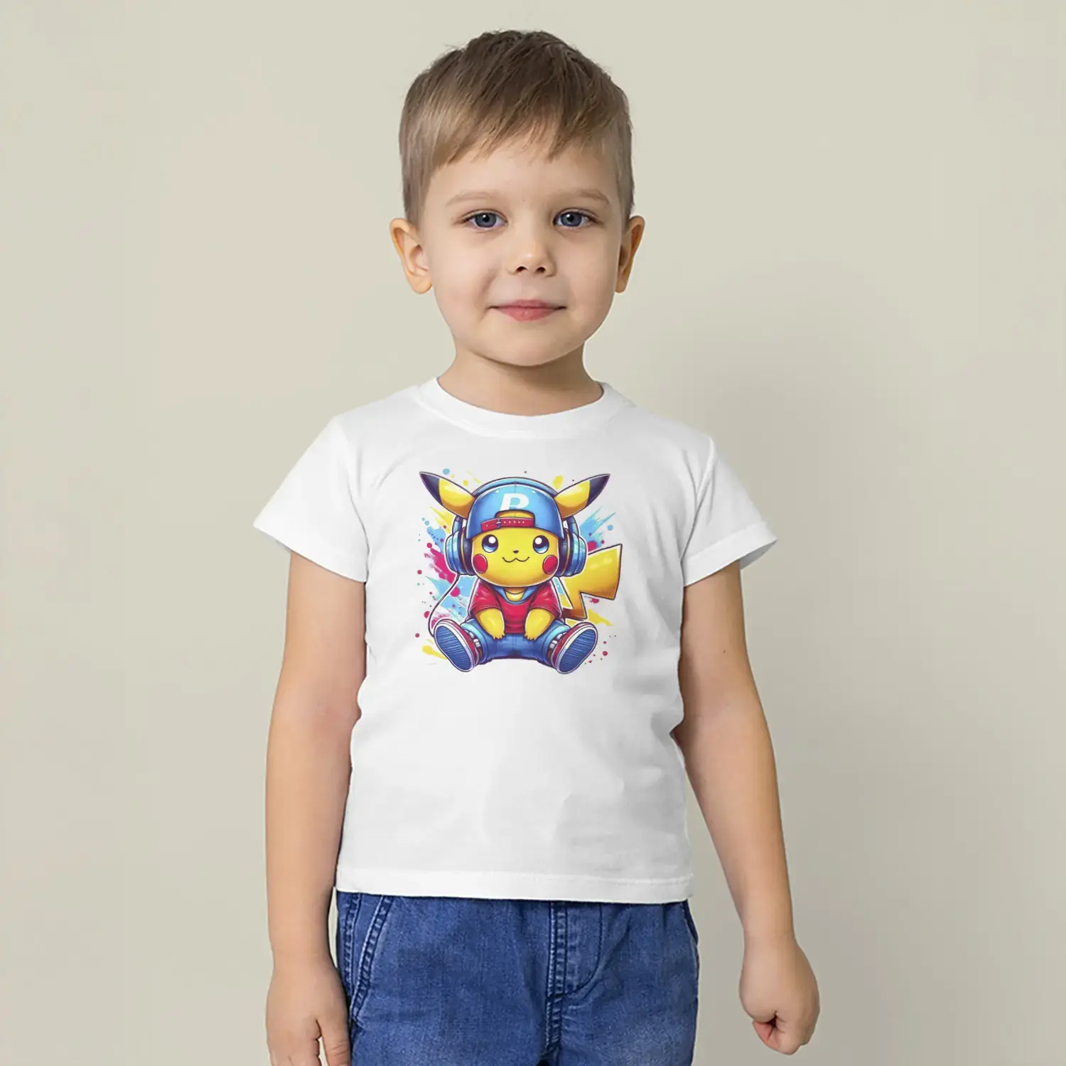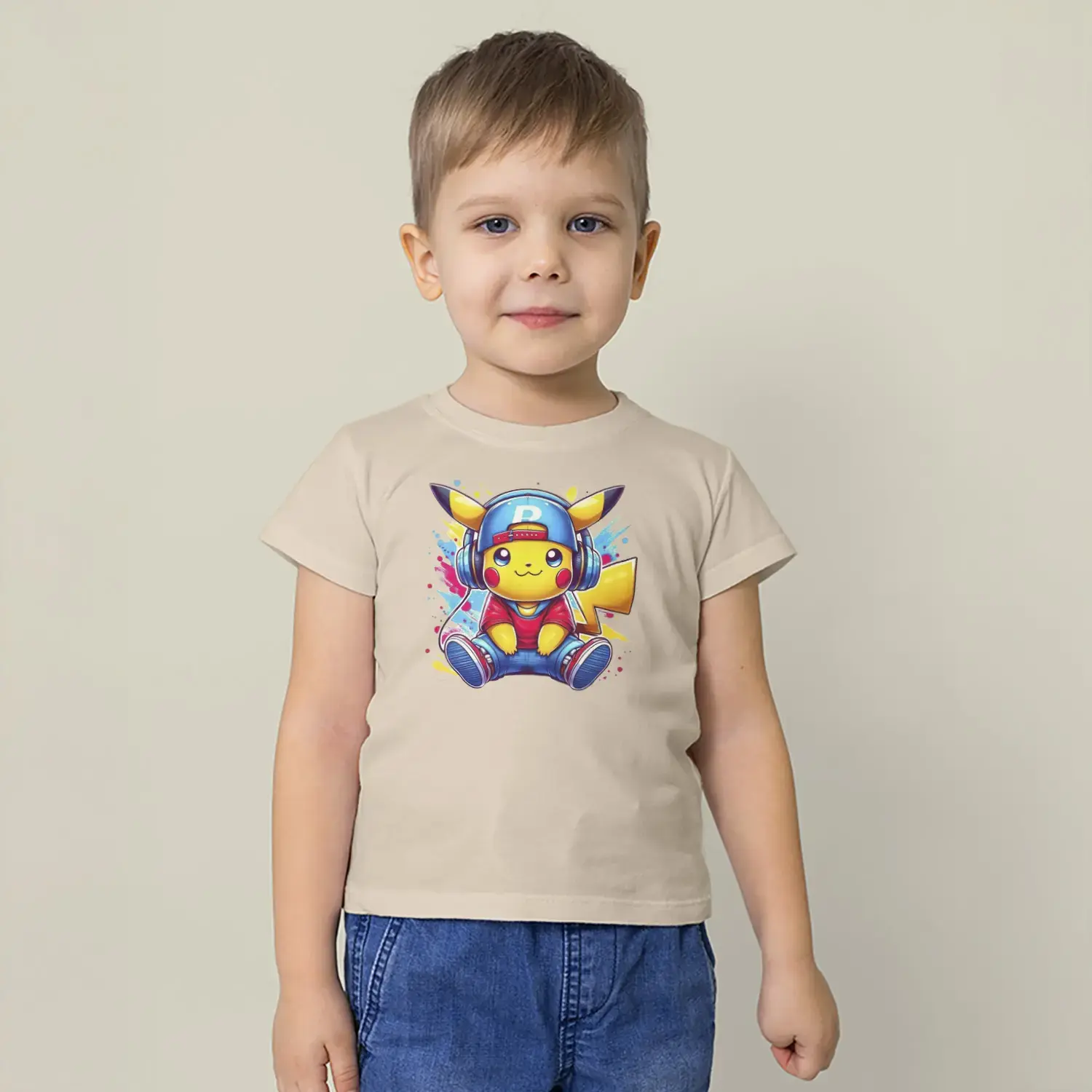 Hip Hop Pikachu Tarzı Elektrik Karakter Baskılı Erkek Çocuk Tişört