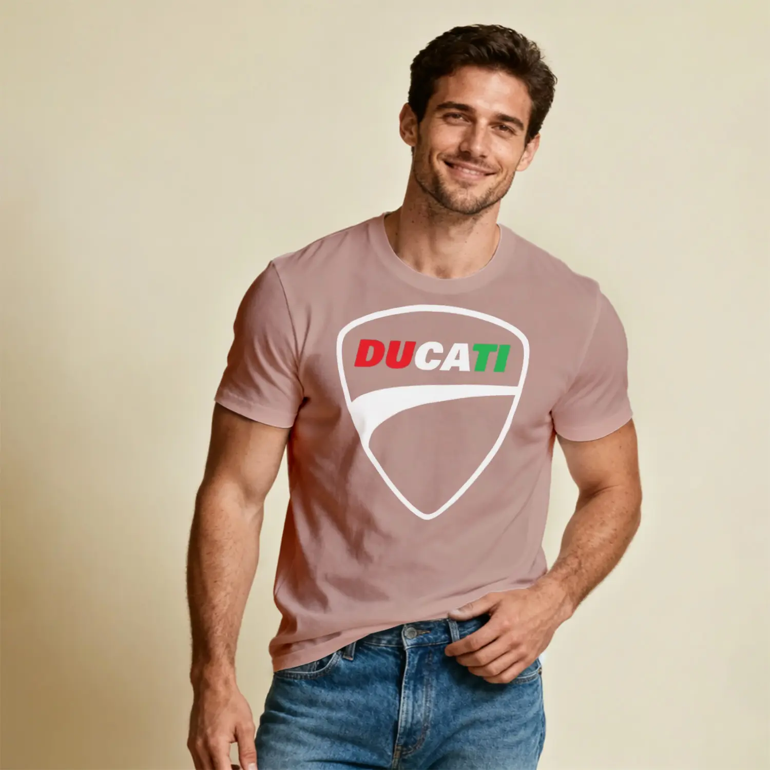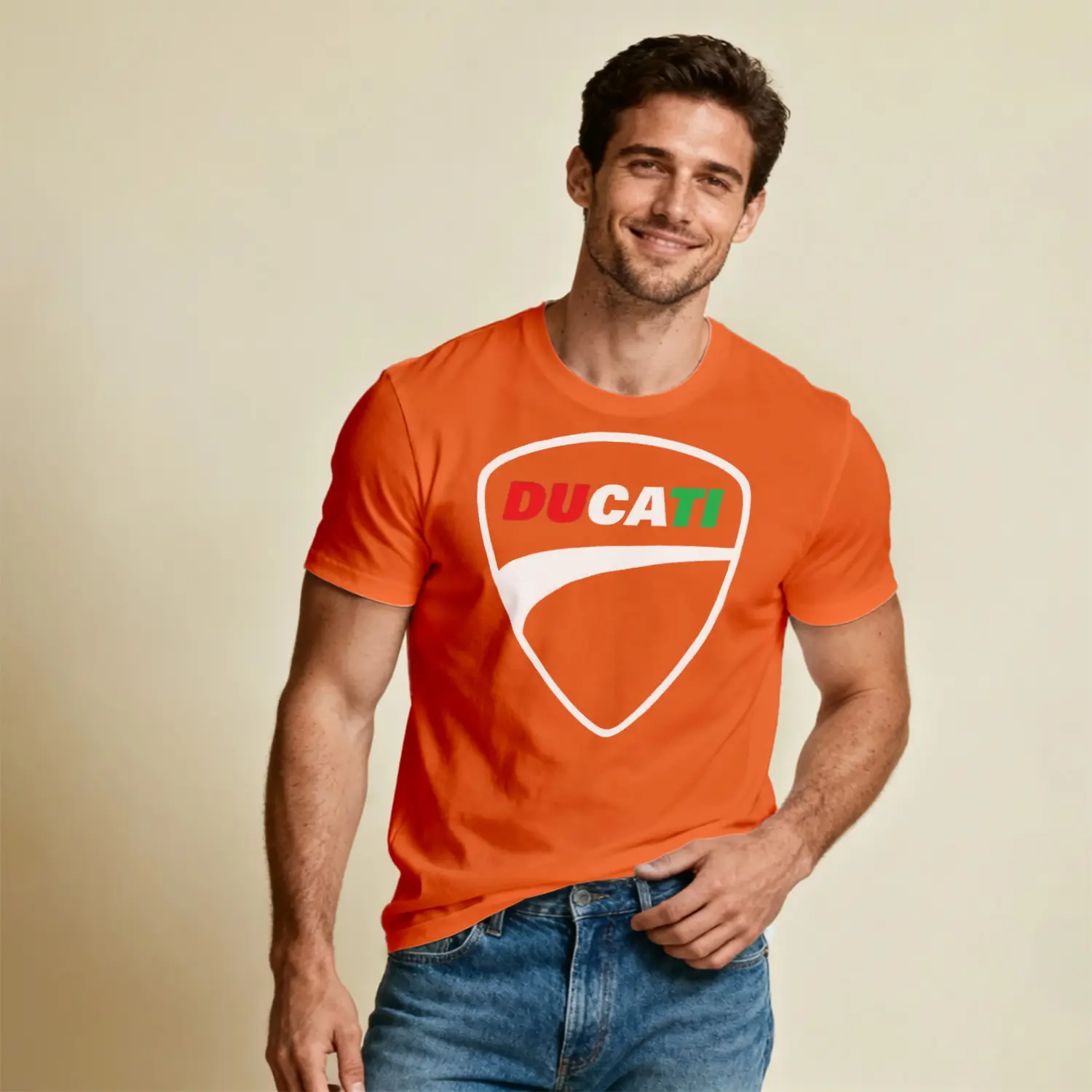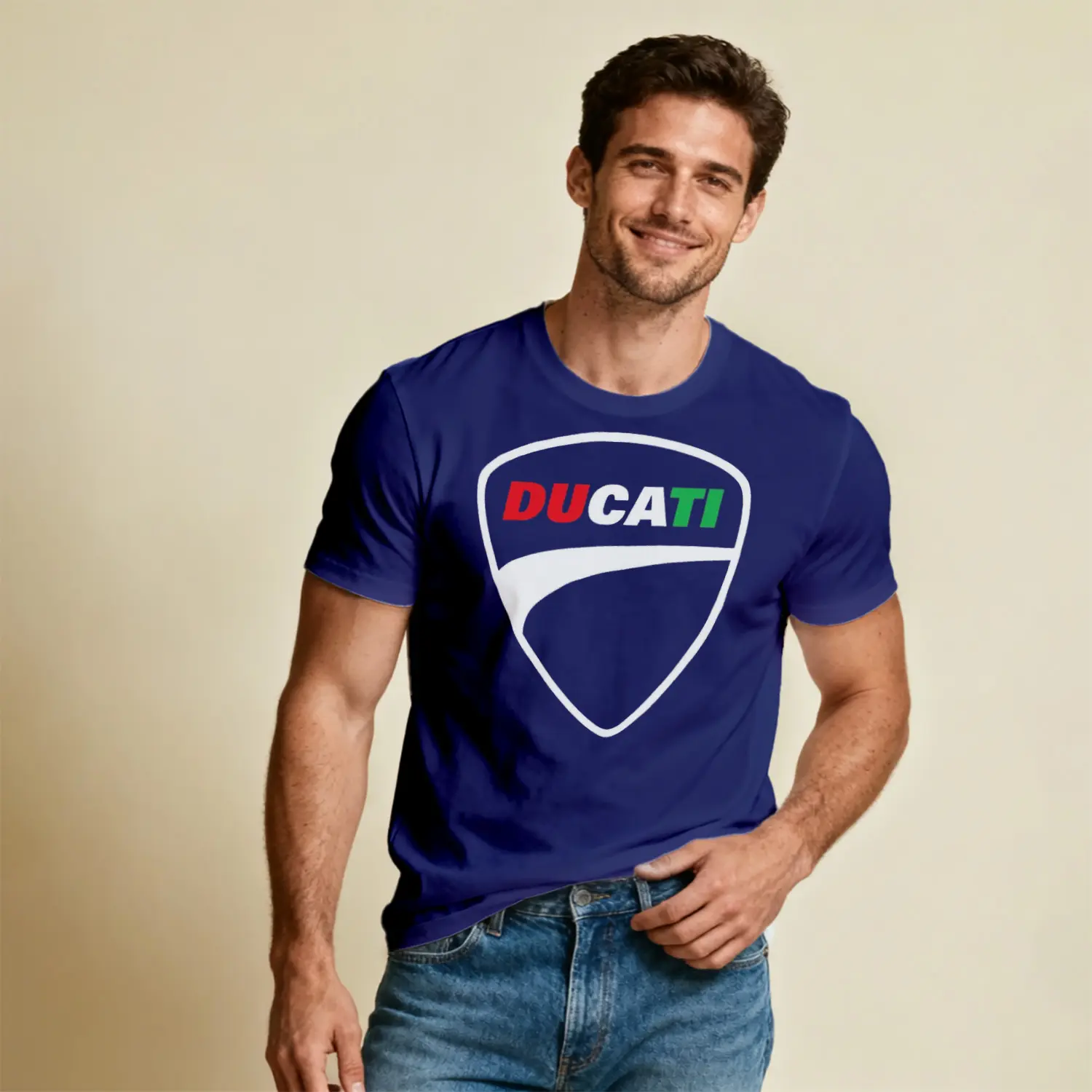 İtalyan Motosiklet Markası Kalkan Logo Renkli Baskılı Erkek Tişört için 10 değerlendirme