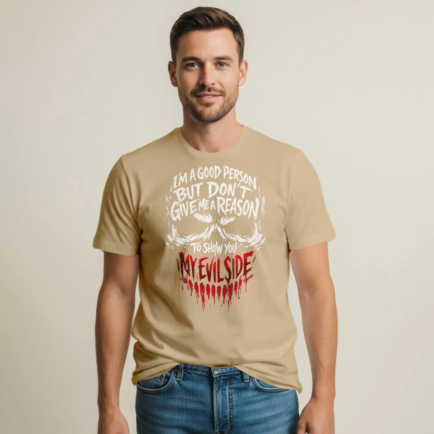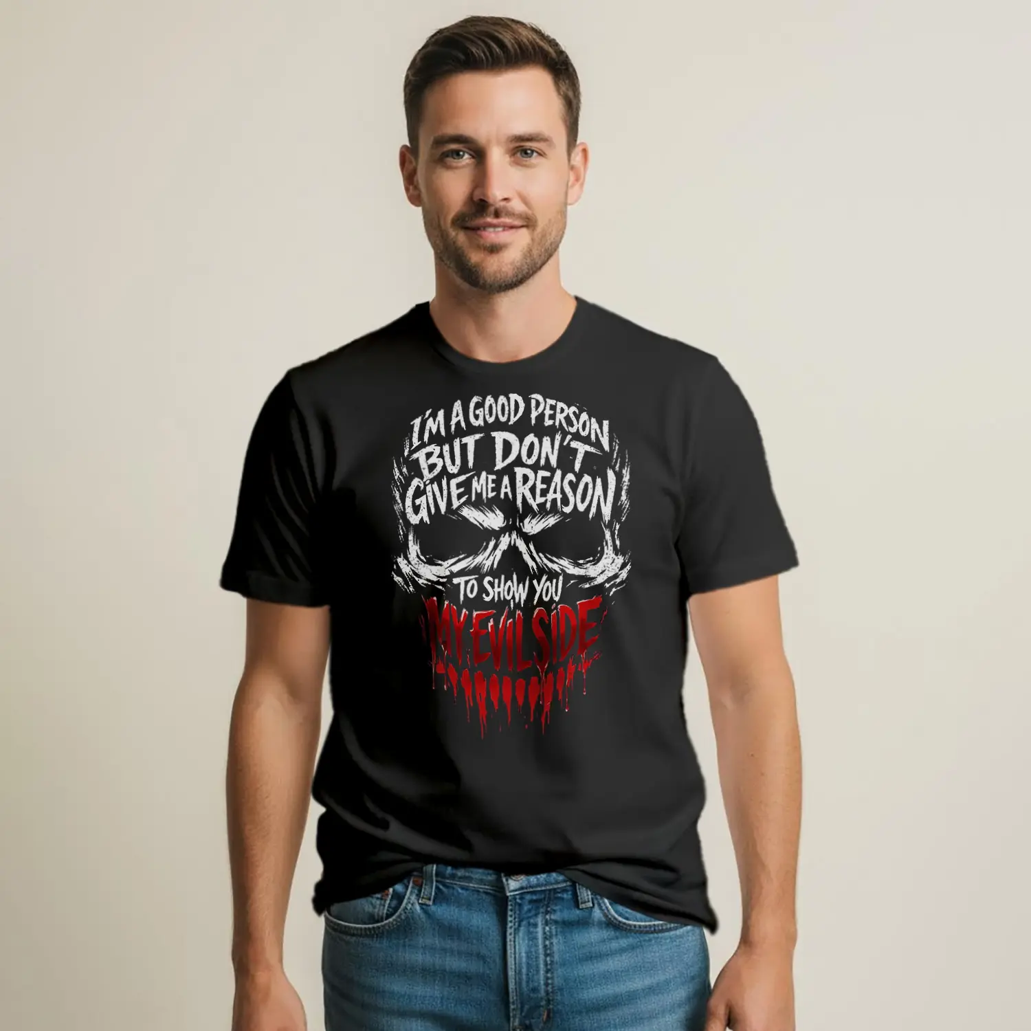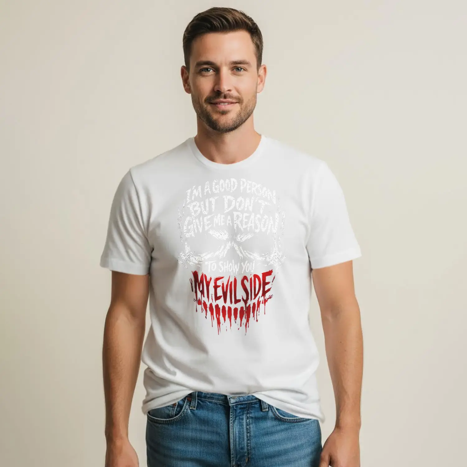 Kafatası Sembolü Korkutucu Yazılı Baskılı Erkek Tişört