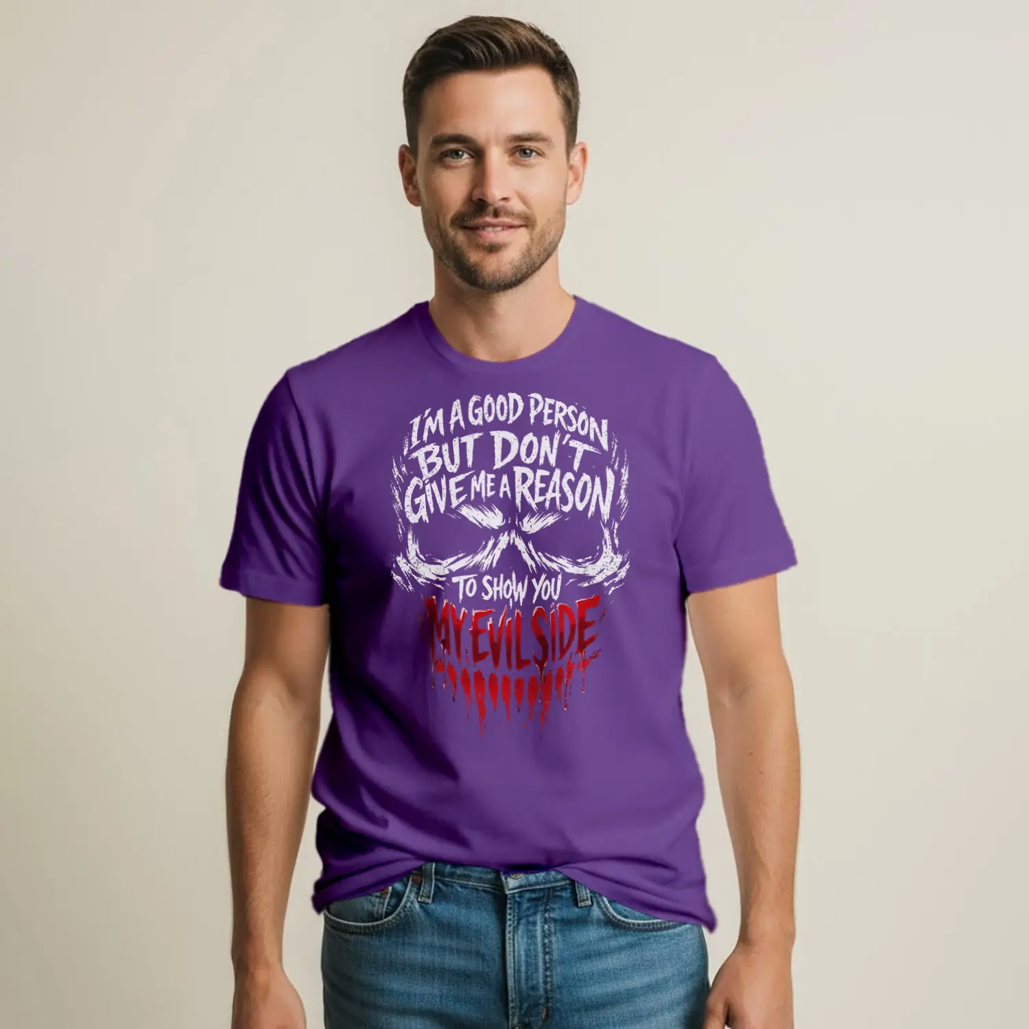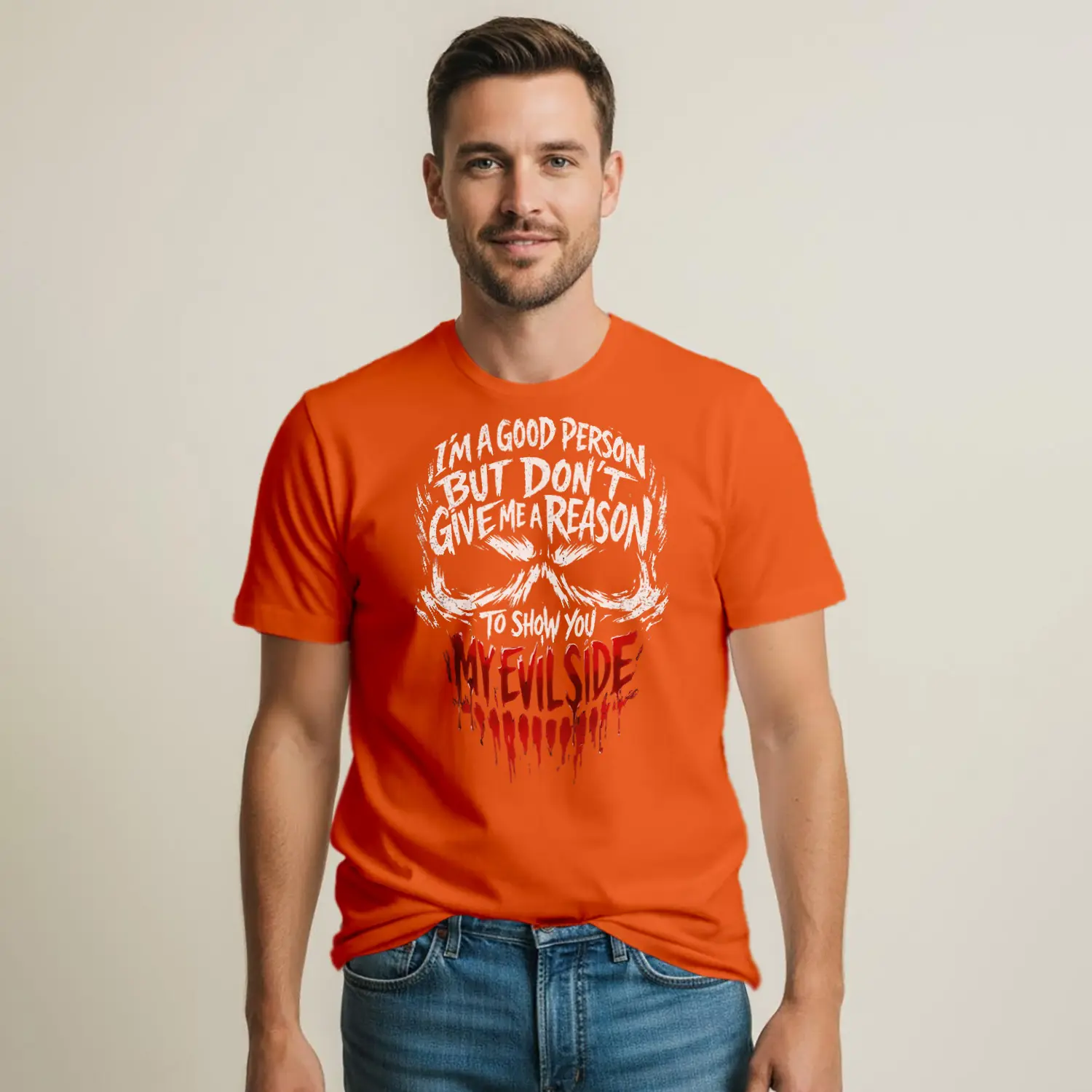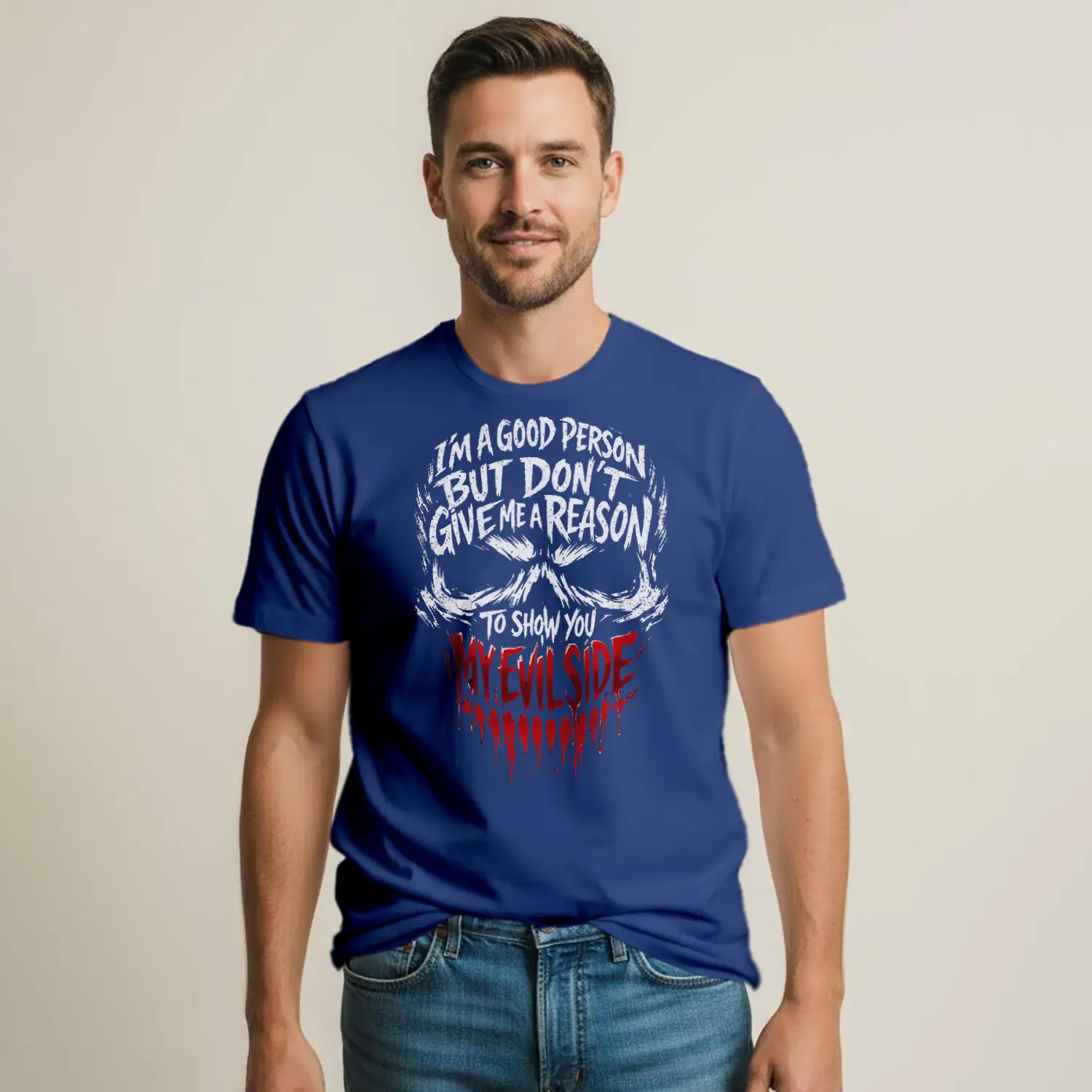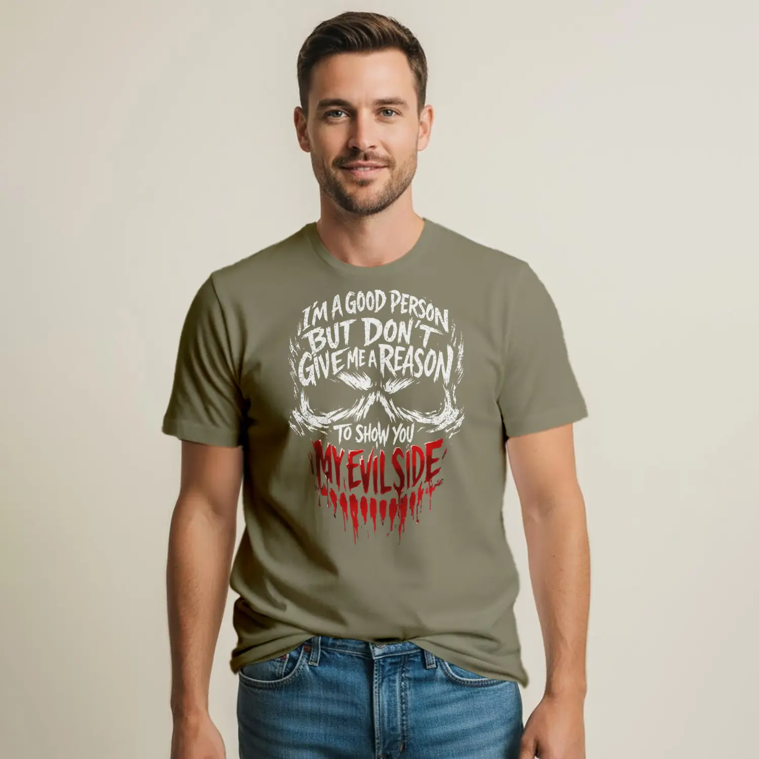 Kafatası Sembolü Korkutucu Yazılı Baskılı Erkek Tişört
