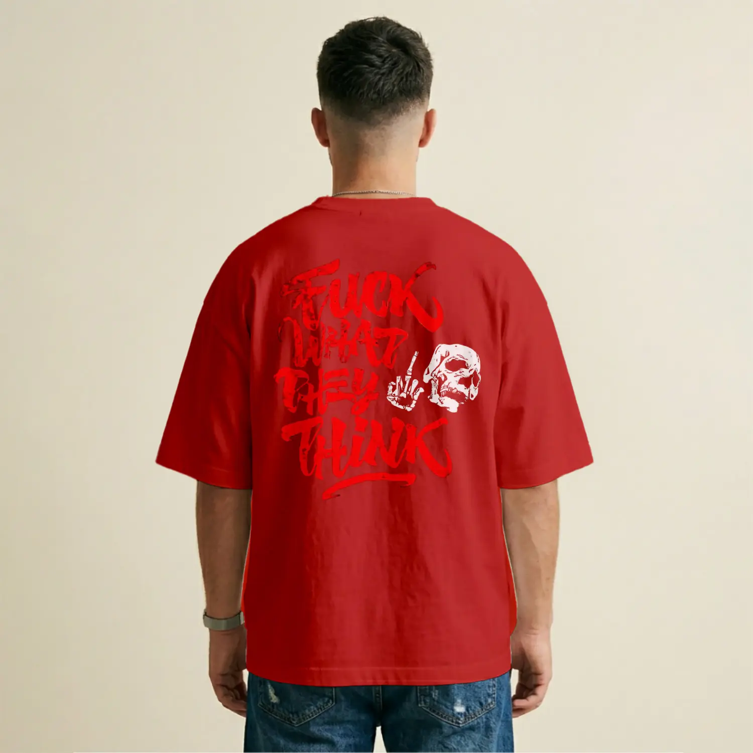 Kafatası Ve Yazı Desenli Rahat Kesim Baskılı Erkek Tişört