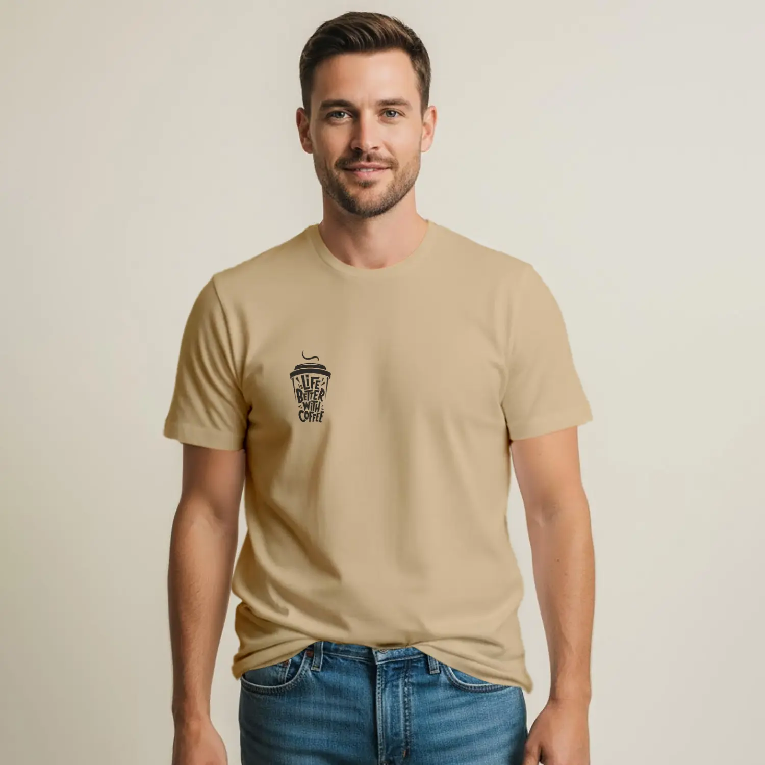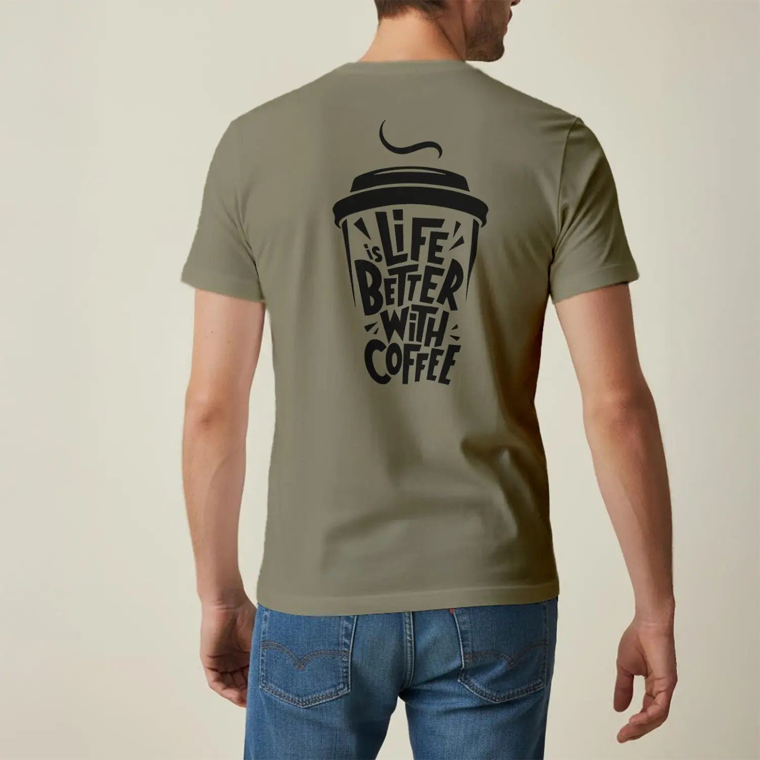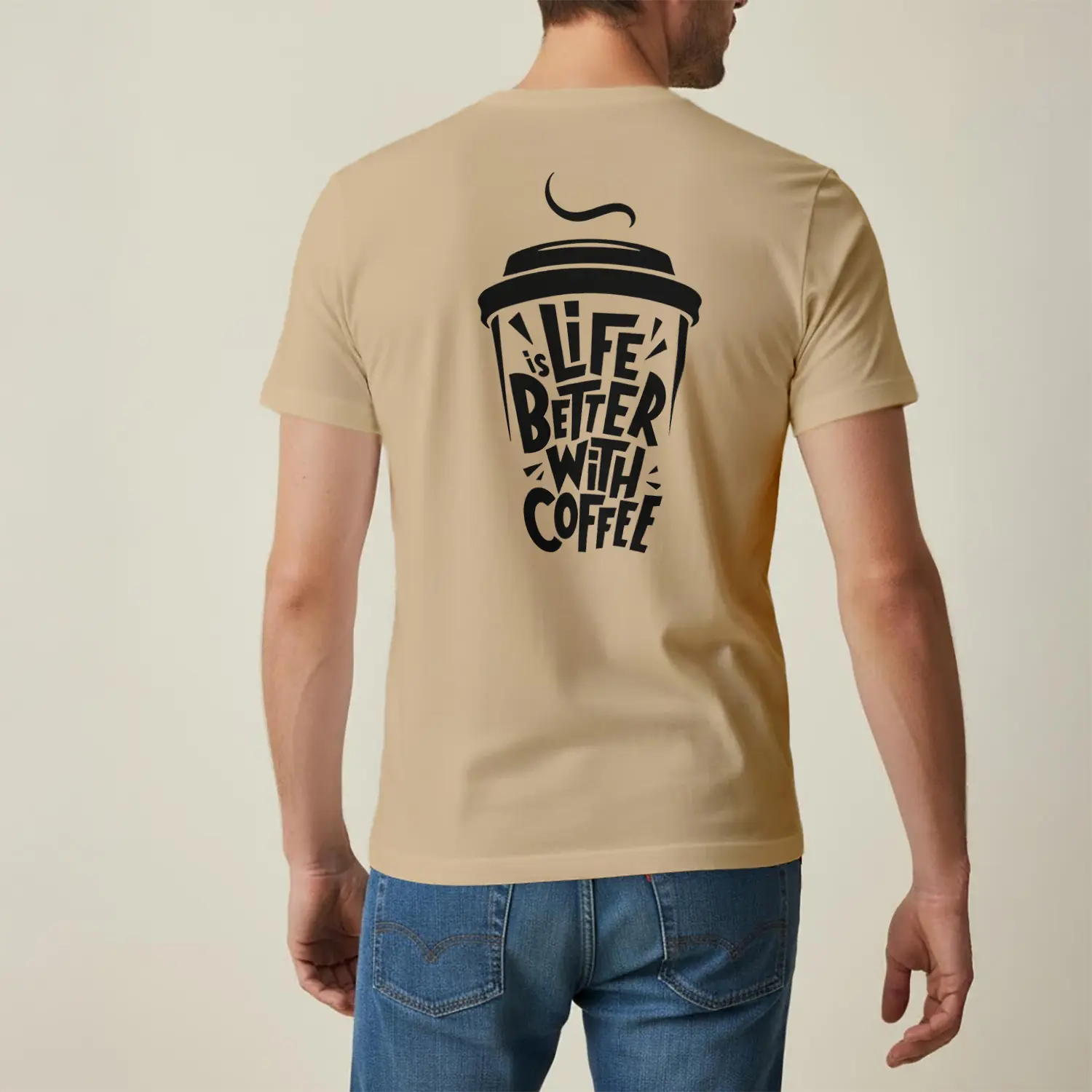 Kahve Ve Hayat Temalı Spor Baskılı Erkek Tişört
