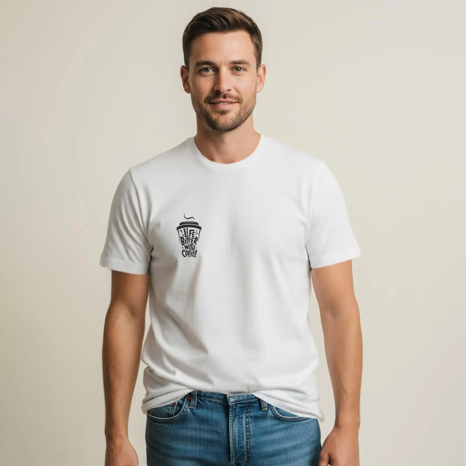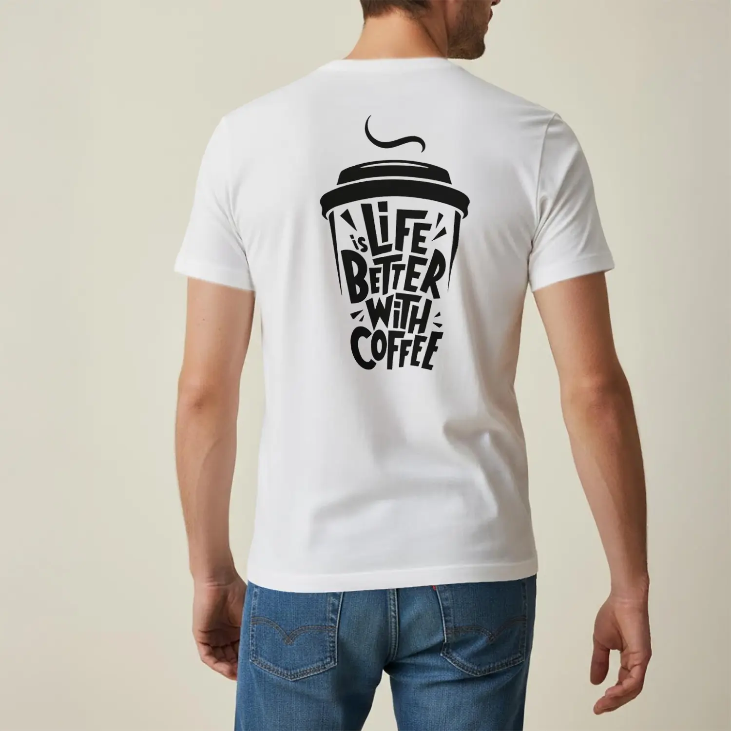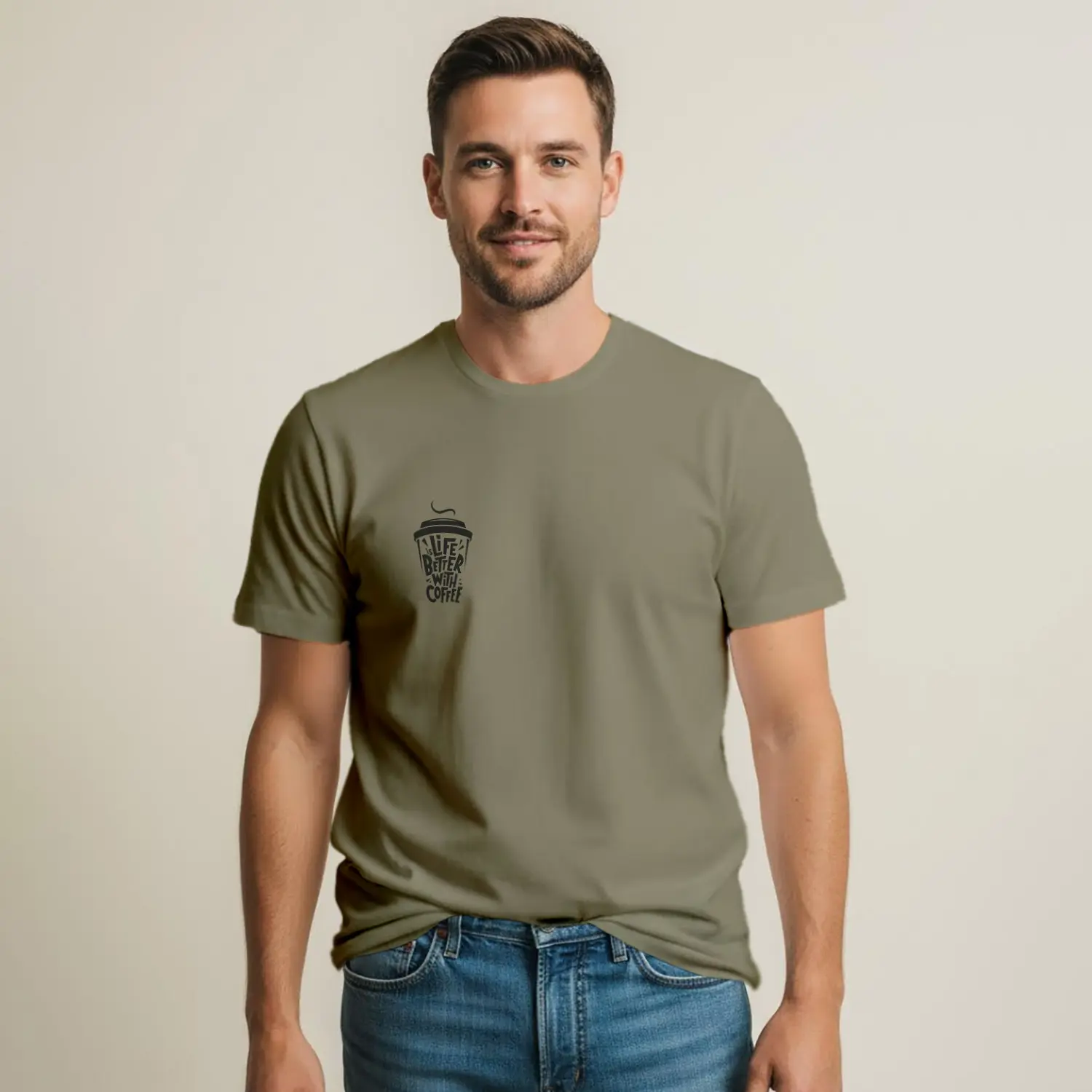 Kahve Ve Hayat Temalı Spor Baskılı Erkek Tişört