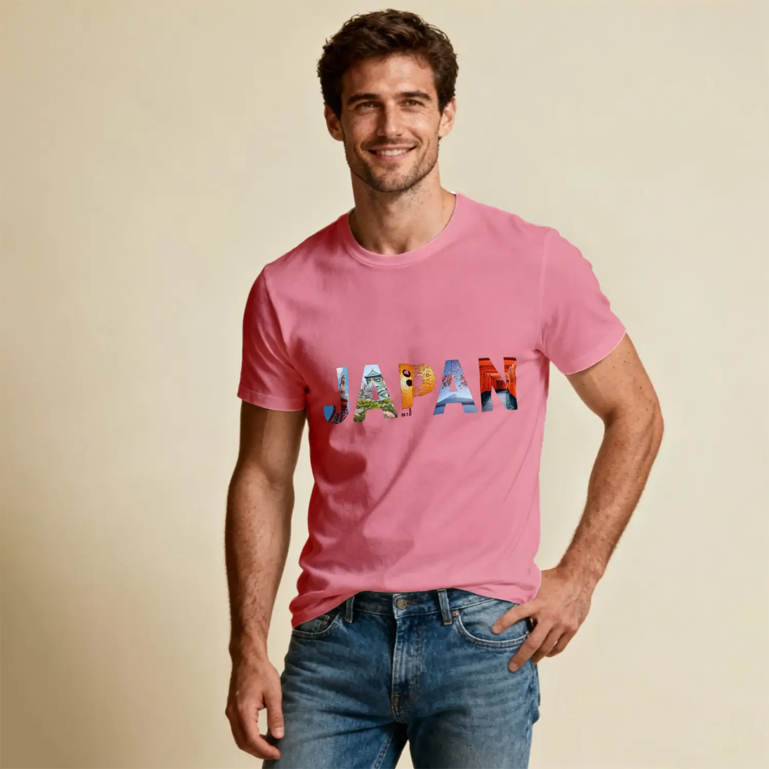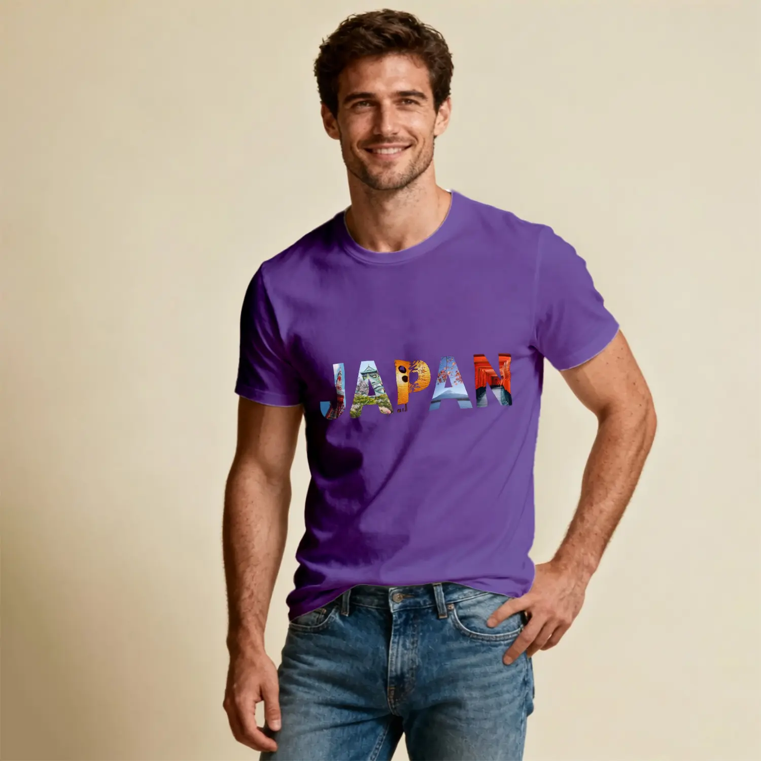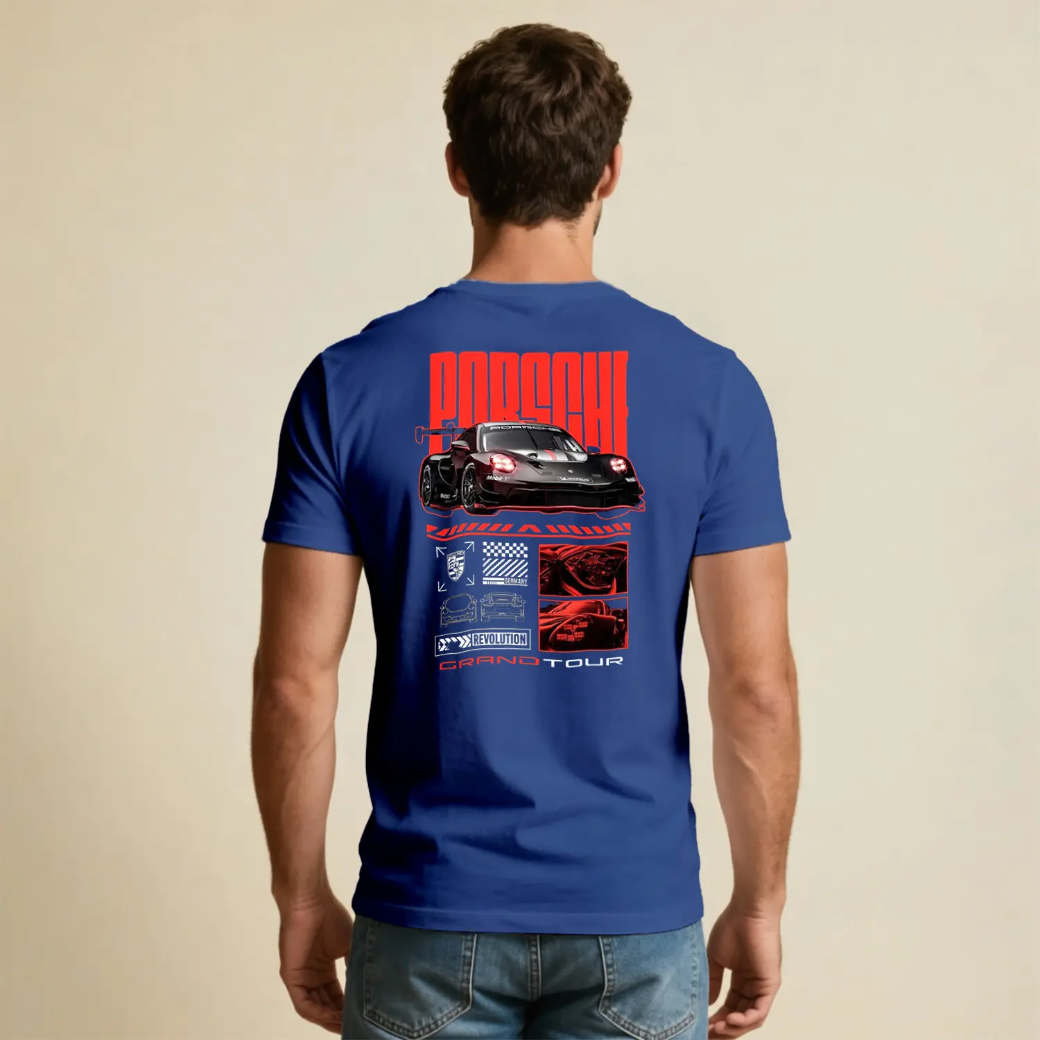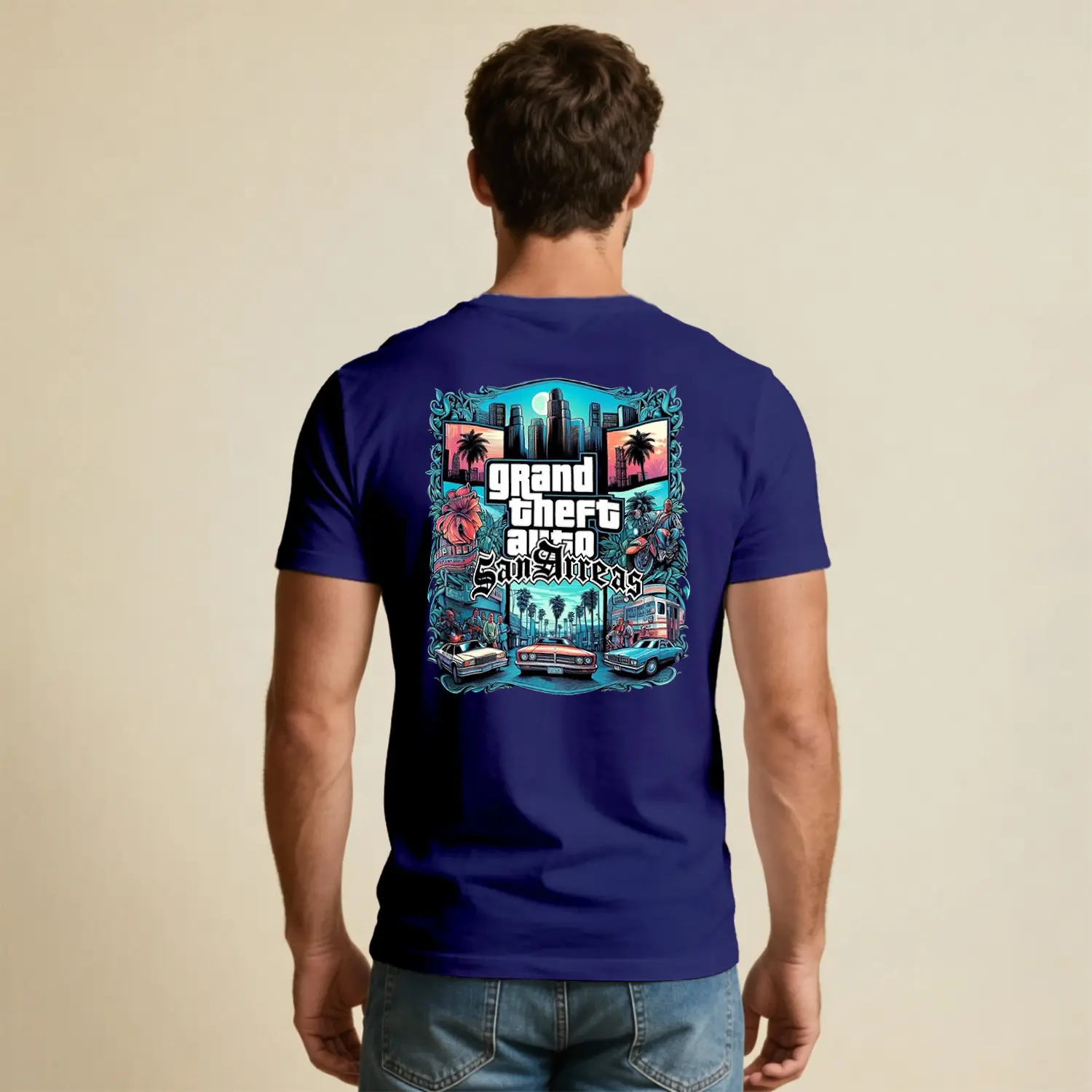 Klasik Araba ve Şehir Temalı Baskılı Erkek Tişört