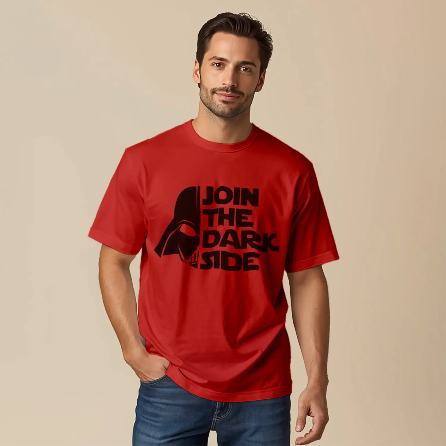 Karanlık Stil Kırmızı Yazılı Baskılı Erkek Tişört