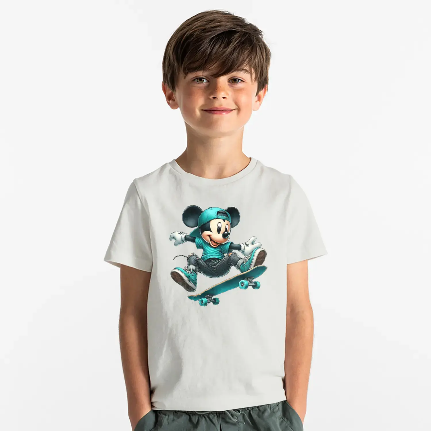 Kaykaycı Sevimli Fare Baskılı Erkek Çocuk Tişört