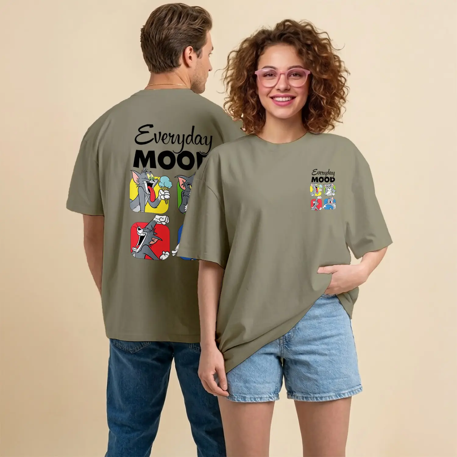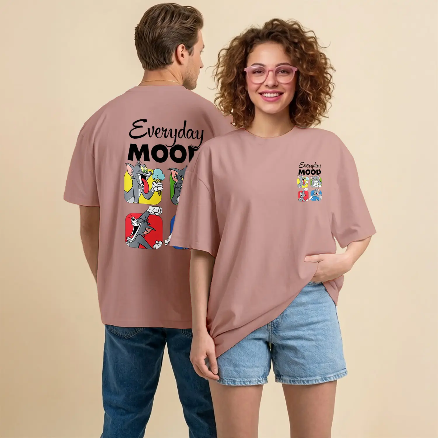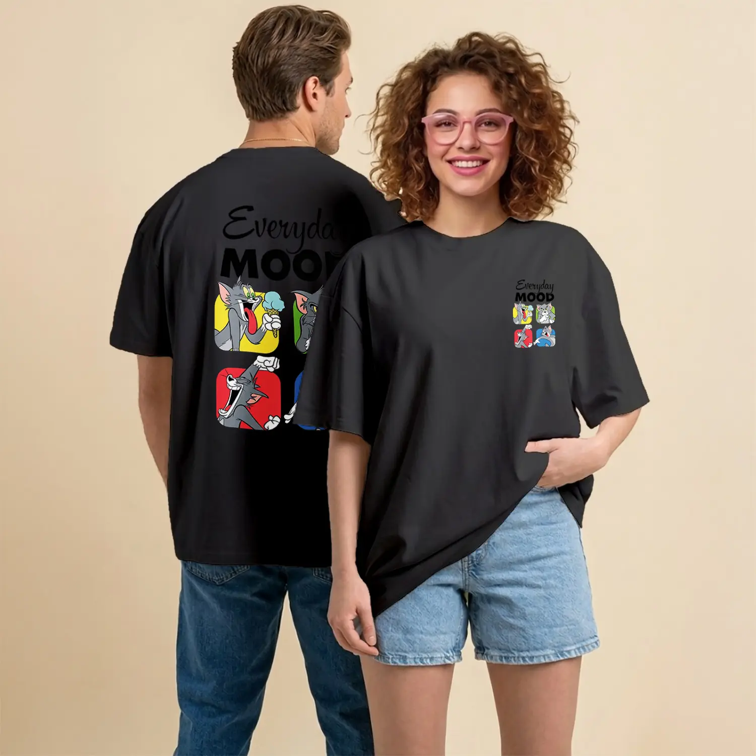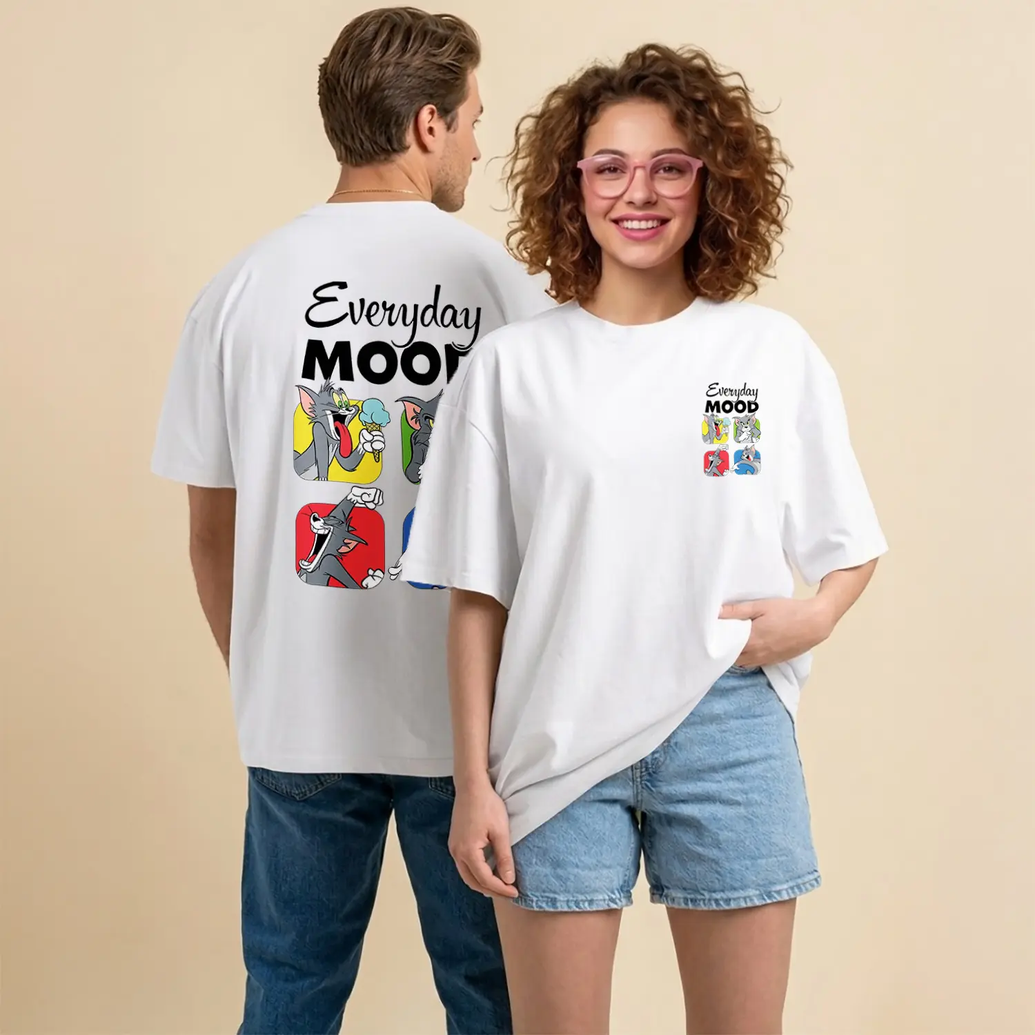 Kedi ve Fare Everyday Mood Çizgi Film Karakteri Baskılı Unisex Tişört