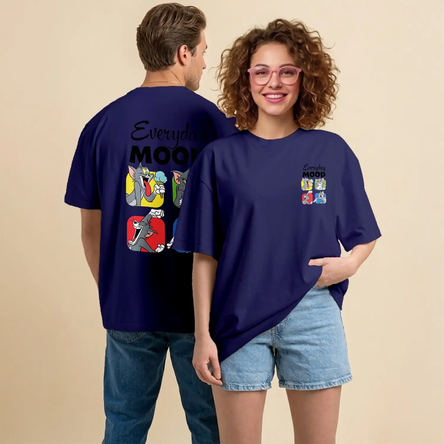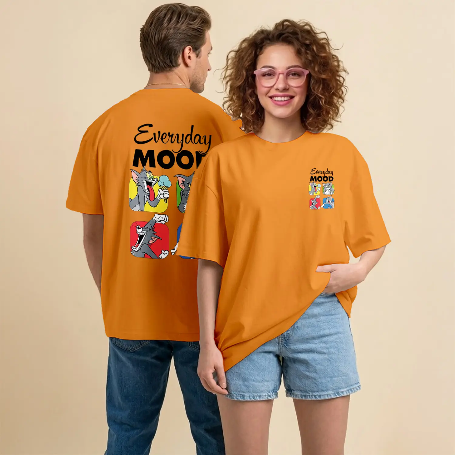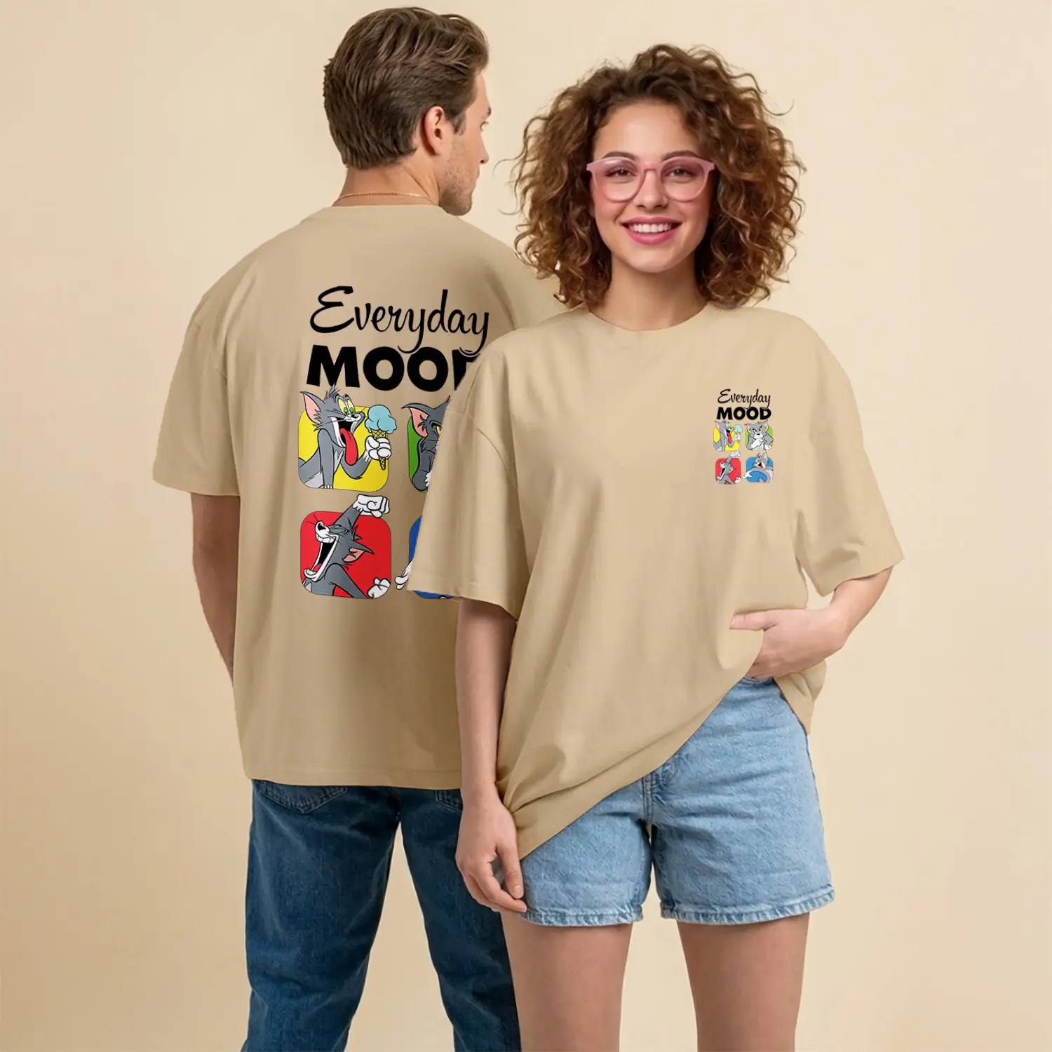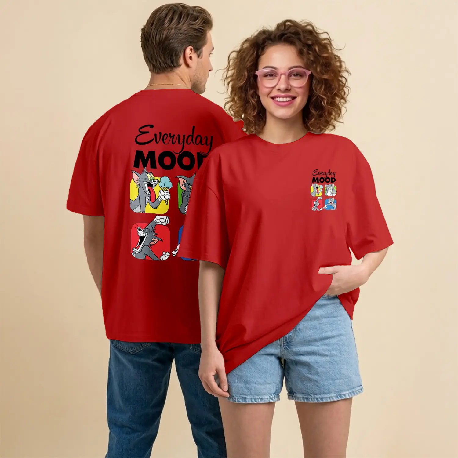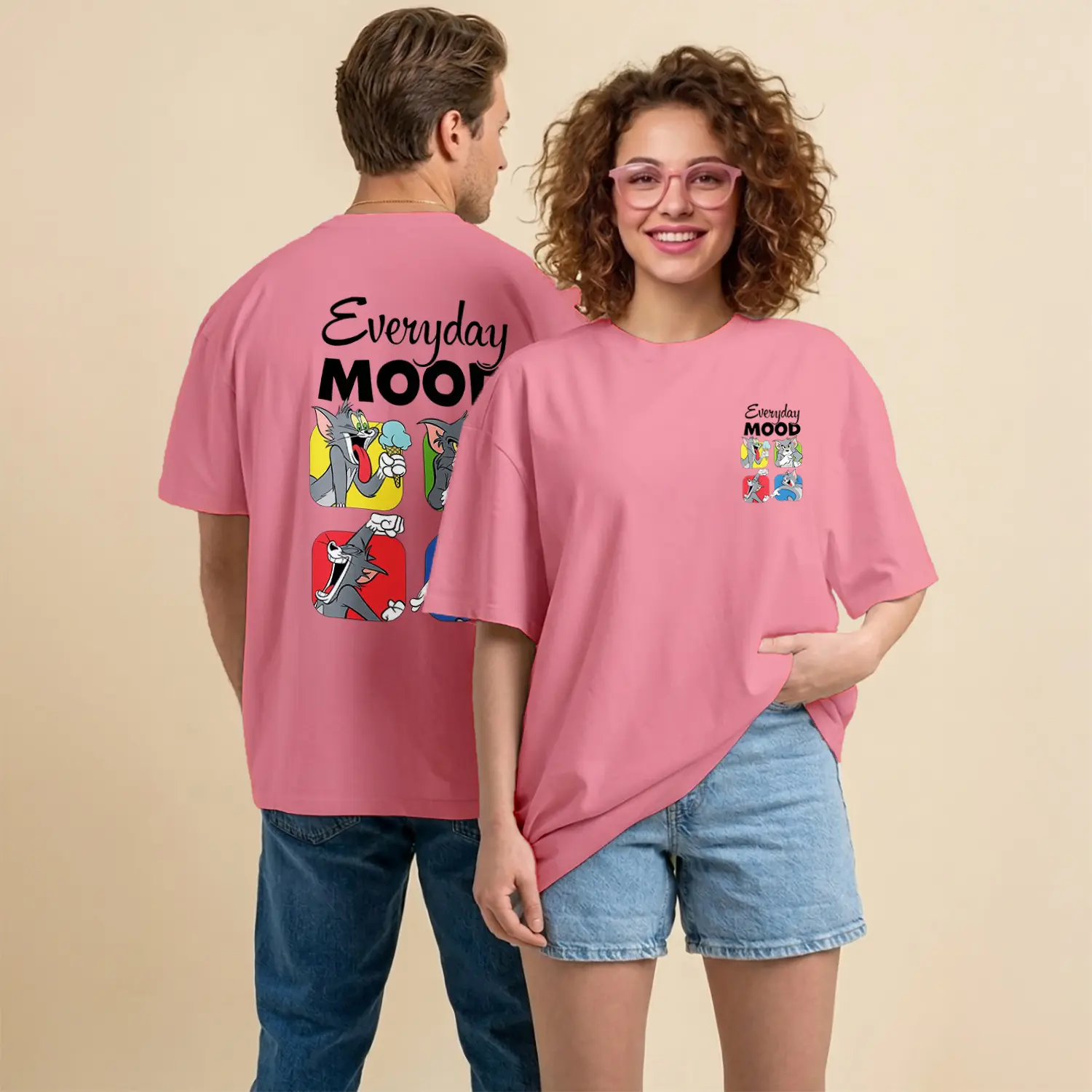 Kedi ve Fare Everyday Mood Çizgi Film Karakteri Baskılı Unisex Tişört