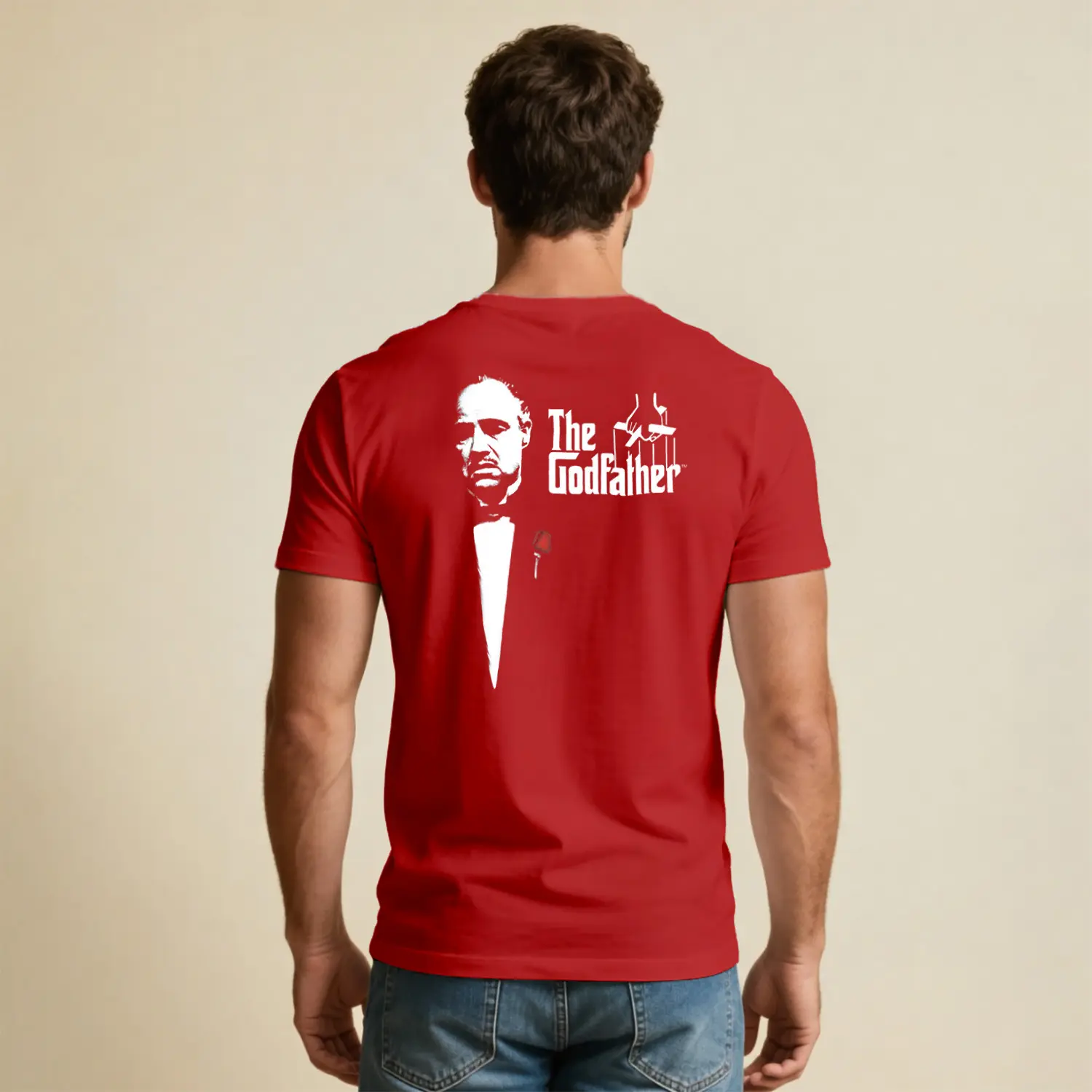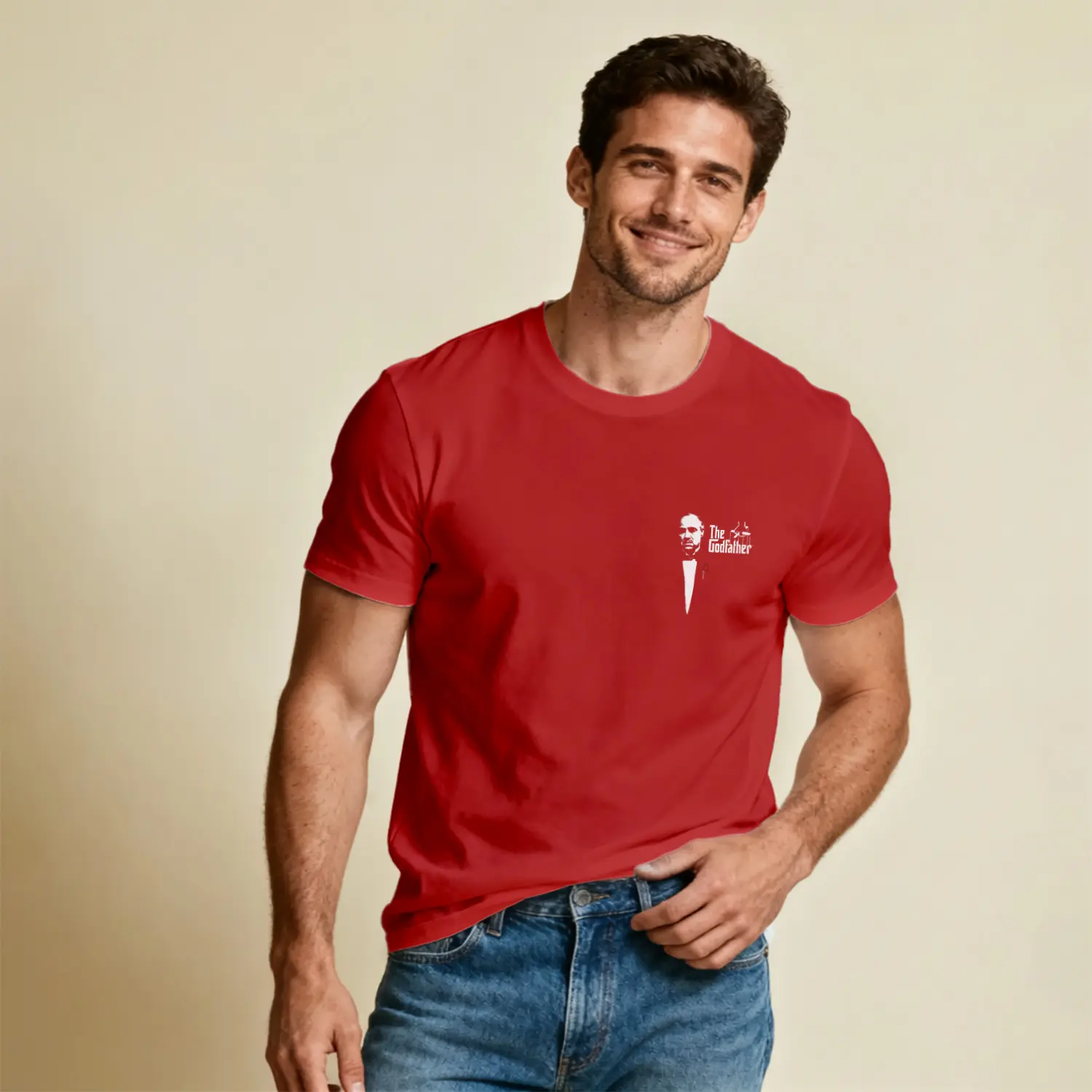 Kırmızı Maskeli Figure Geometrik Sembol Baskılı Erkek Tişört