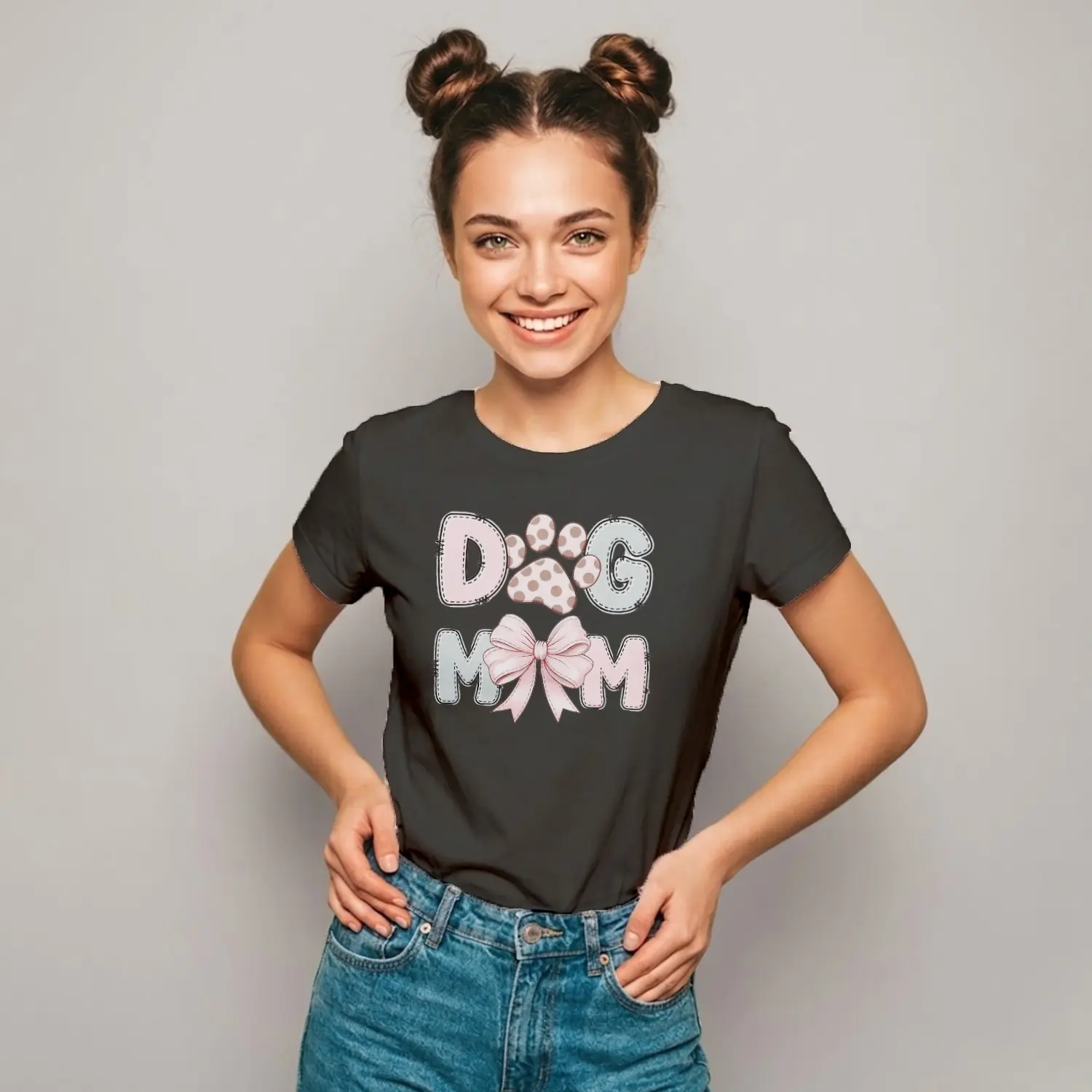 Köpek Patili Dog Mom Tasarım Baskılı Kadın Tişört