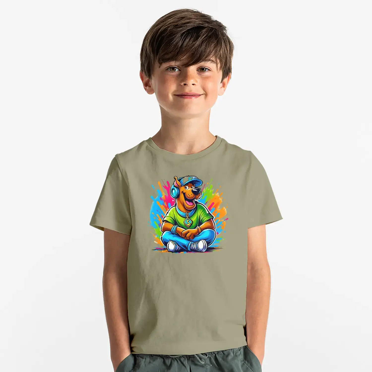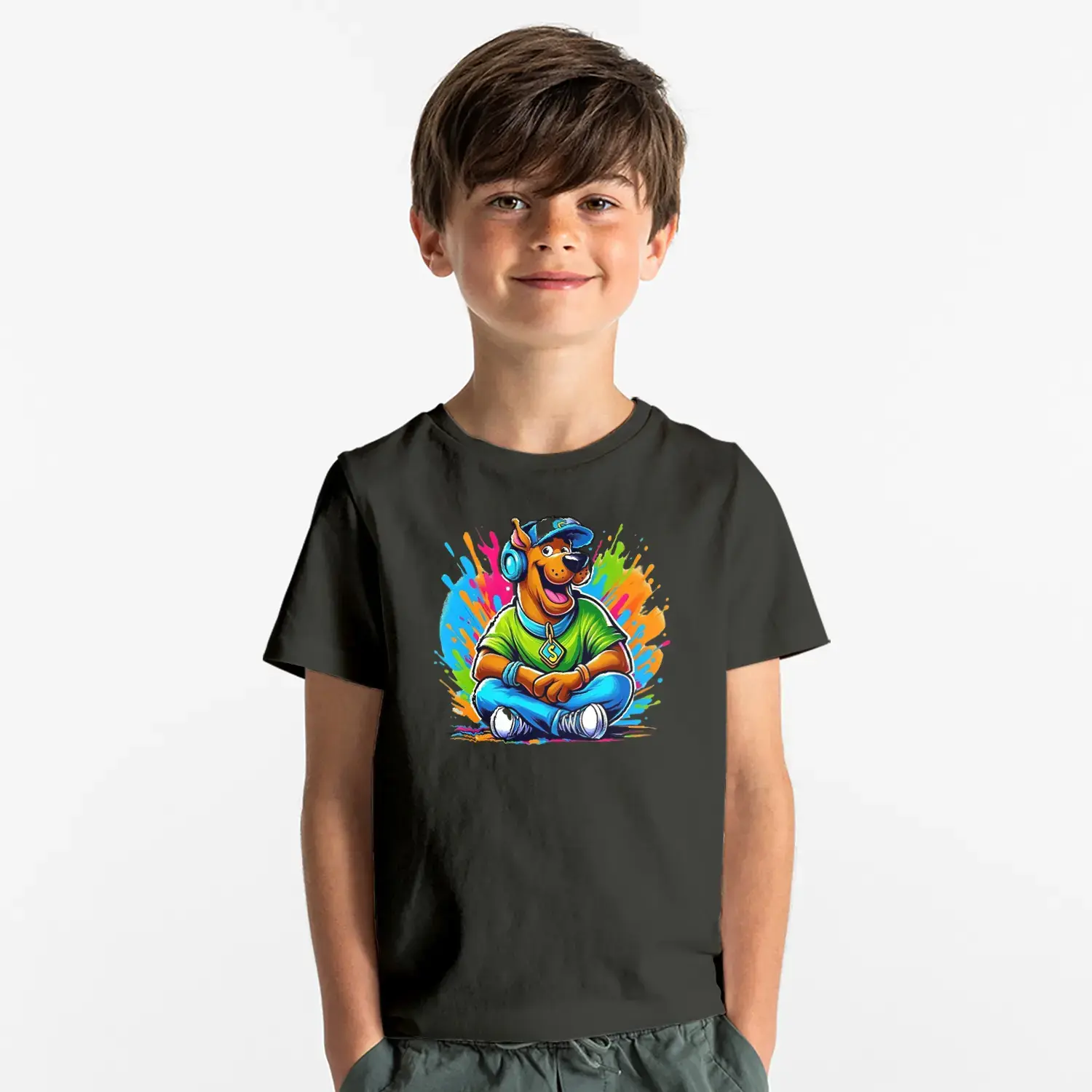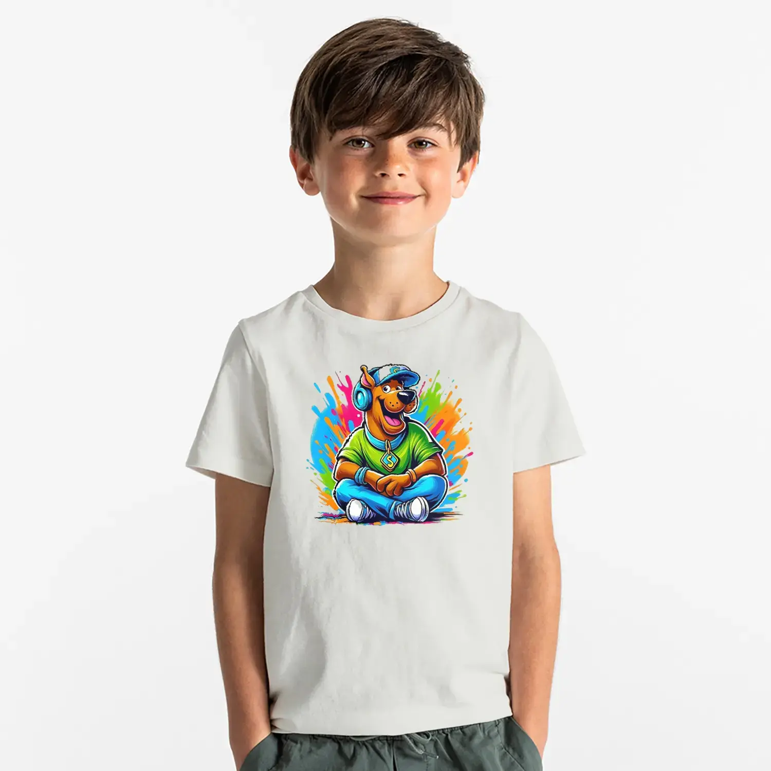 Kulaklıklı Karizmatik Köpek Baskılı Erkek Çocuk Tişört